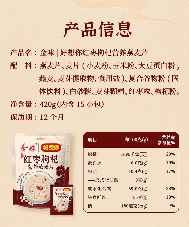 金味好想你红枣枸杞燕麦片420克
