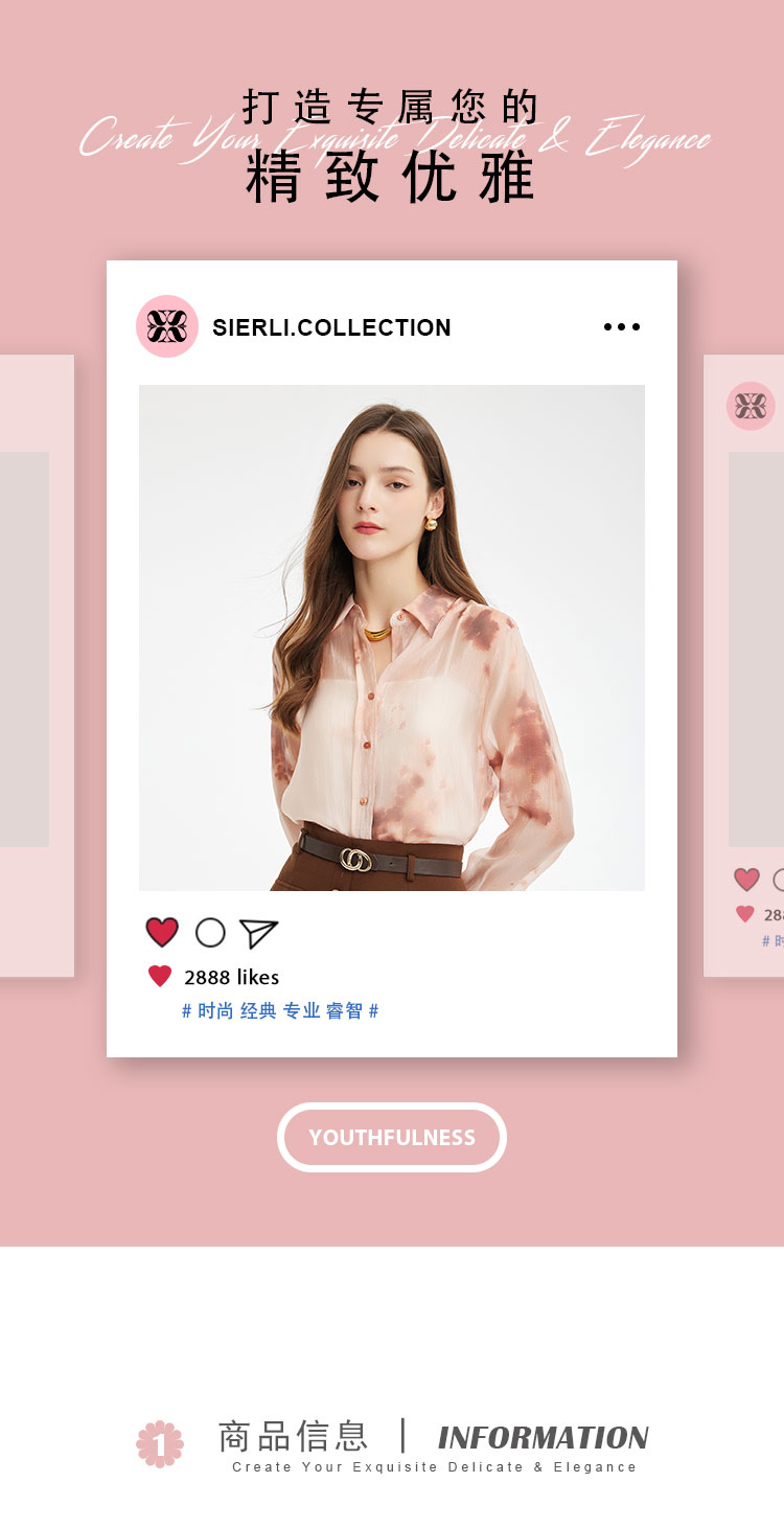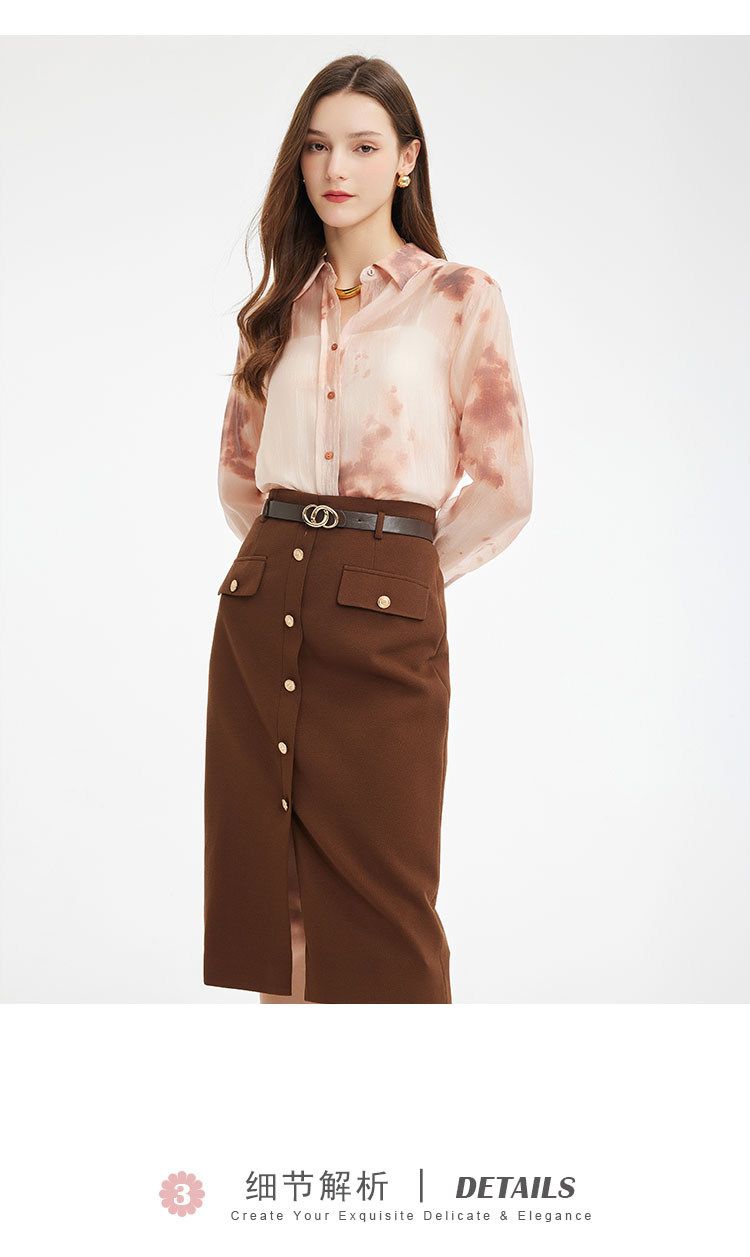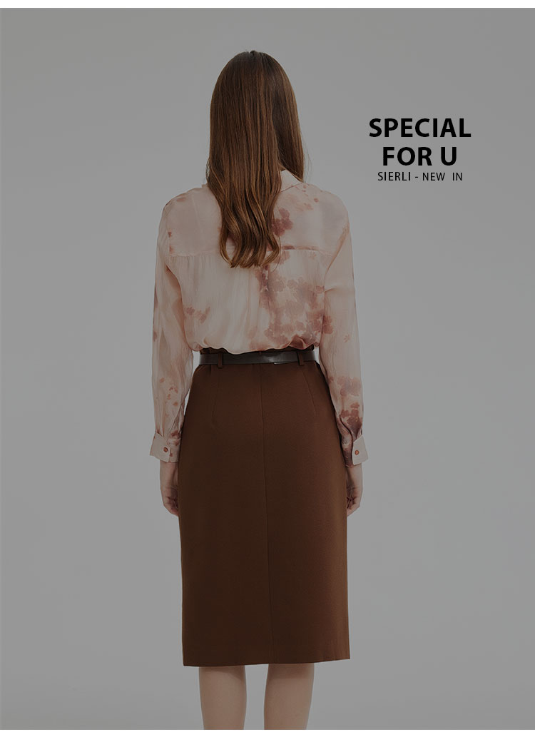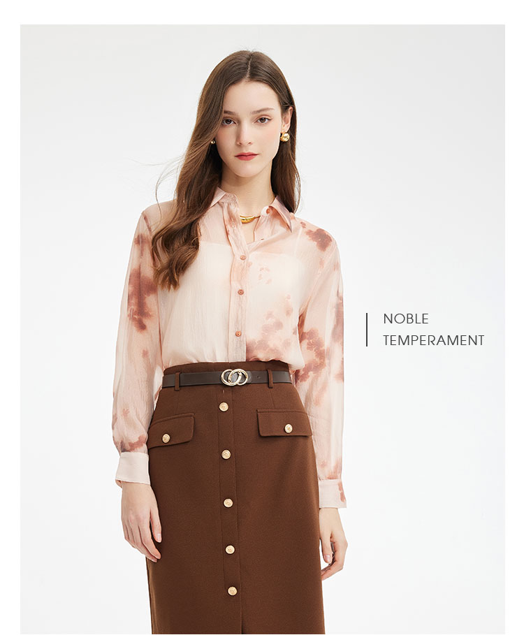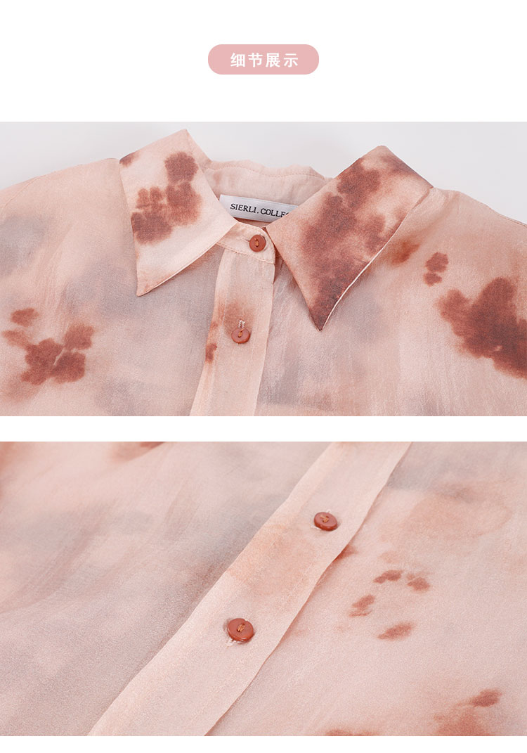 PF261斯尔丽2024新款时尚气质衬衫女翻领晕染印花高级感通勤气质上衣
