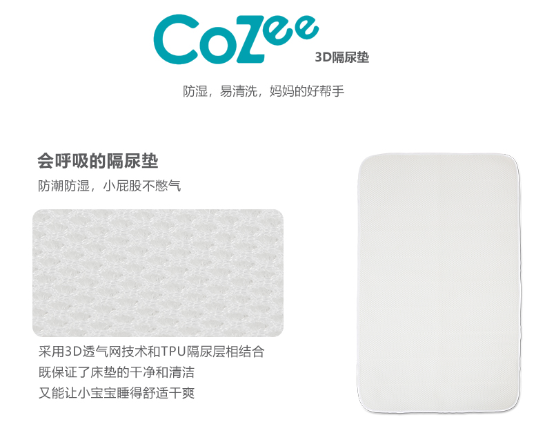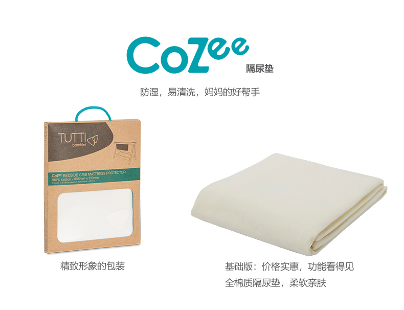 Tutti Bambini CoZee全棉质隔尿垫 | 婴儿防水3D婴儿床保护垫 棉质加厚可水洗 83*52*0.4cm
