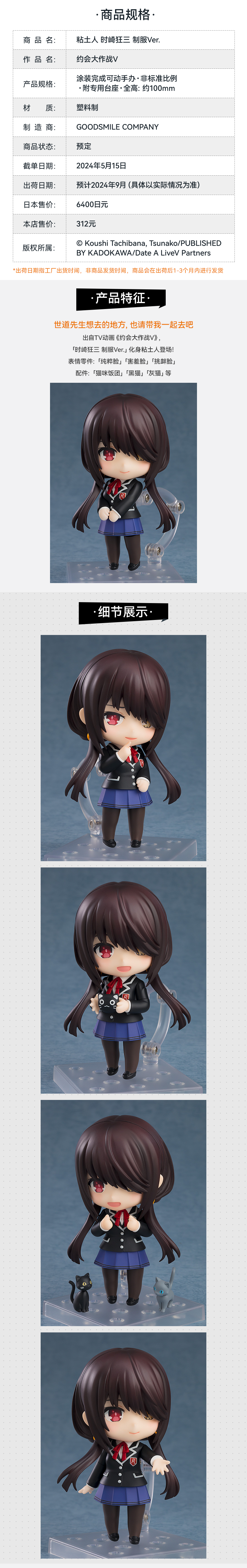 【GSC现货】粘土人 时崎狂三 制服Ver. 约会大作战Ⅴ