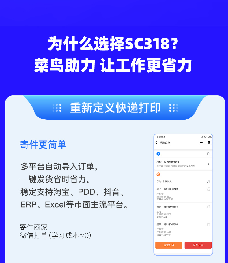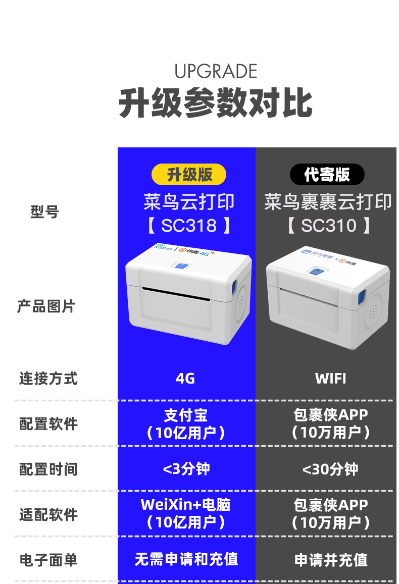 【菜鸟云打印机4G版】 菜鸟&快麦联名款SC318