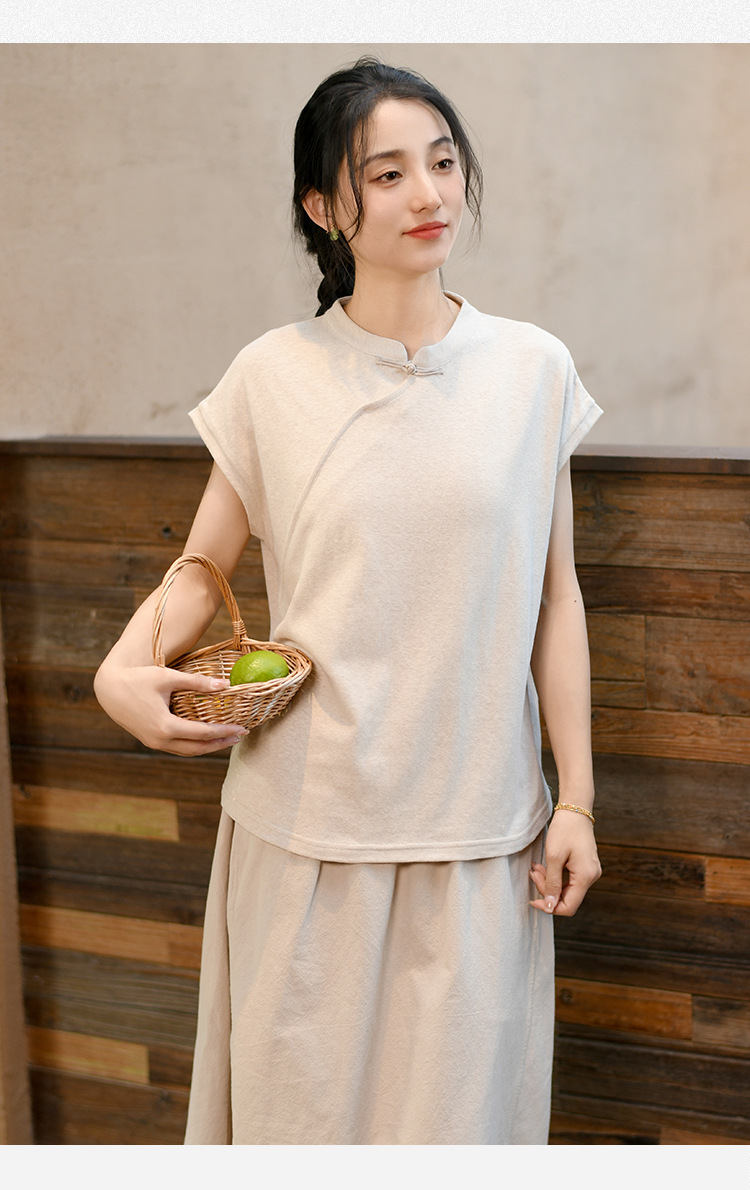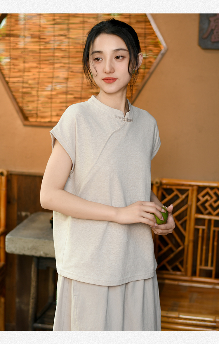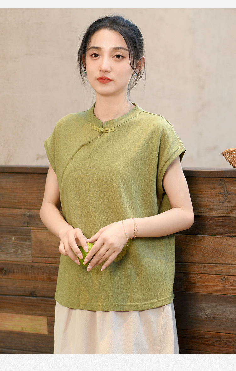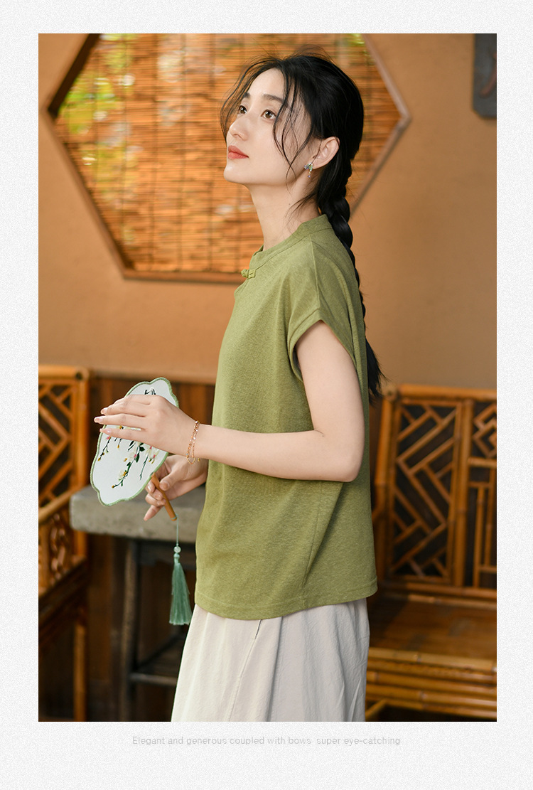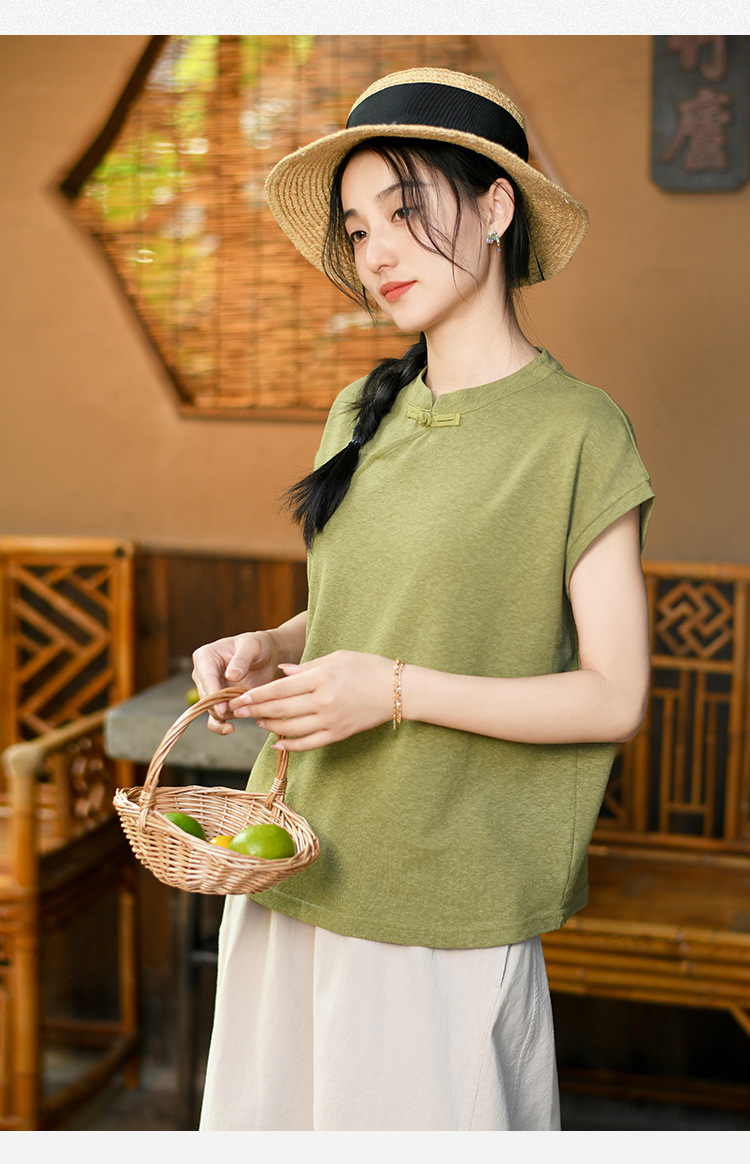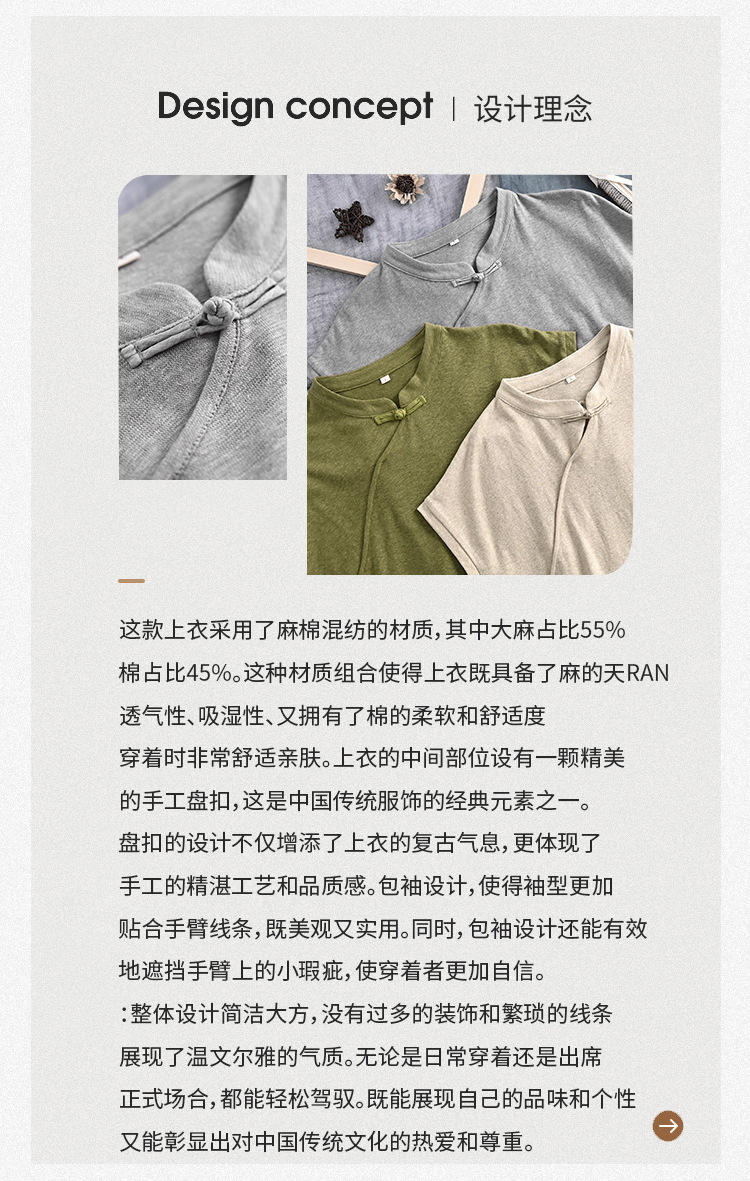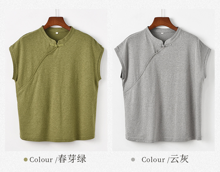 棉麻短袖t恤,新中式国风复古汉麻上衣QM-6311