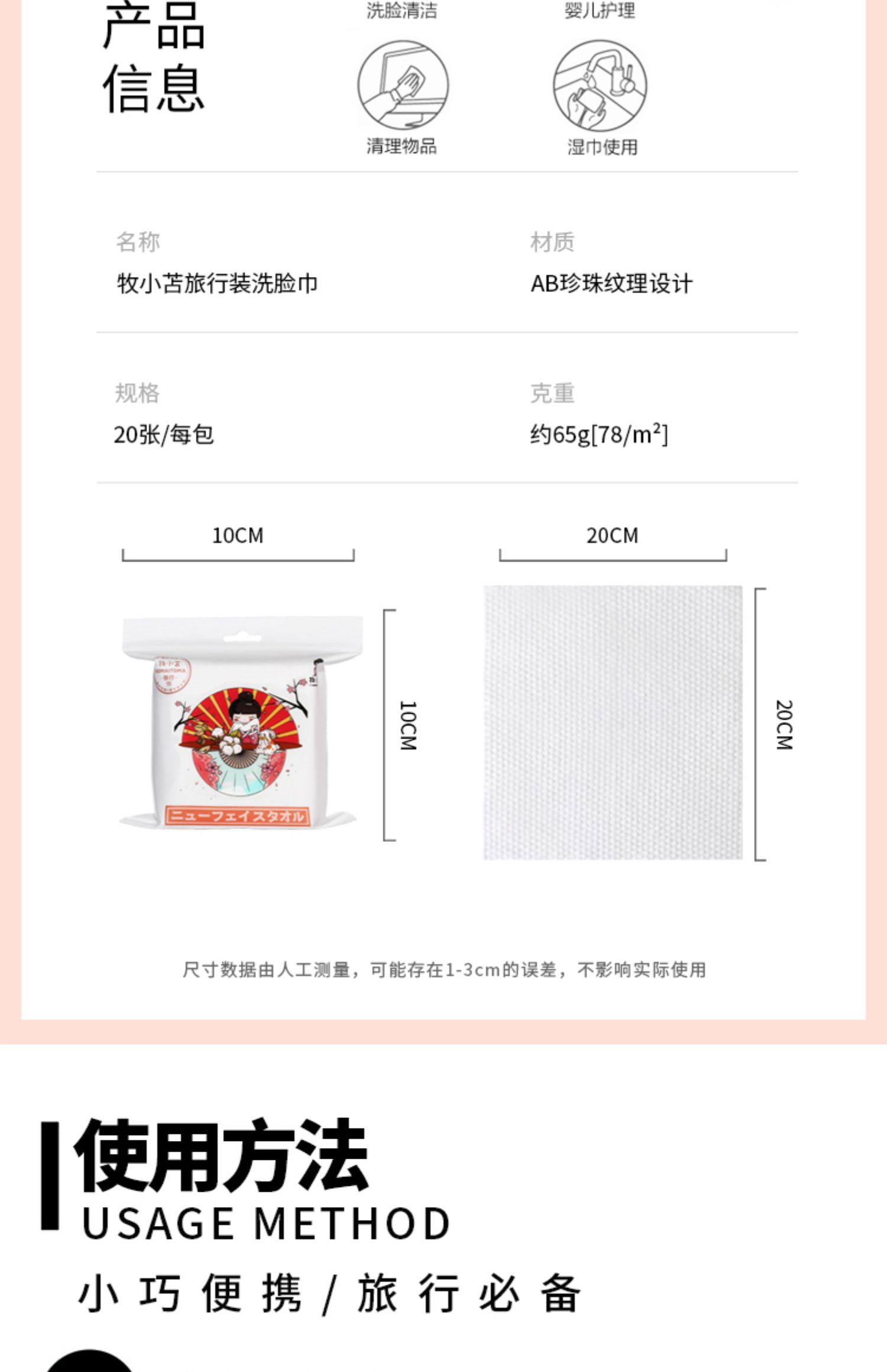 牧小苫洁面巾旅行装20片/包/112388 柔韧绵质 干湿两用旅行便携装