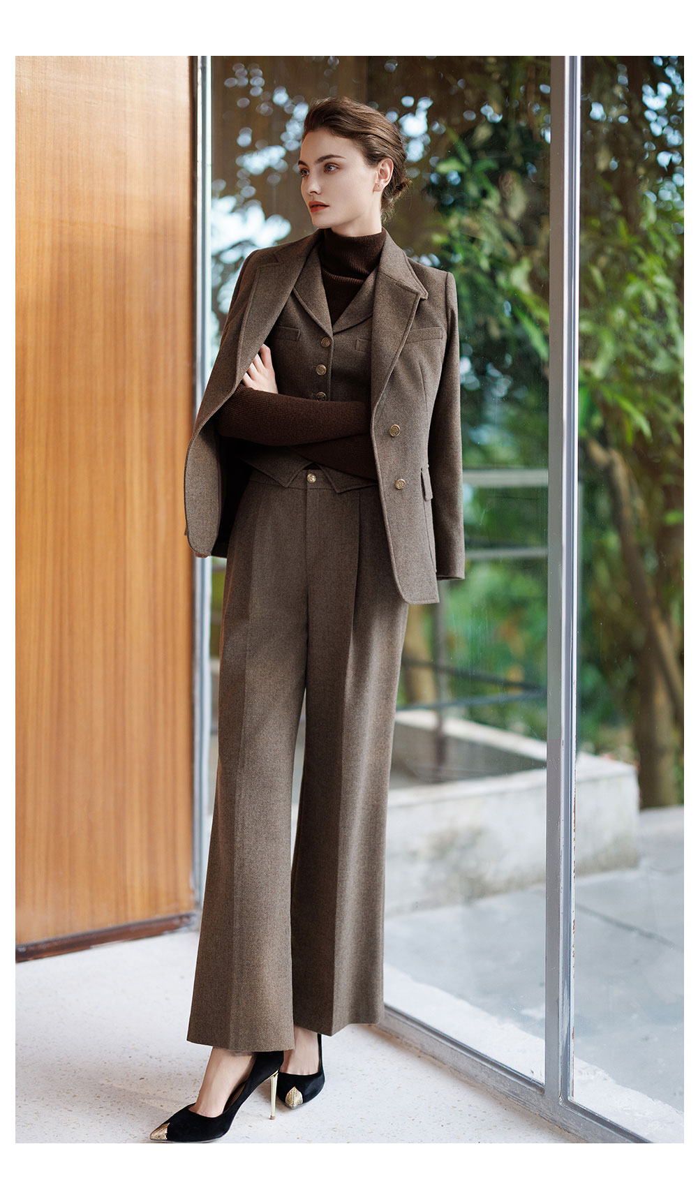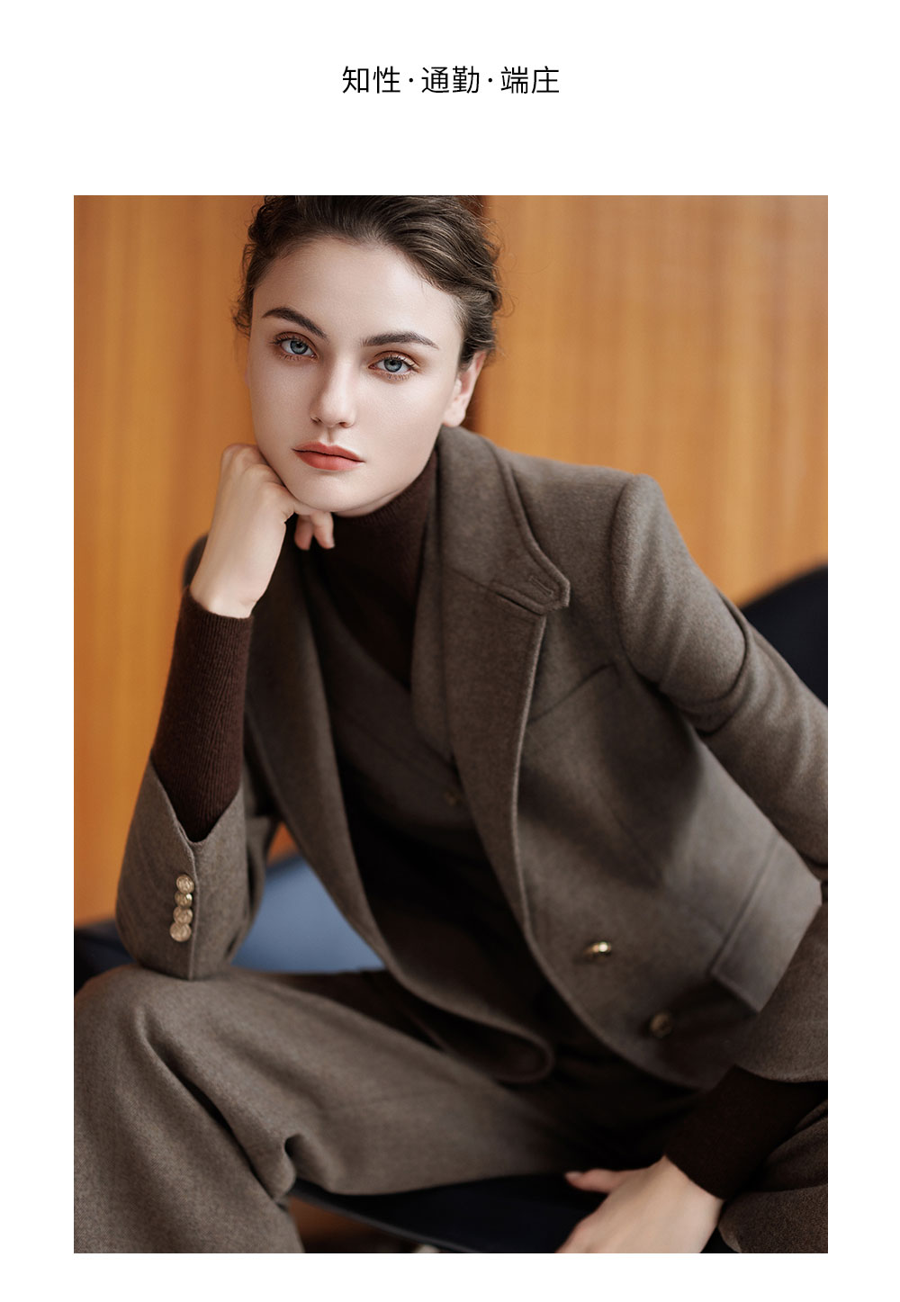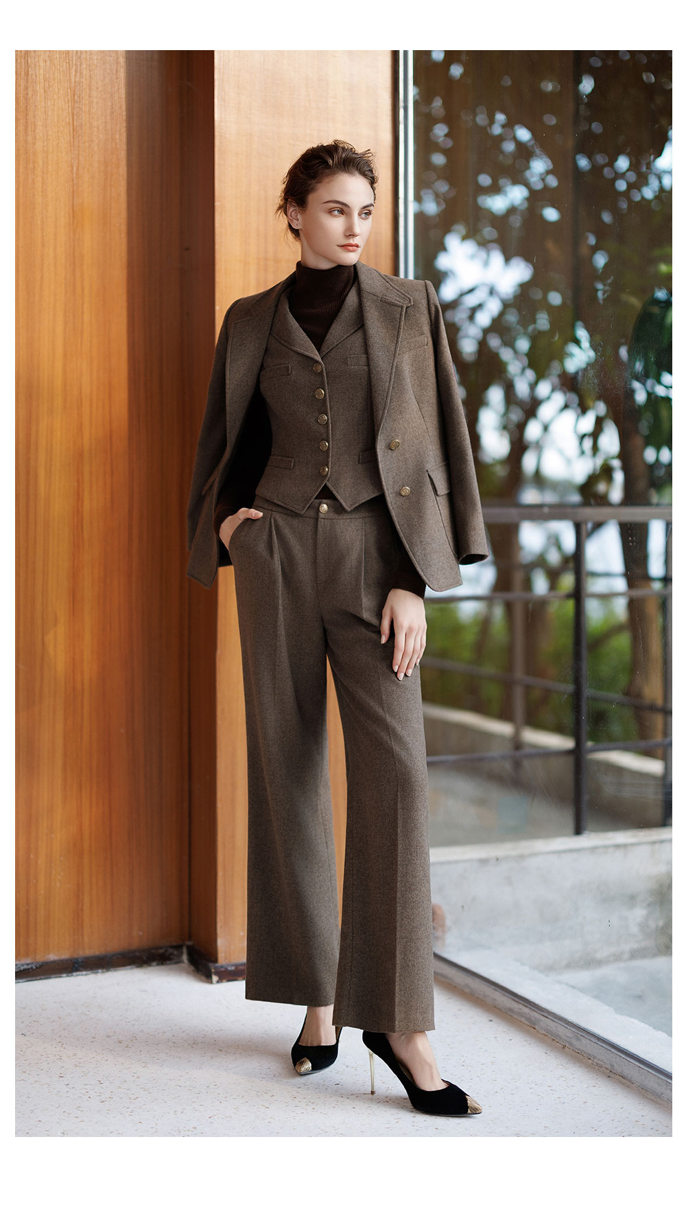 IWY/ 巧克力棕色高级感羊毛西装套装女秋冬新款气质显瘦通勤正装CPM2503