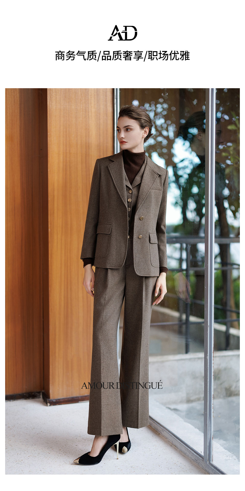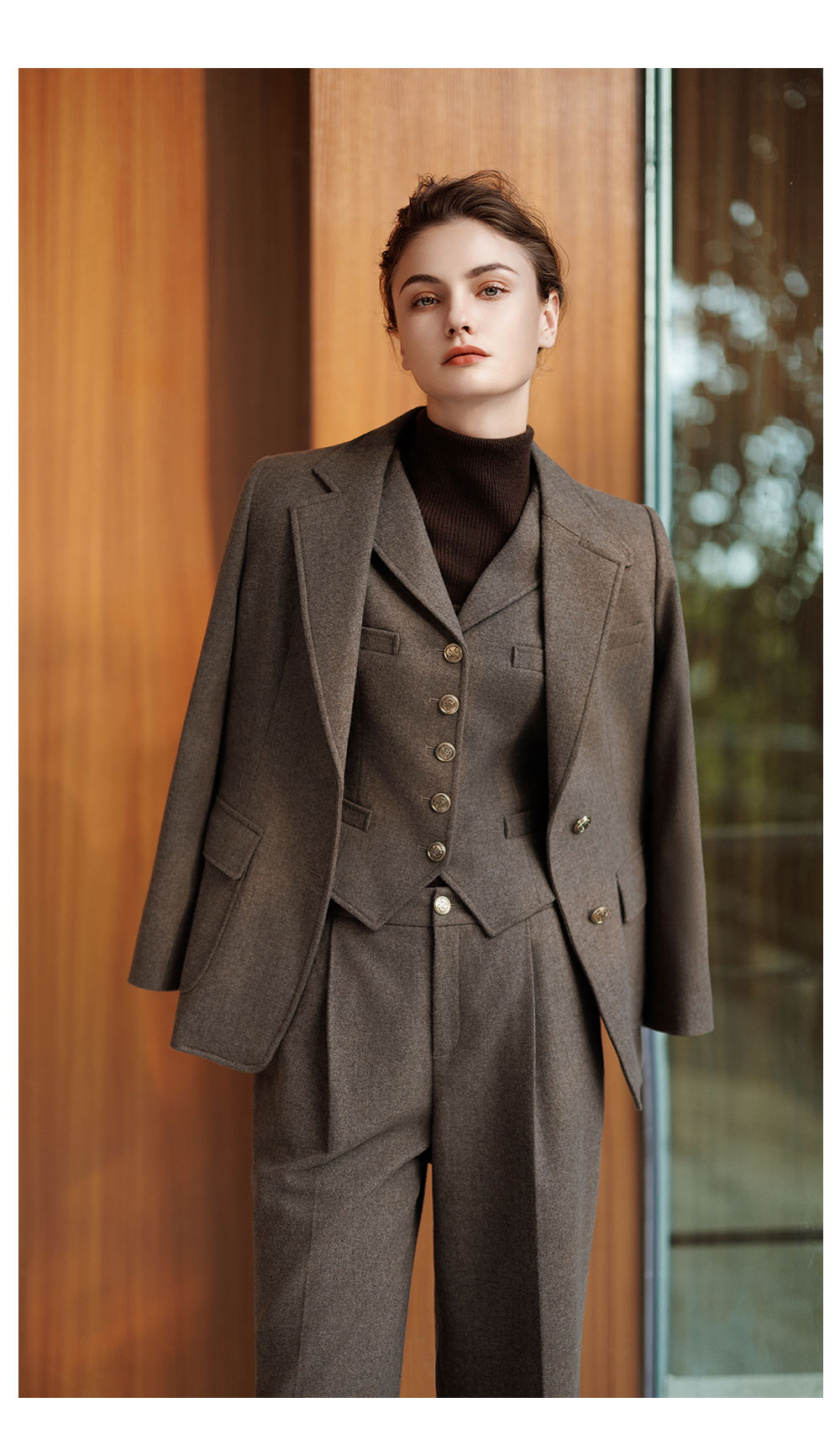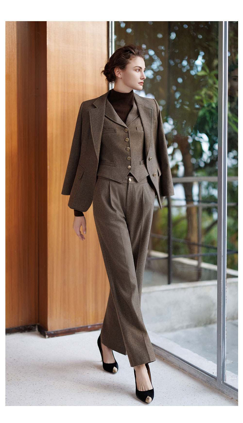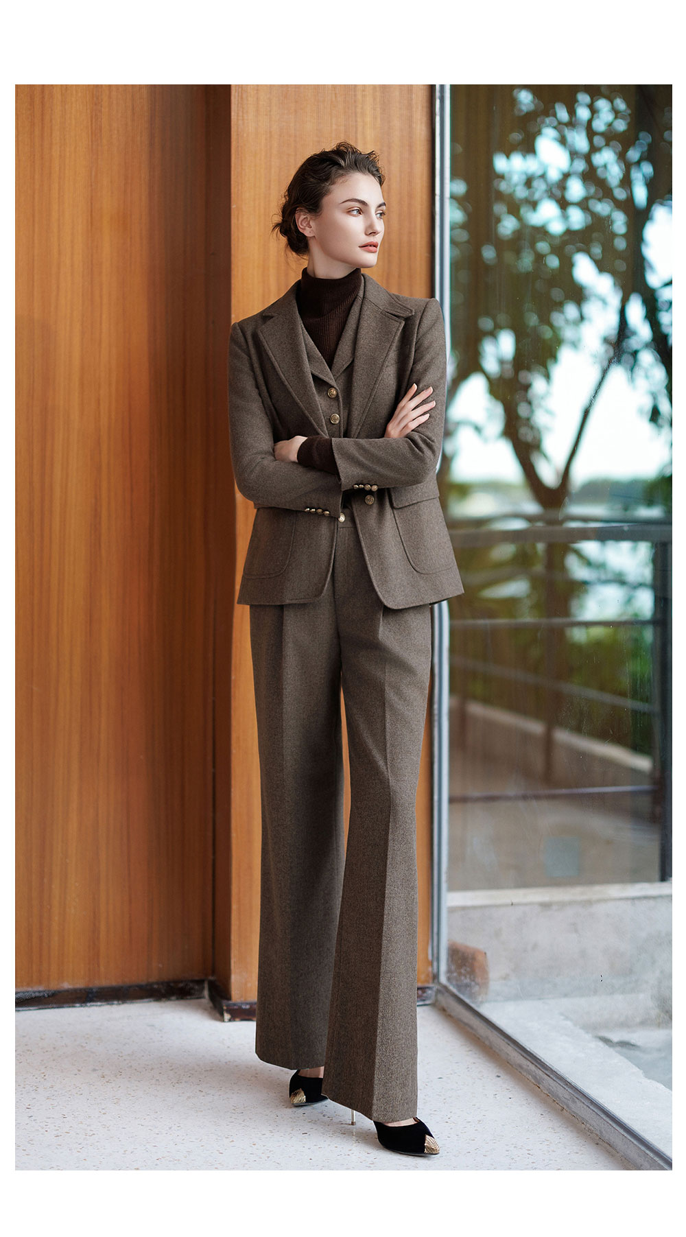 IWY/ 巧克力棕色高级感羊毛西装套装女秋冬新款气质显瘦通勤正装CPM2503