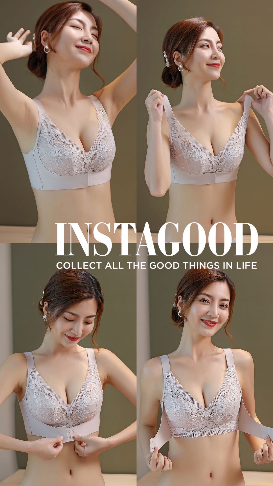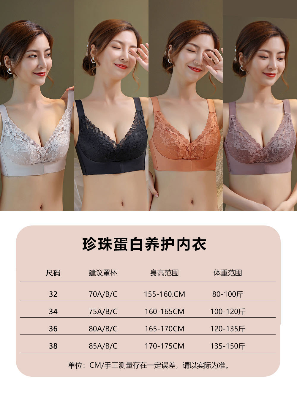 2022珍珠蛋白养护内衣蕾丝调整型乳胶带前扣文胸 BQ珍珠蛋白内衣