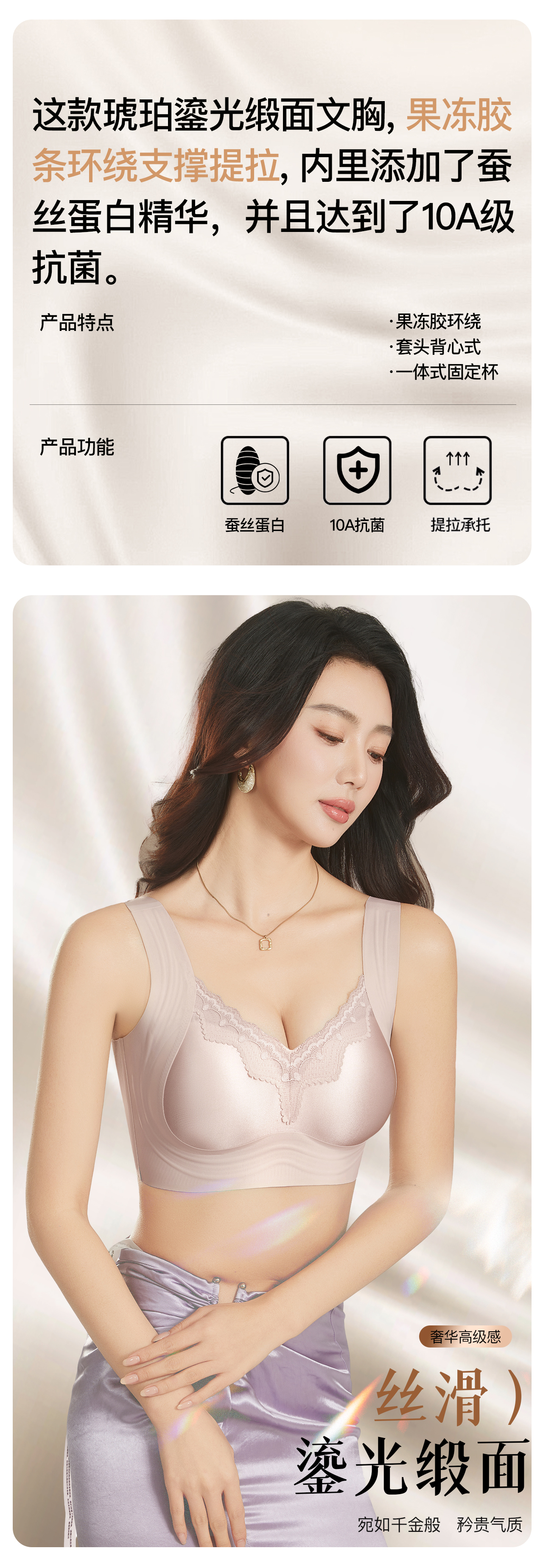 两件装【QINGFAN 琥珀鎏光缎面文胸】无痕缎面质感 优雅高级 Q弹果冻胶条无感承托 防垂挺胸有型 一体式固定杯机洗不移位