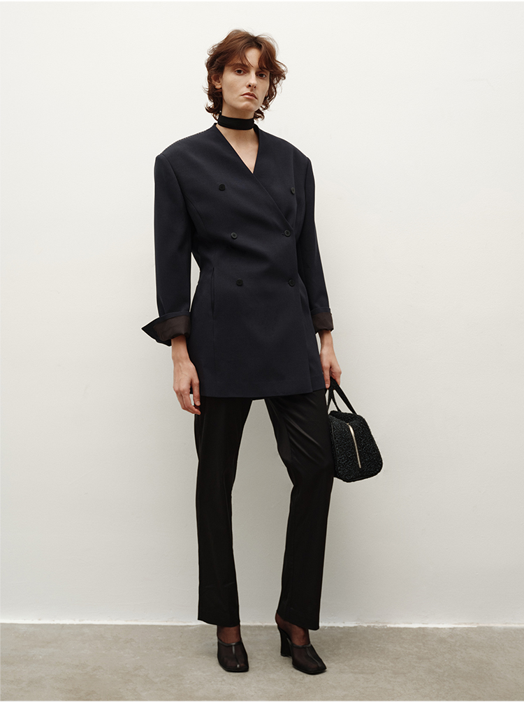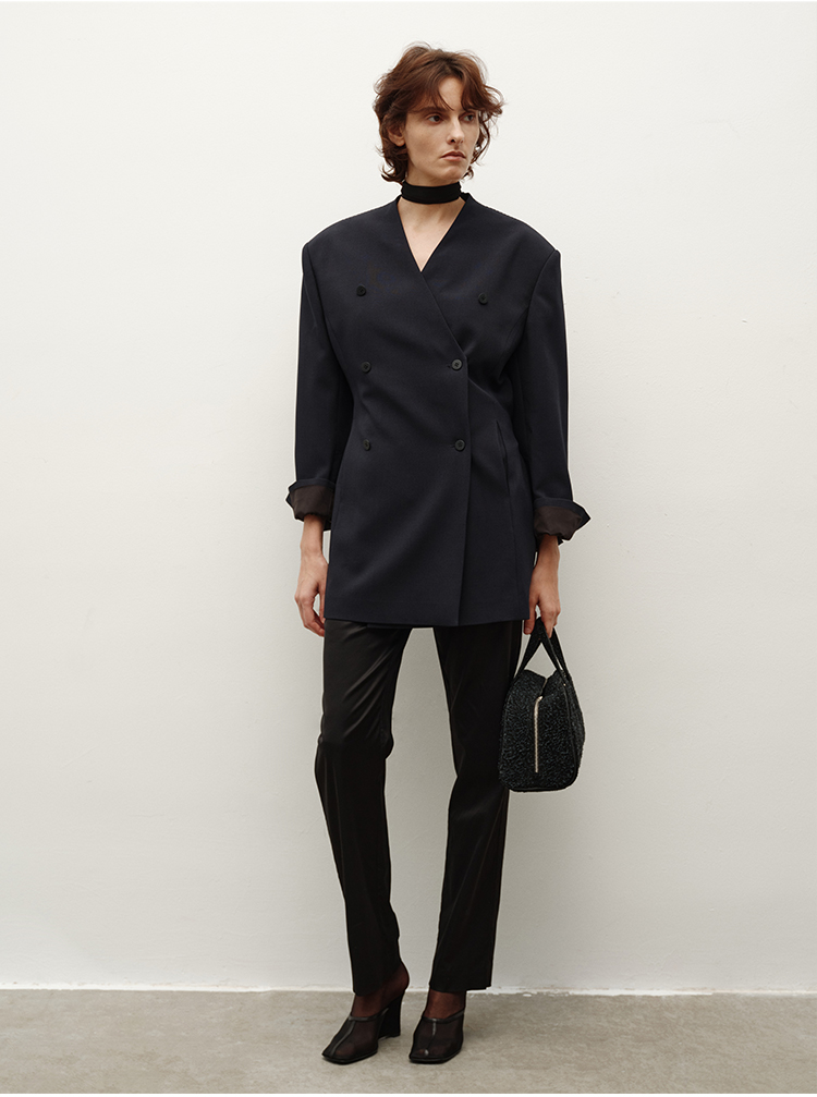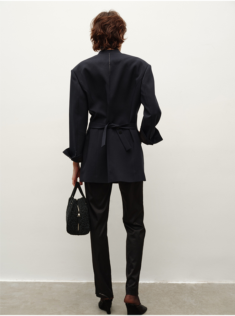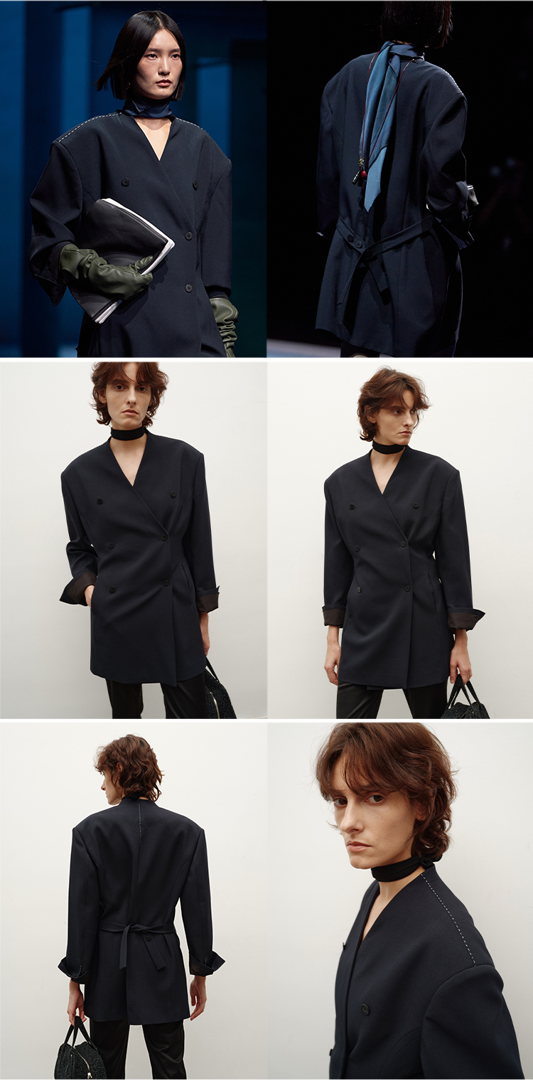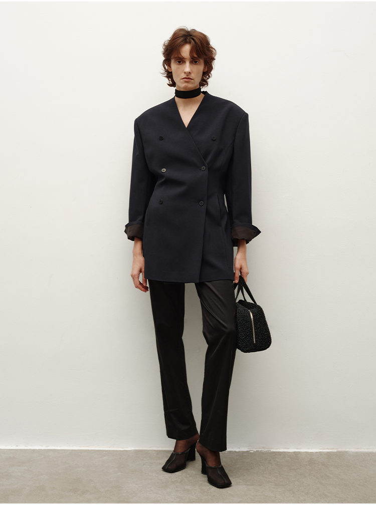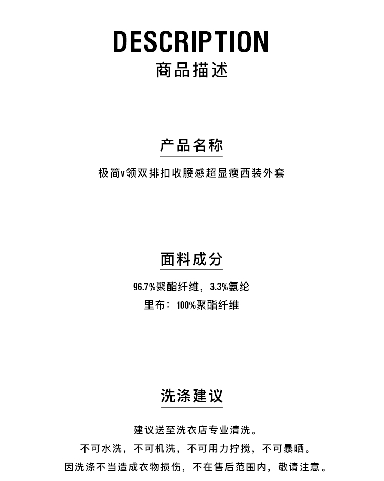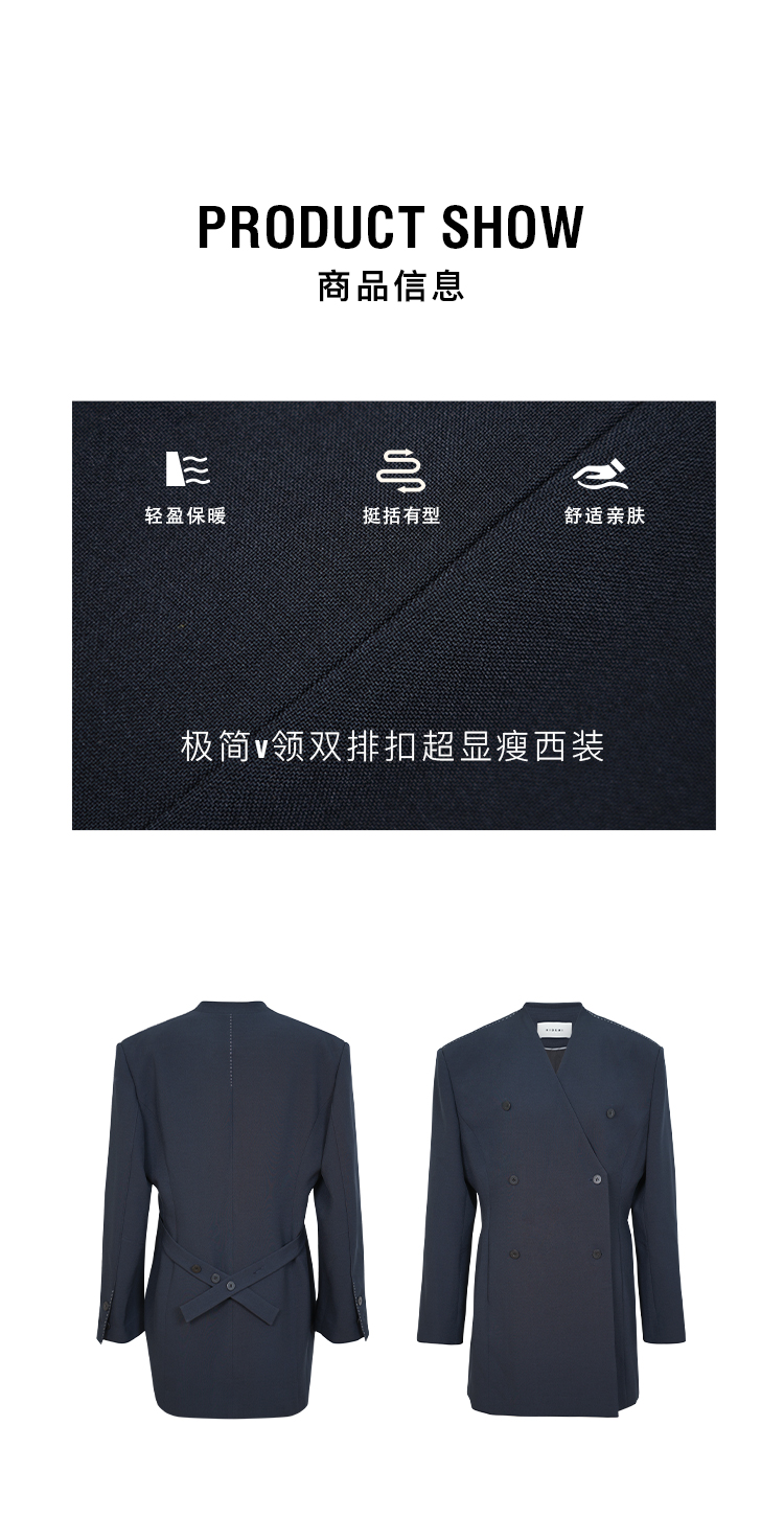 HIDEMI 极简v领双排扣收腰感超显瘦西装外套