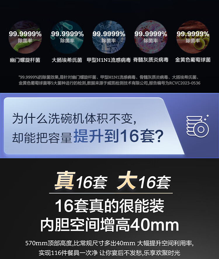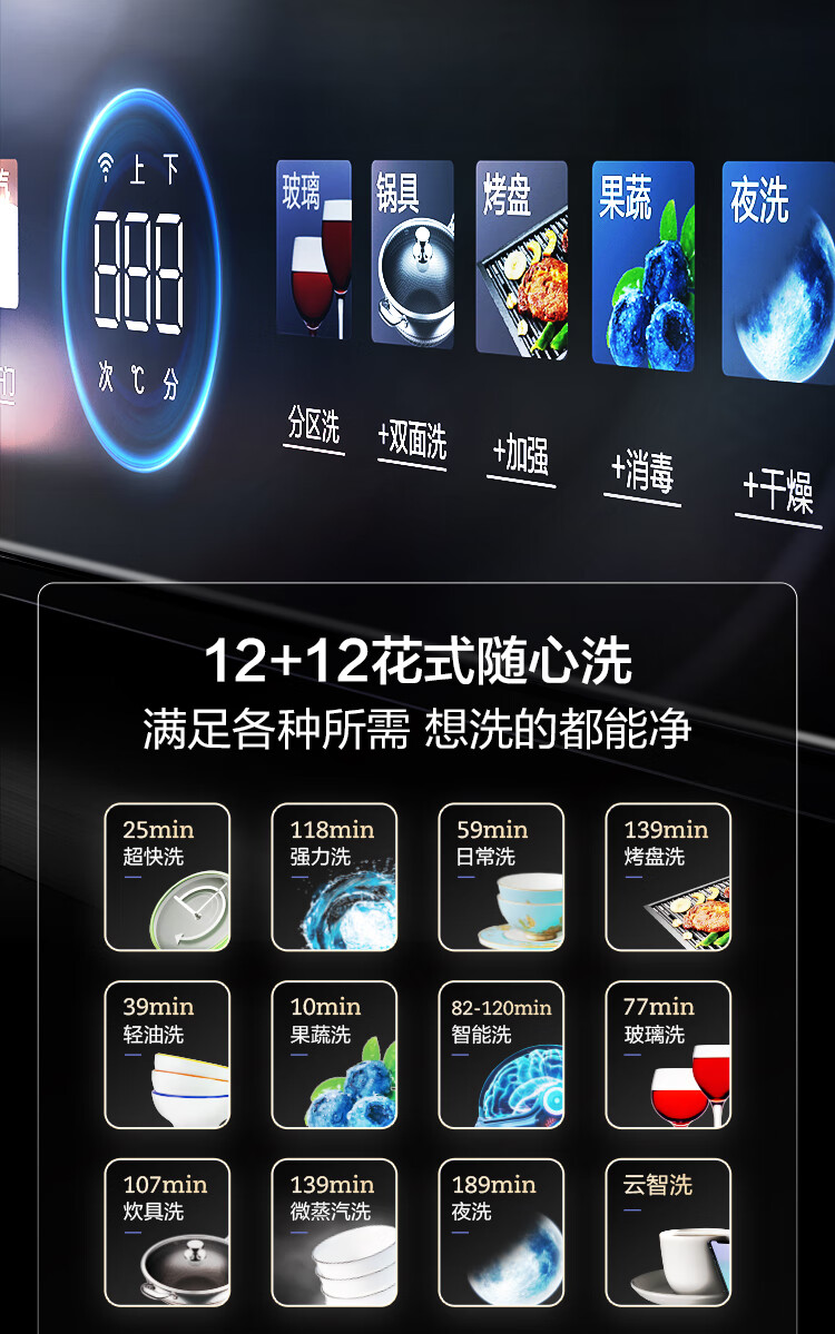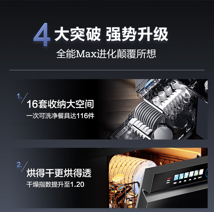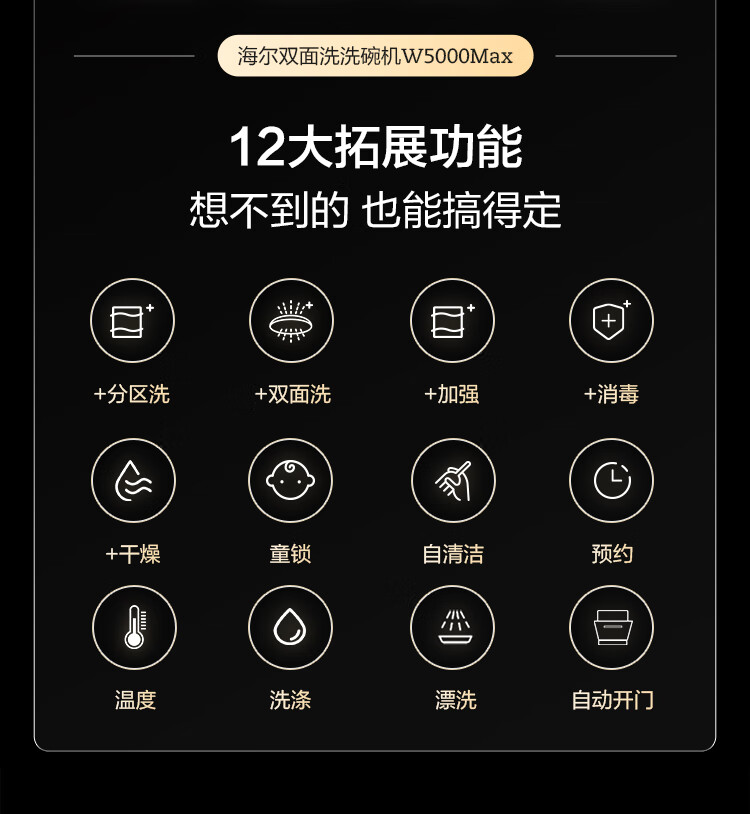 海尔(Haier)新双面洗大16套嵌入式洗碗机W5000Max 空间升级 强效除菌消毒 智能开门速干EYBW163266GHU1