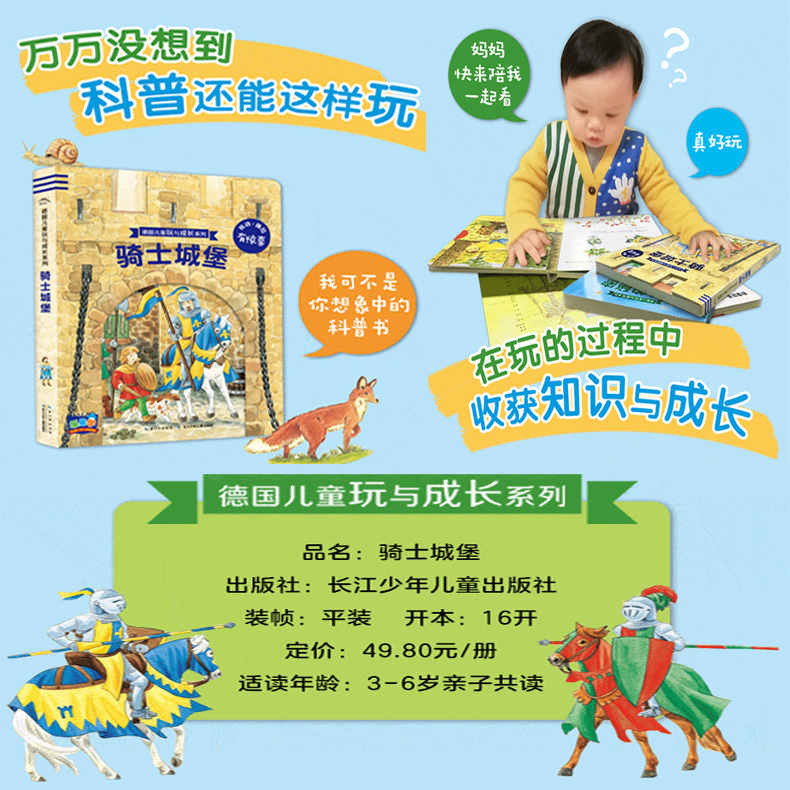 《德国儿童玩与成长系列》原版引进德国arsdition出版社,是一套为3-6岁儿童精心打造的集教育功能与玩乐功能为一体的翻拉书,包含小翻页、转盘、抽拉页等多种有趣的玩具功能,总共4册,涉及身体、森林、四季、骑士城堡四个主题,通过具体形象活泼的方式讲述相关的科普知识。