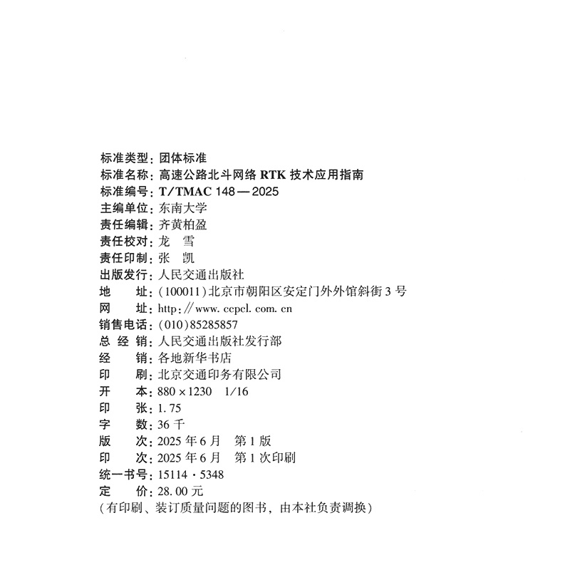 书名:高速公路北斗网络RTK技术应用指南(T/TMAC 148—2025)