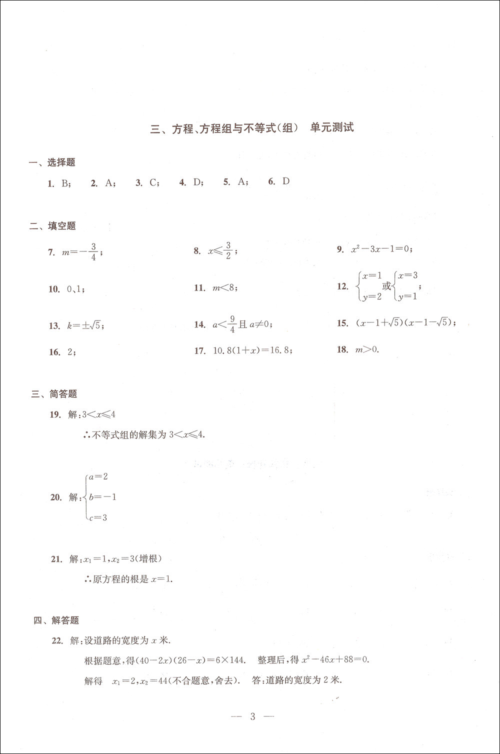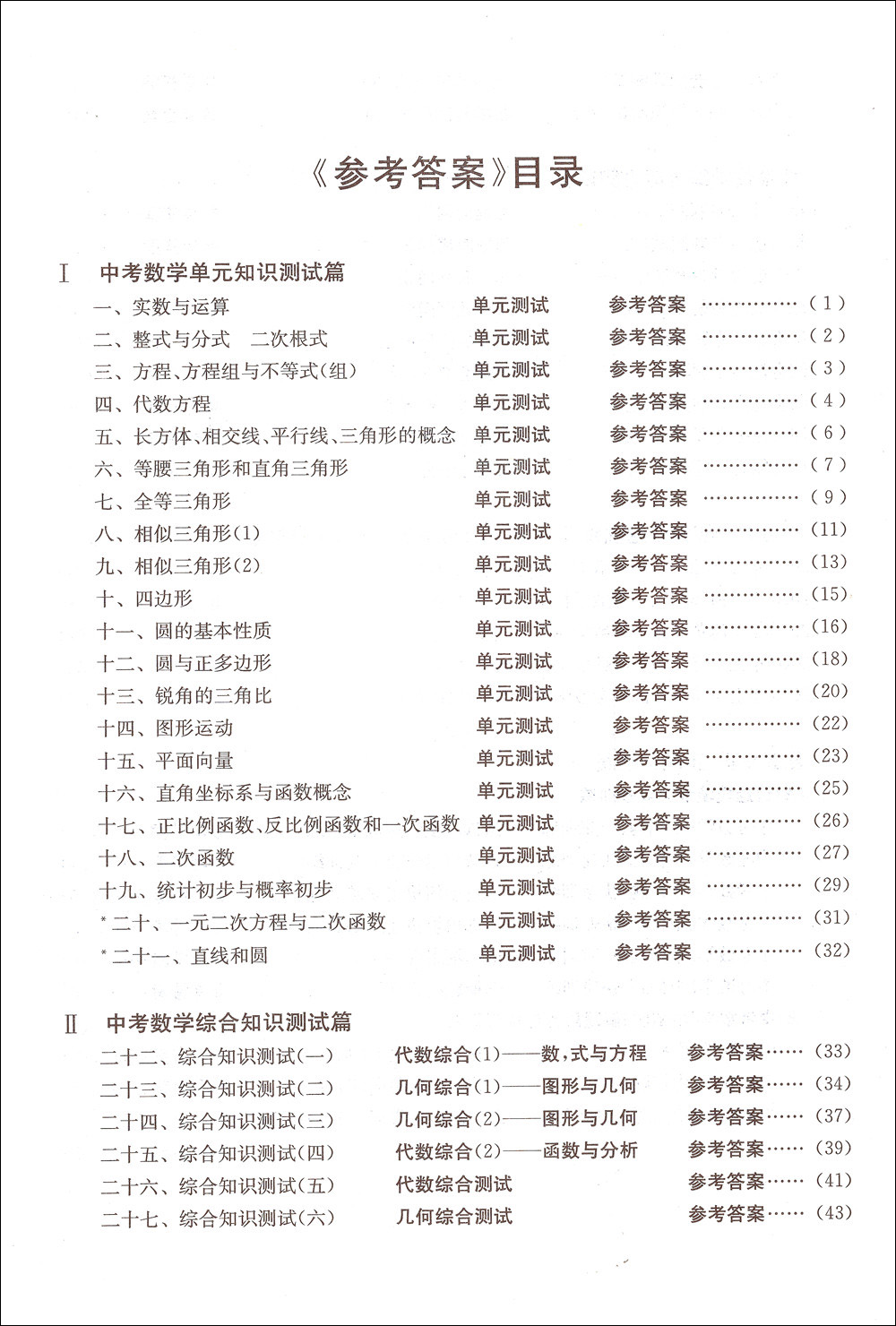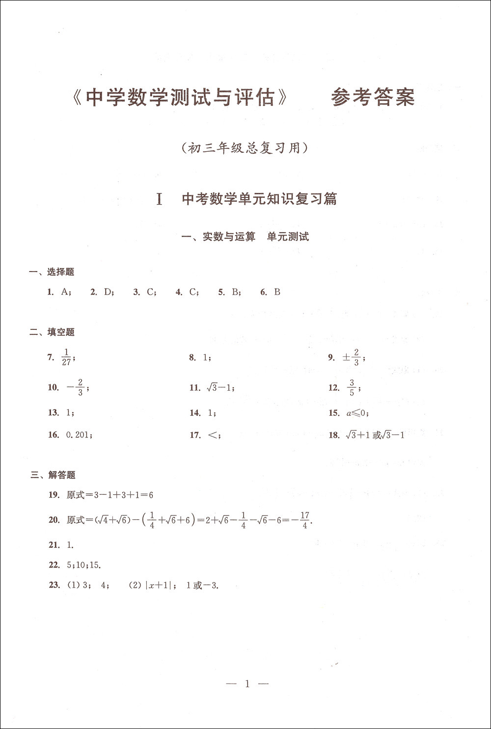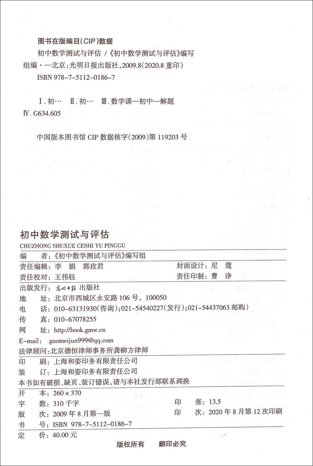 2020-2021学年度 全新修订本 初中数学测试与评估 卷子+参考答案 初三数学总复习训练用试卷测试卷 光明日报出版社
