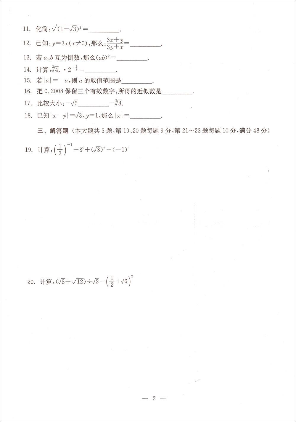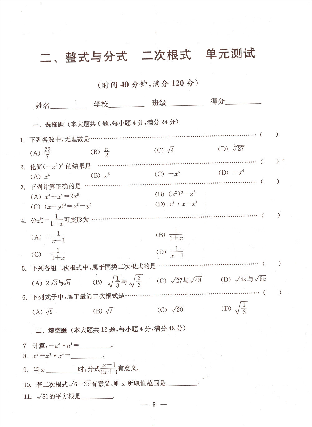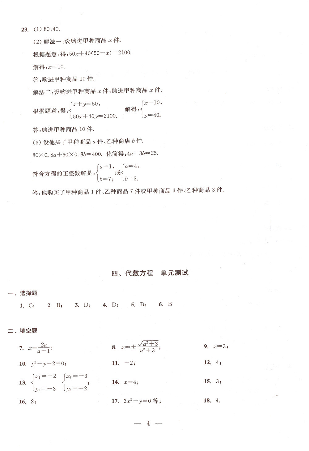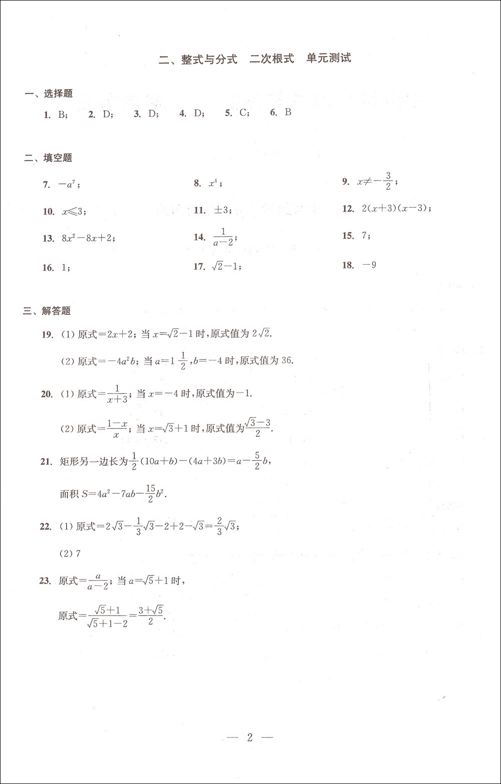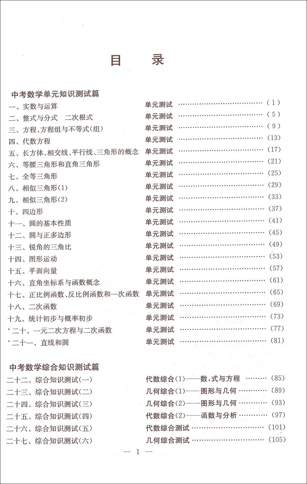 2020-2021学年度 全新修订本 初中数学测试与评估 卷子+参考答案 初三数学总复习训练用试卷测试卷 光明日报出版社