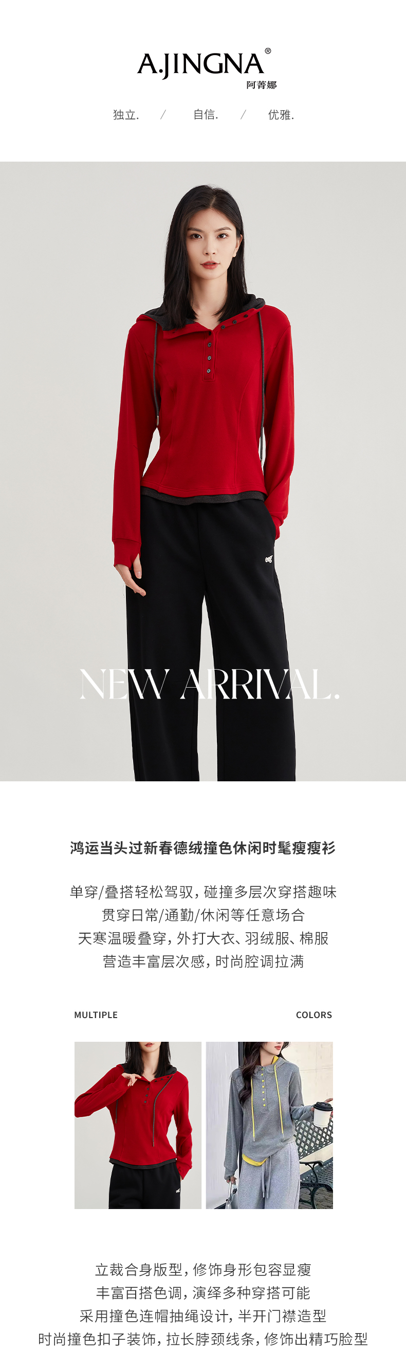 【鸿运当头】阿菁娜新春德绒撞色休闲时髦瘦瘦衫F29D201009