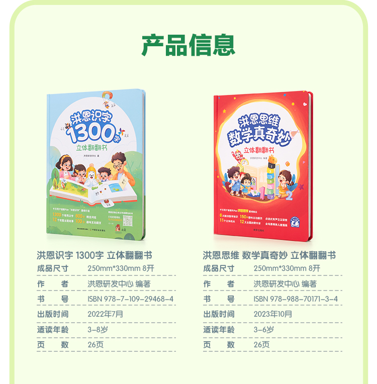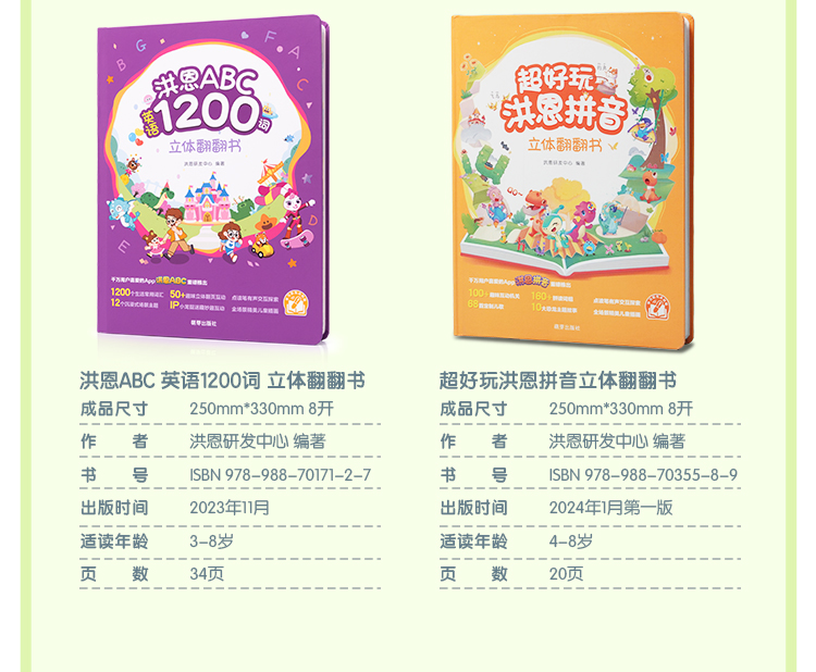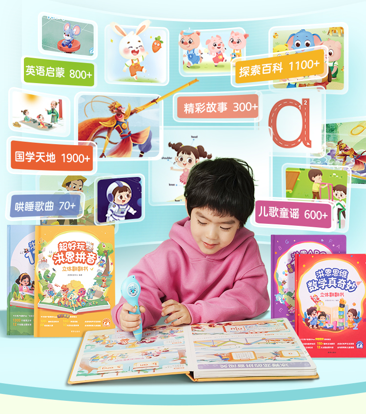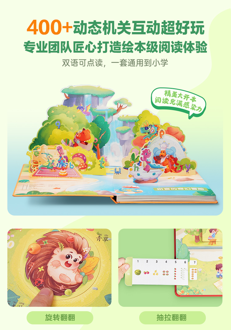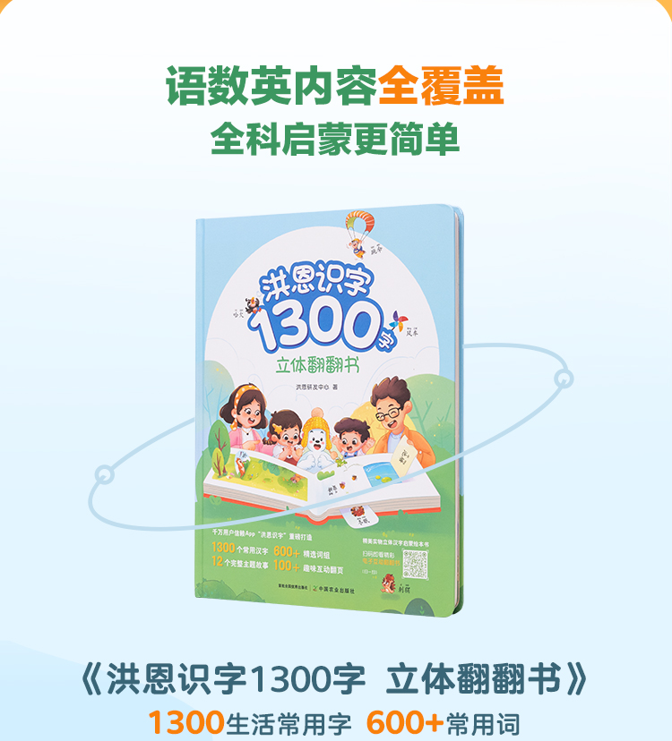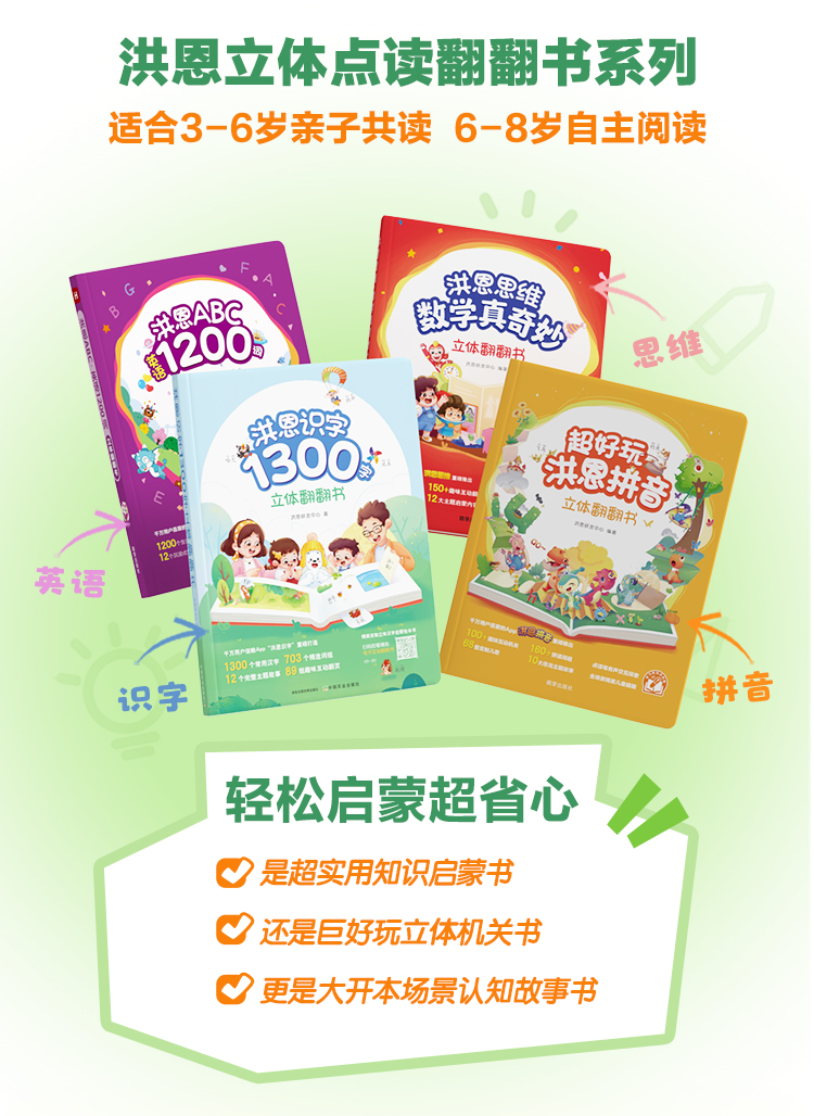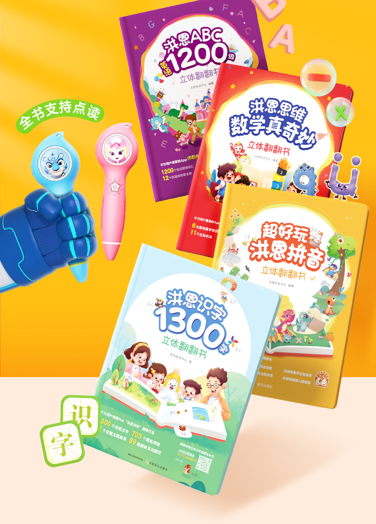 【APP配套】洪恩立体翻翻书系列 识字/拼音/思维/英语 包含1300高频字+600+常用词 宝宝轻松迈入自主阅读