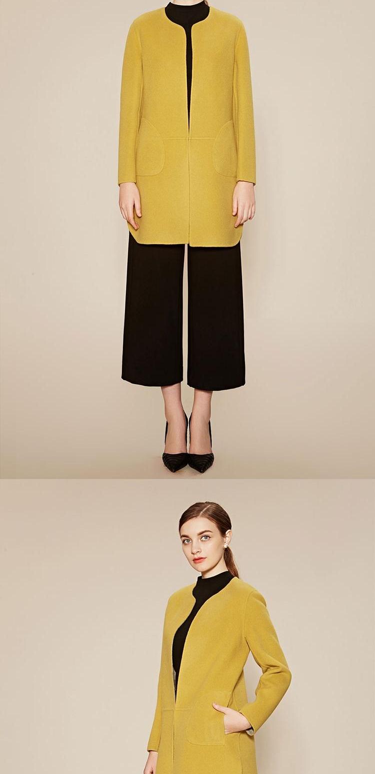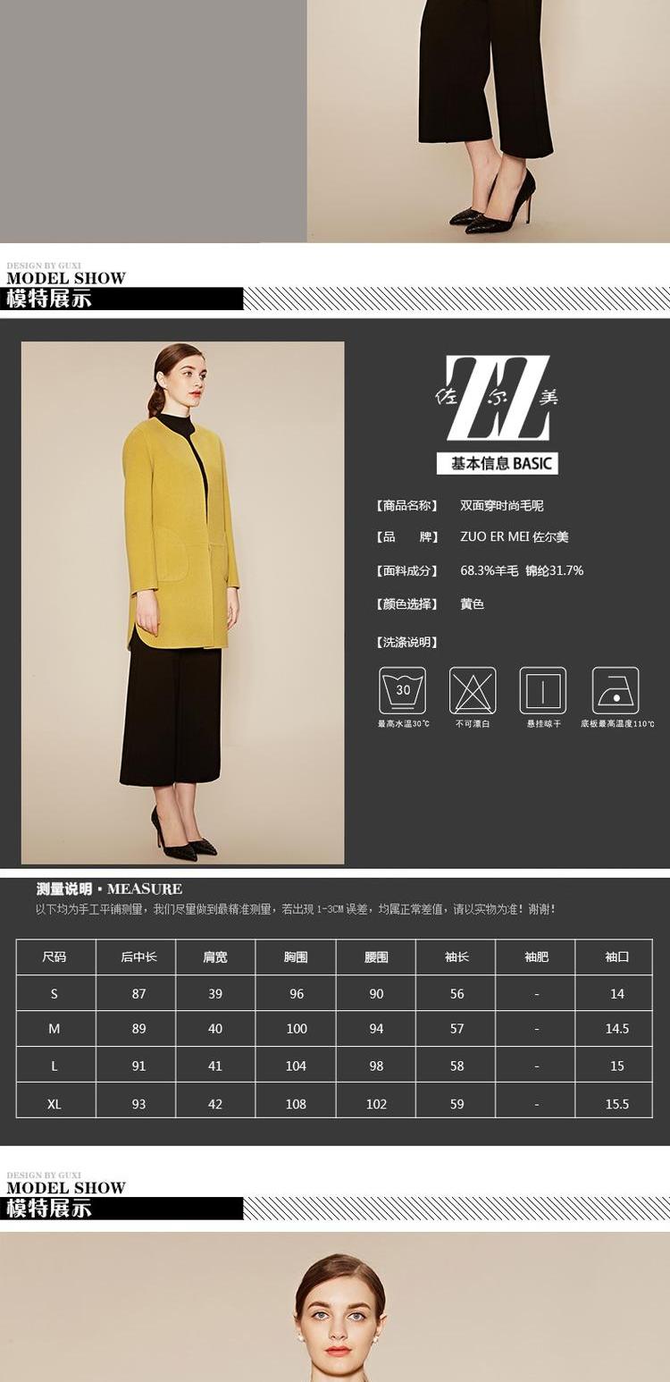 佐尔美新品冬季女装羊毛呢女士大衣纯色上衣外套英伦风E64SM23