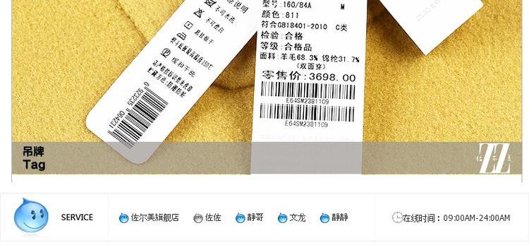 佐尔美秋冬女装毛领毛呢外套女羊毛大衣时尚短款E44ZT48