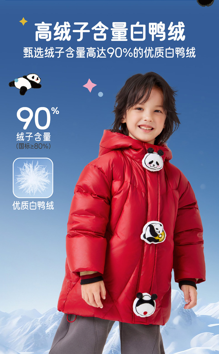 年衣童装羽绒服冬季新款儿童中长款鸭绒宝宝盼达乖乖玩偶羽绒服