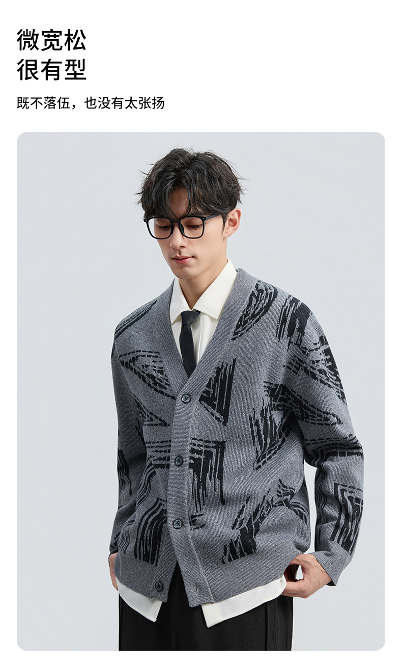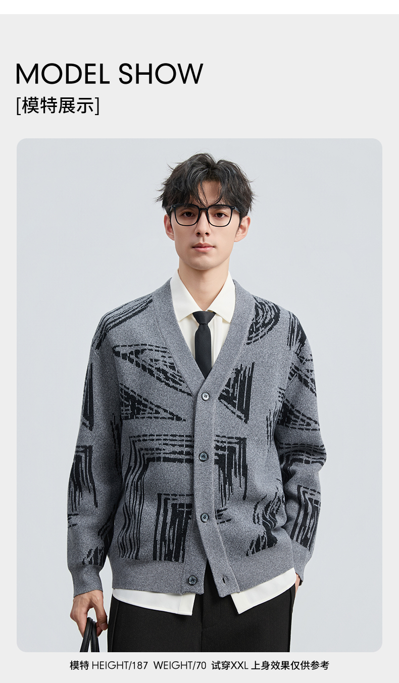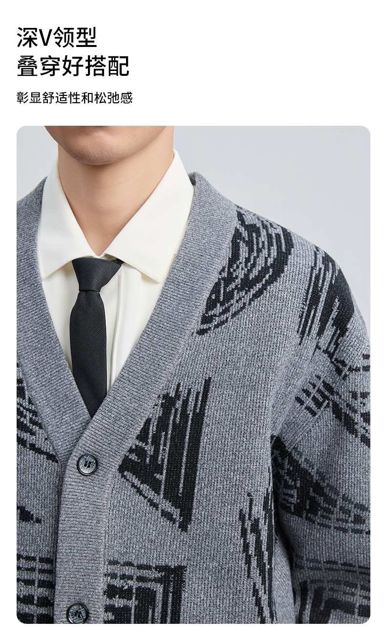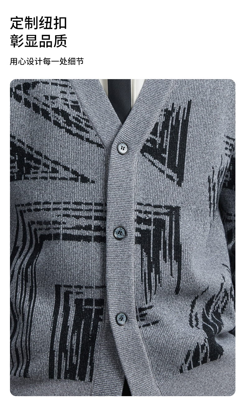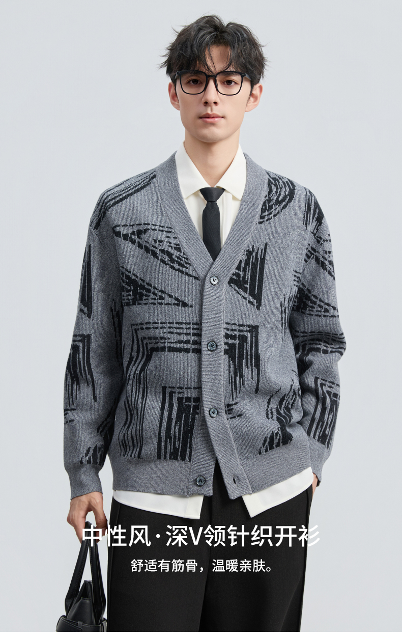 贝纳川2025秋季新品几何线条提花V领开衫ECF316001