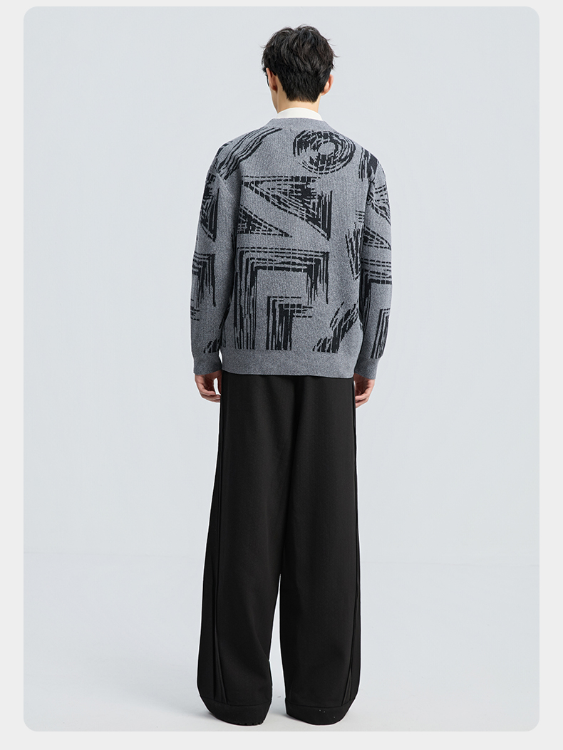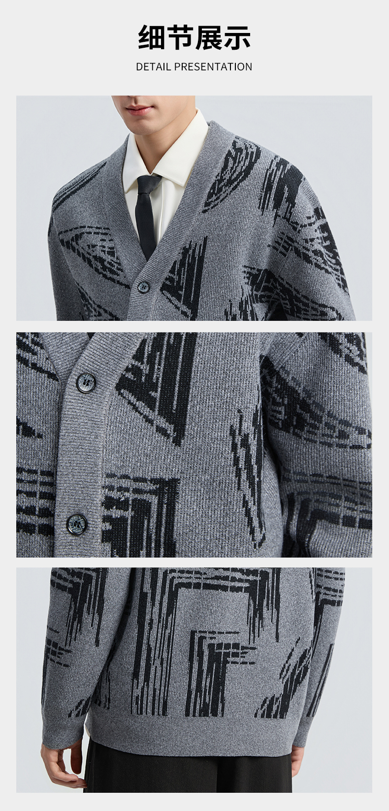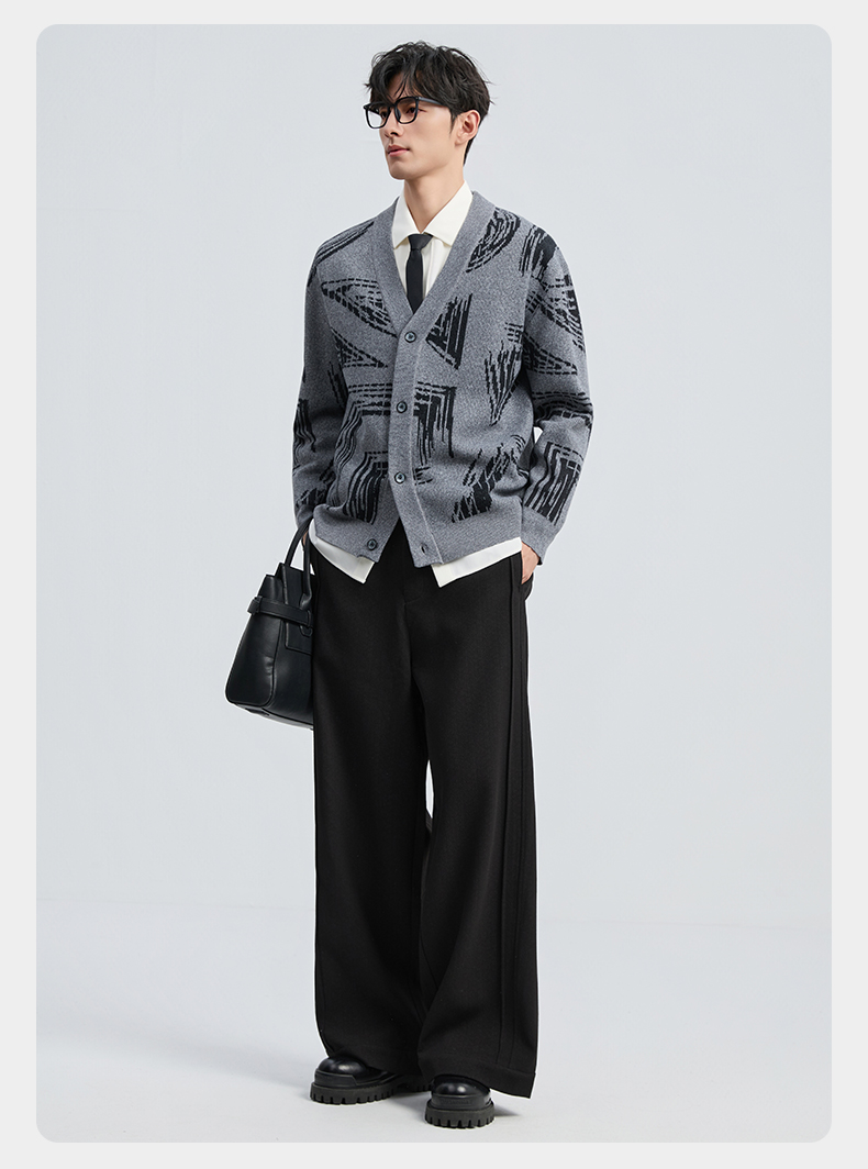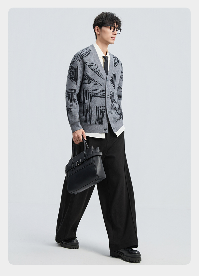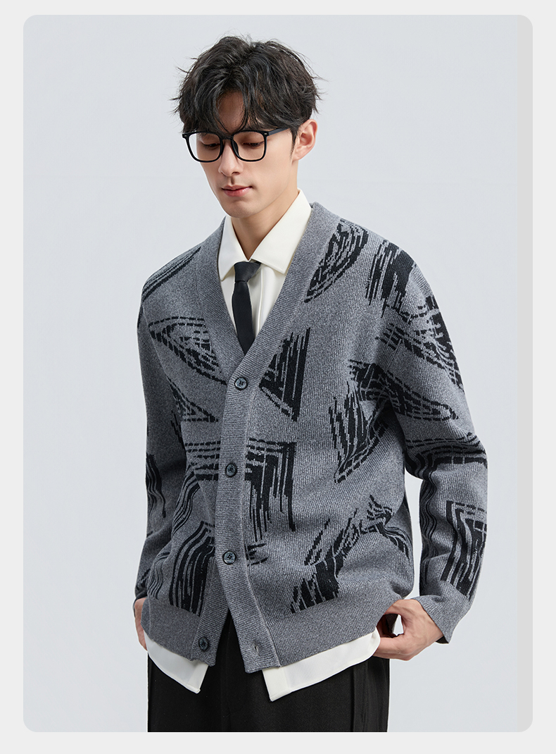 贝纳川2025秋季新品几何线条提花V领开衫ECF316001