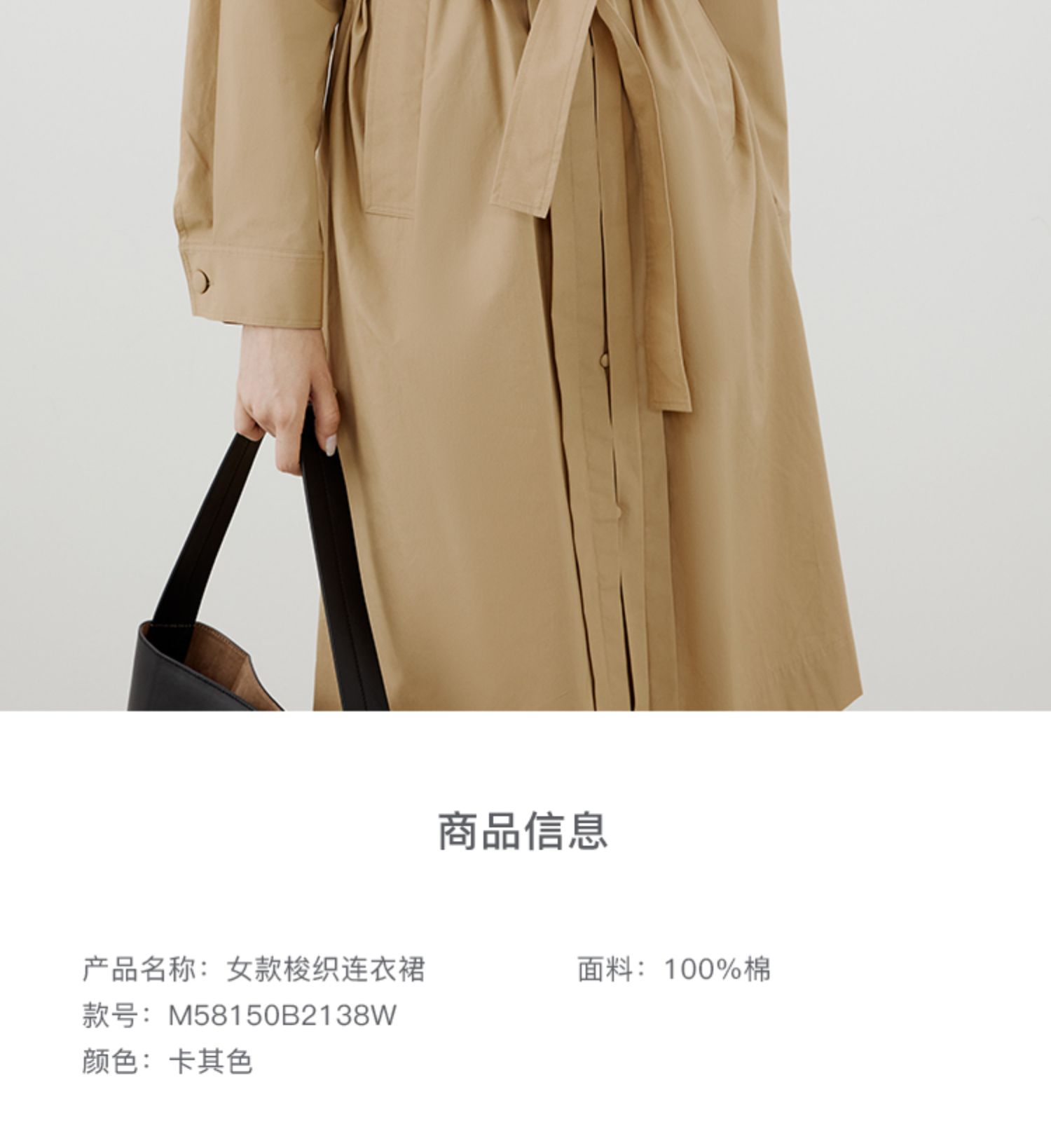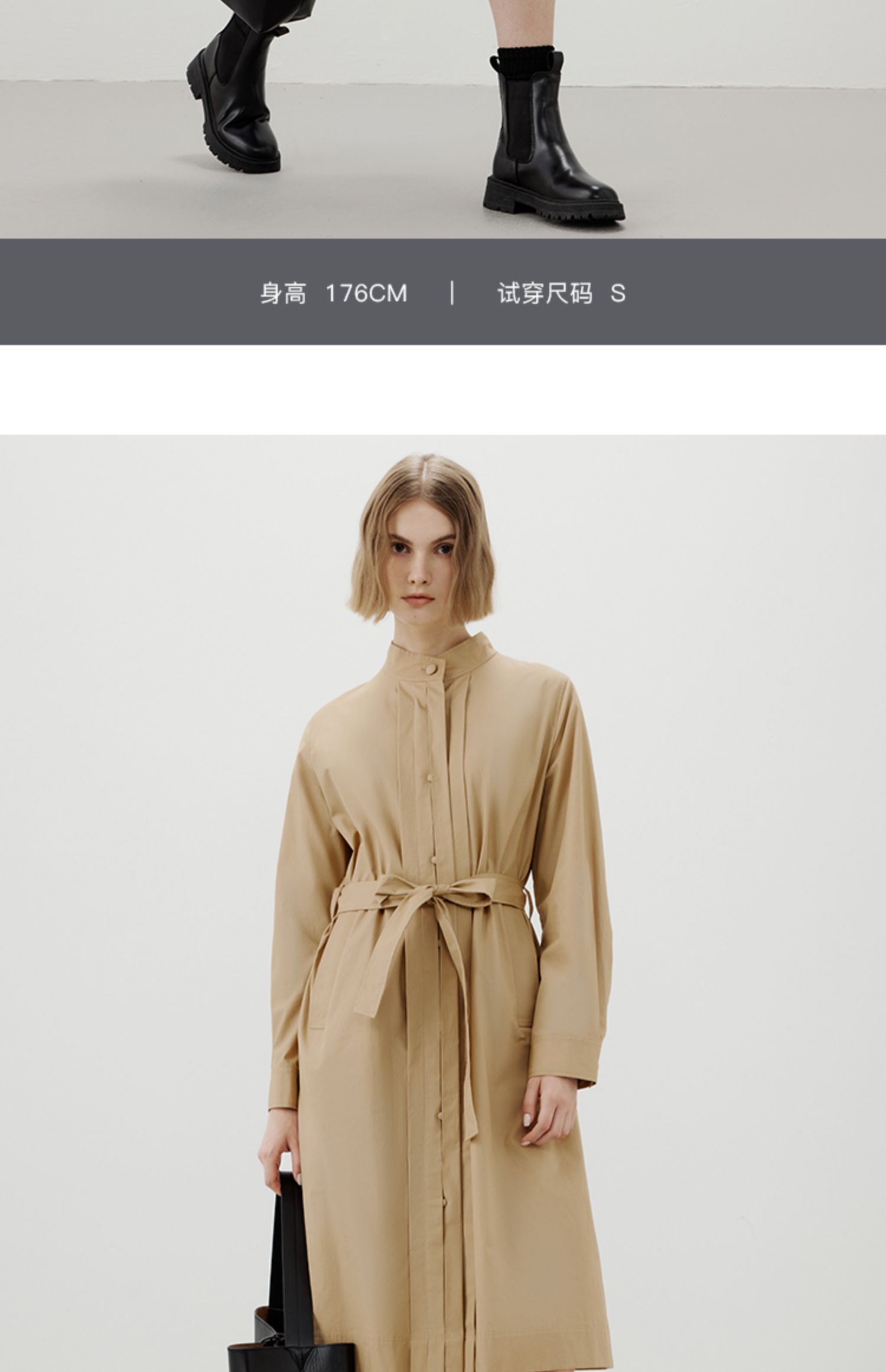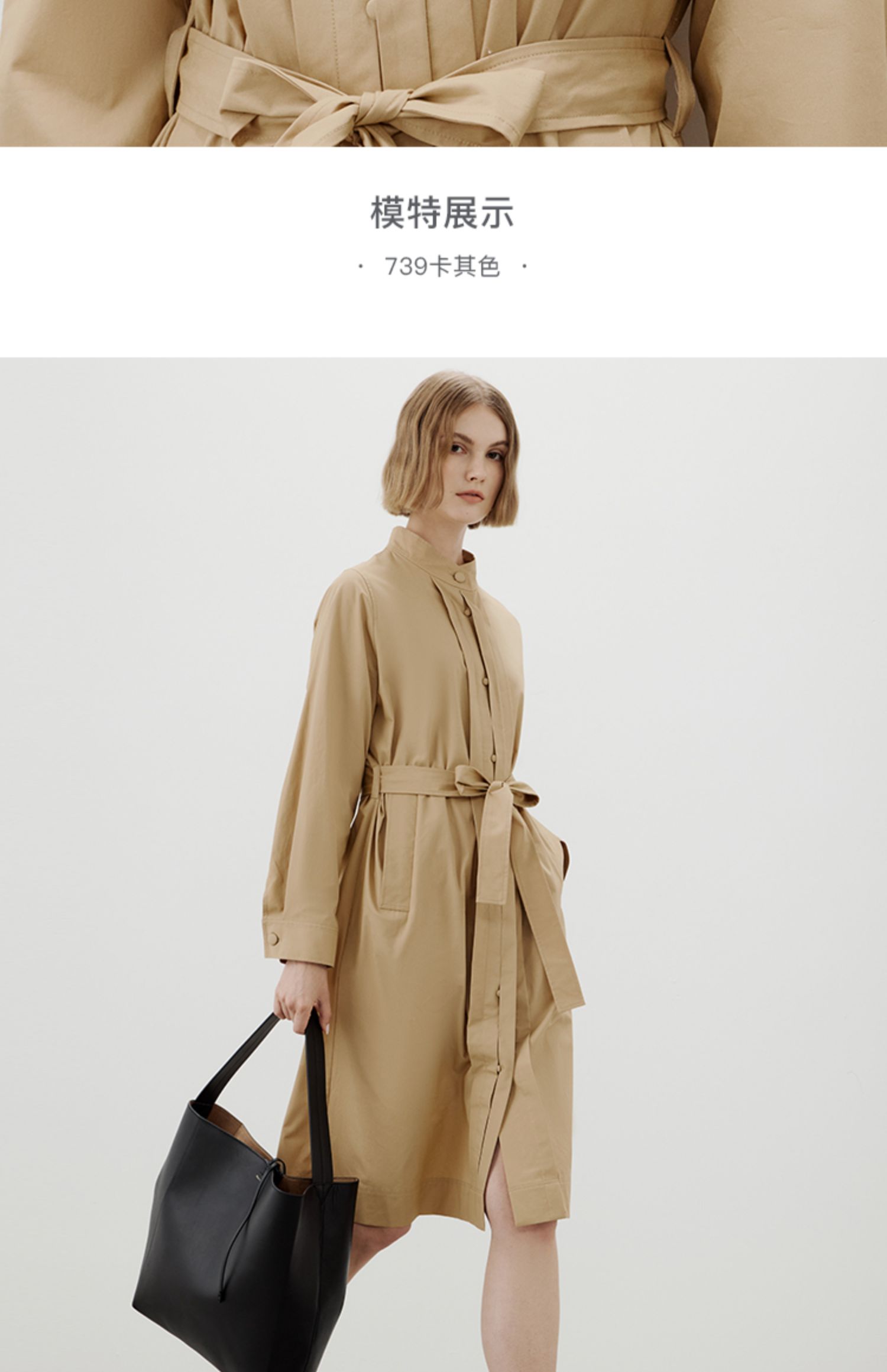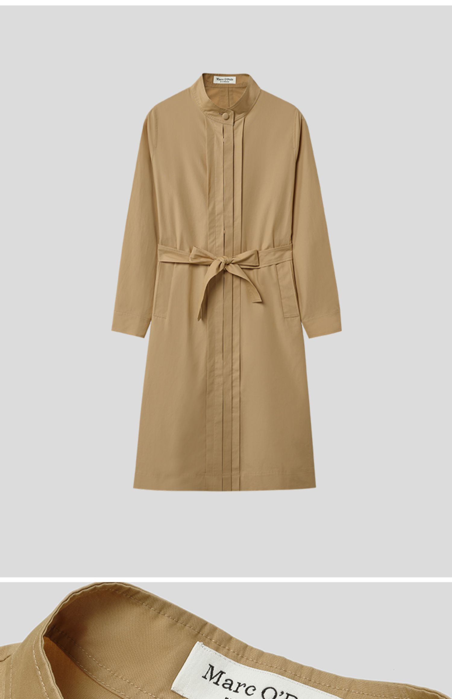 Marc O'Polo/MOP 秋季新款纯棉立领长款风衣系带收腰式连衣裙