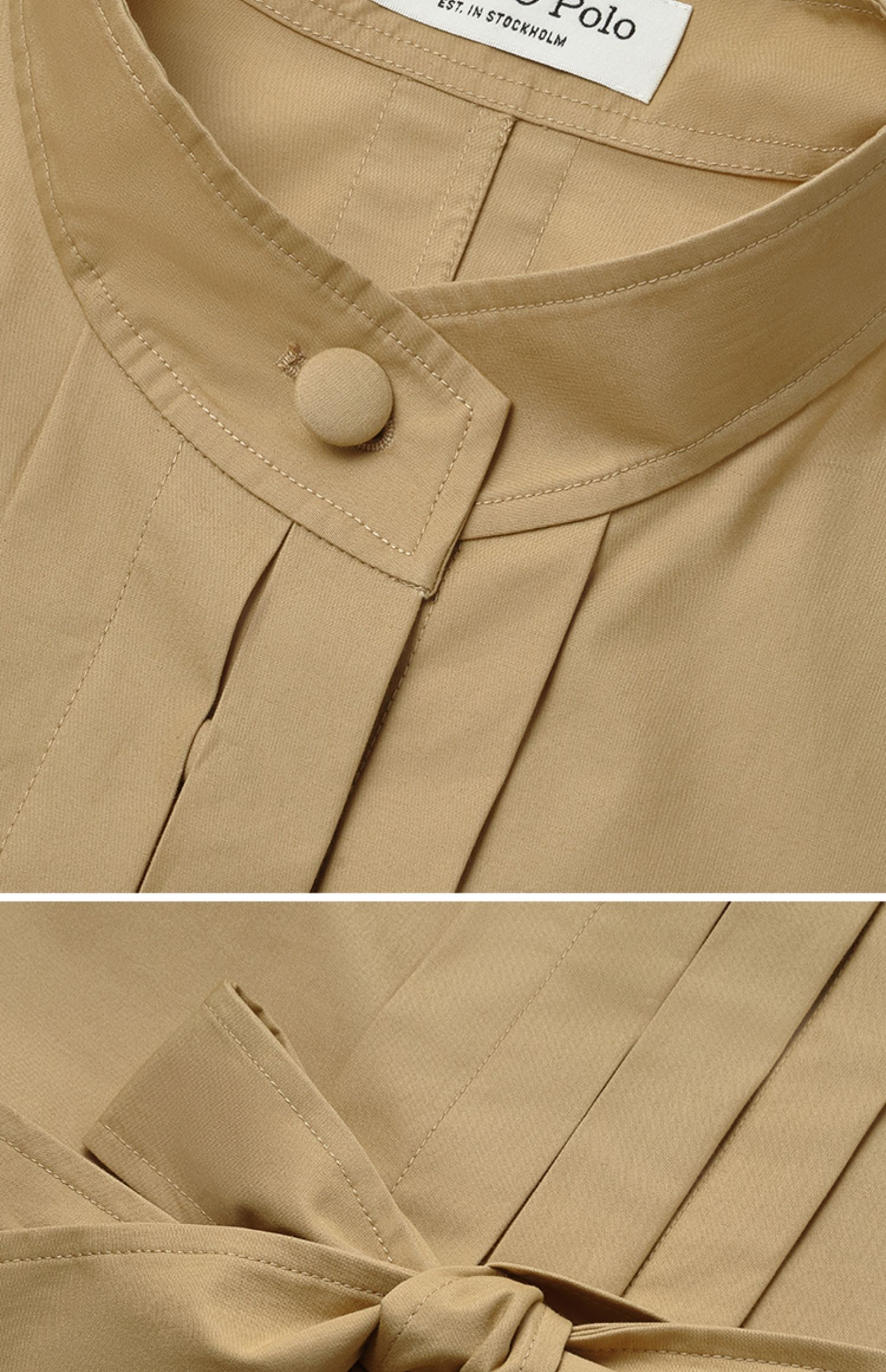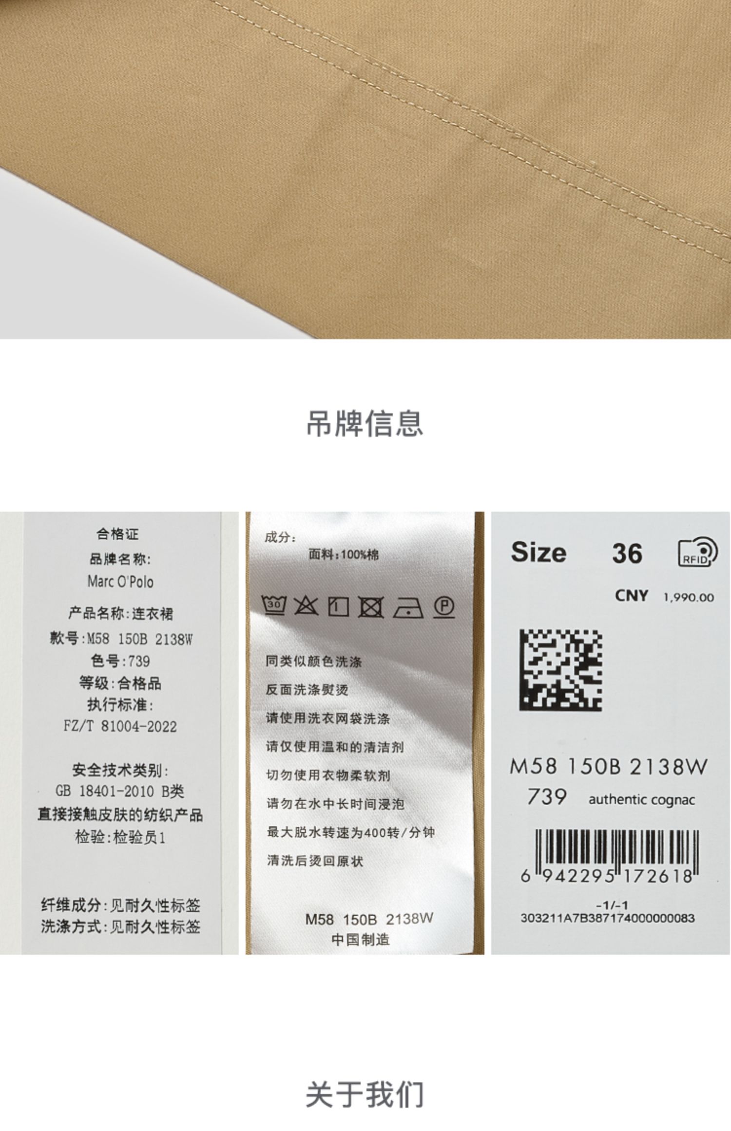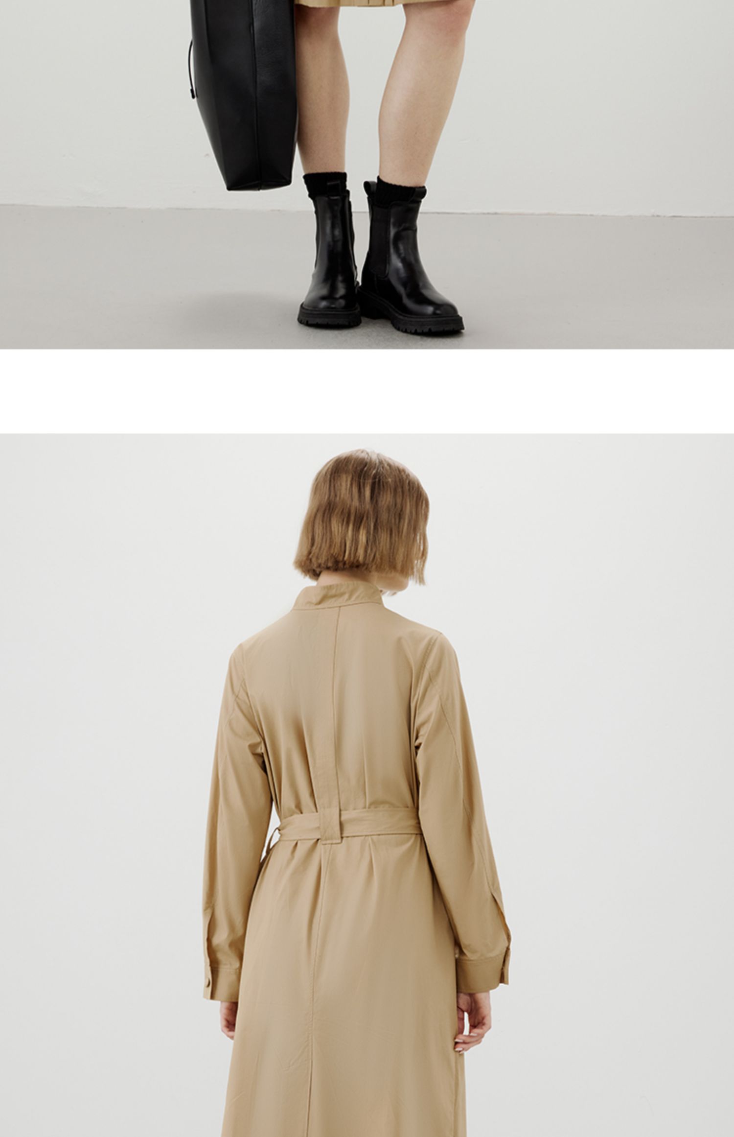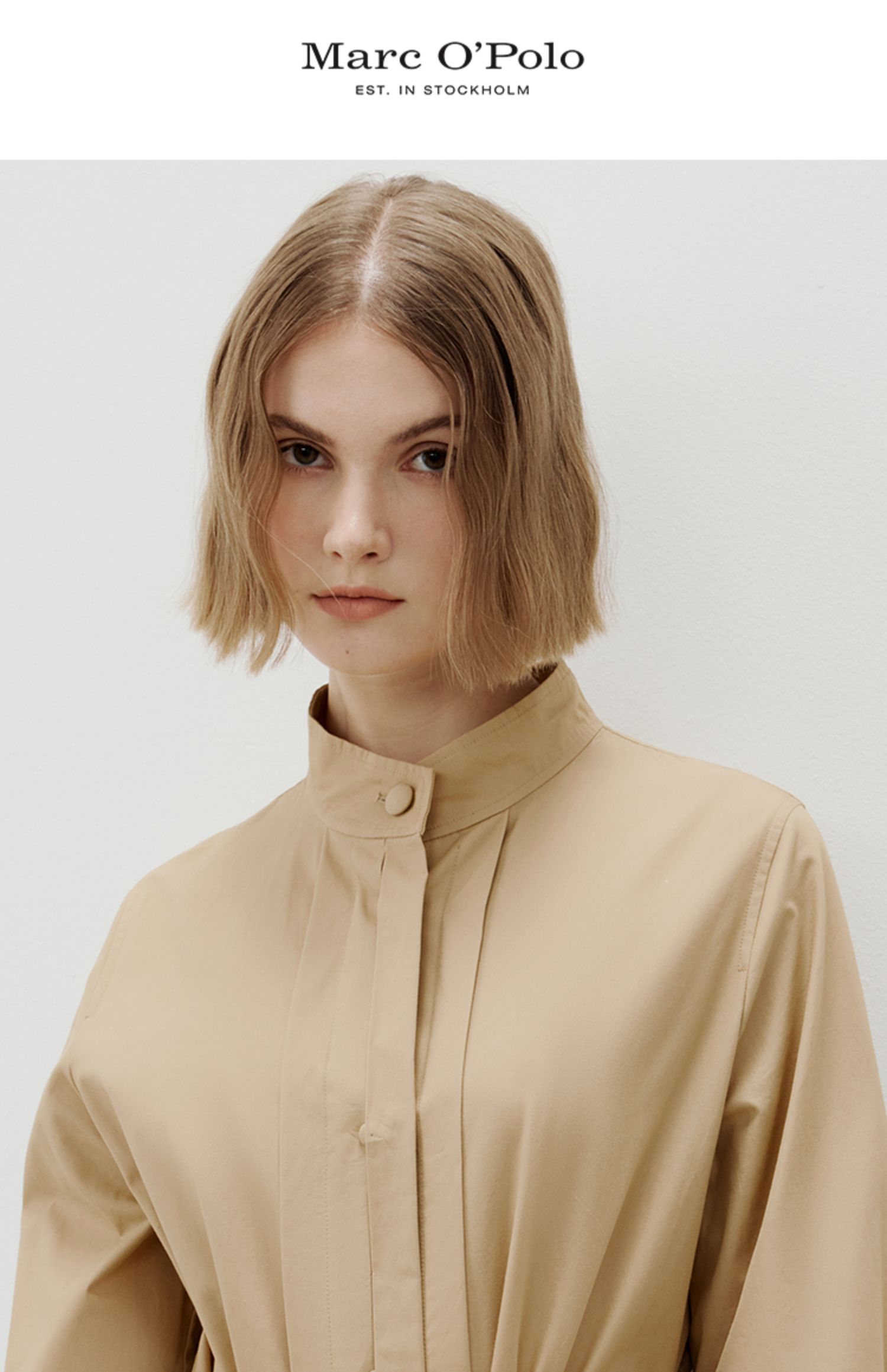 Marc O'Polo/MOP 秋季新款纯棉立领长款风衣系带收腰式连衣裙