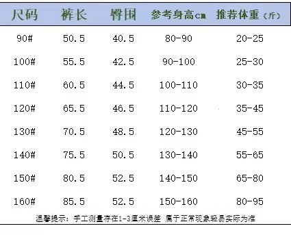 尺码从90码选到160码,男女同款 (尺码仅供参考,根据实际个人情况选择尺码)
