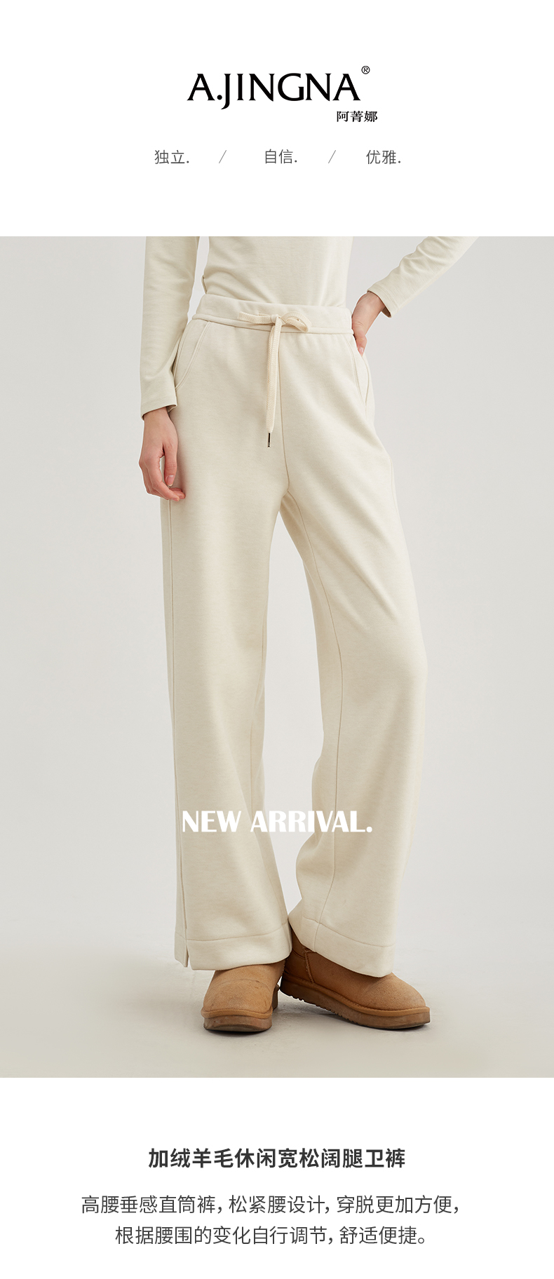 【积分兑换】阿菁娜加绒羊毛休闲宽松阔腿卫裤F29D210030