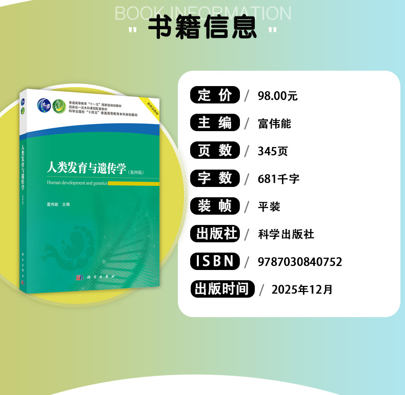 人类发育与遗传学 第4四版 十四五普通高等教育本科规划教材 富伟能 主编 基础医学类 本科教材 9787030840752 科学出版社