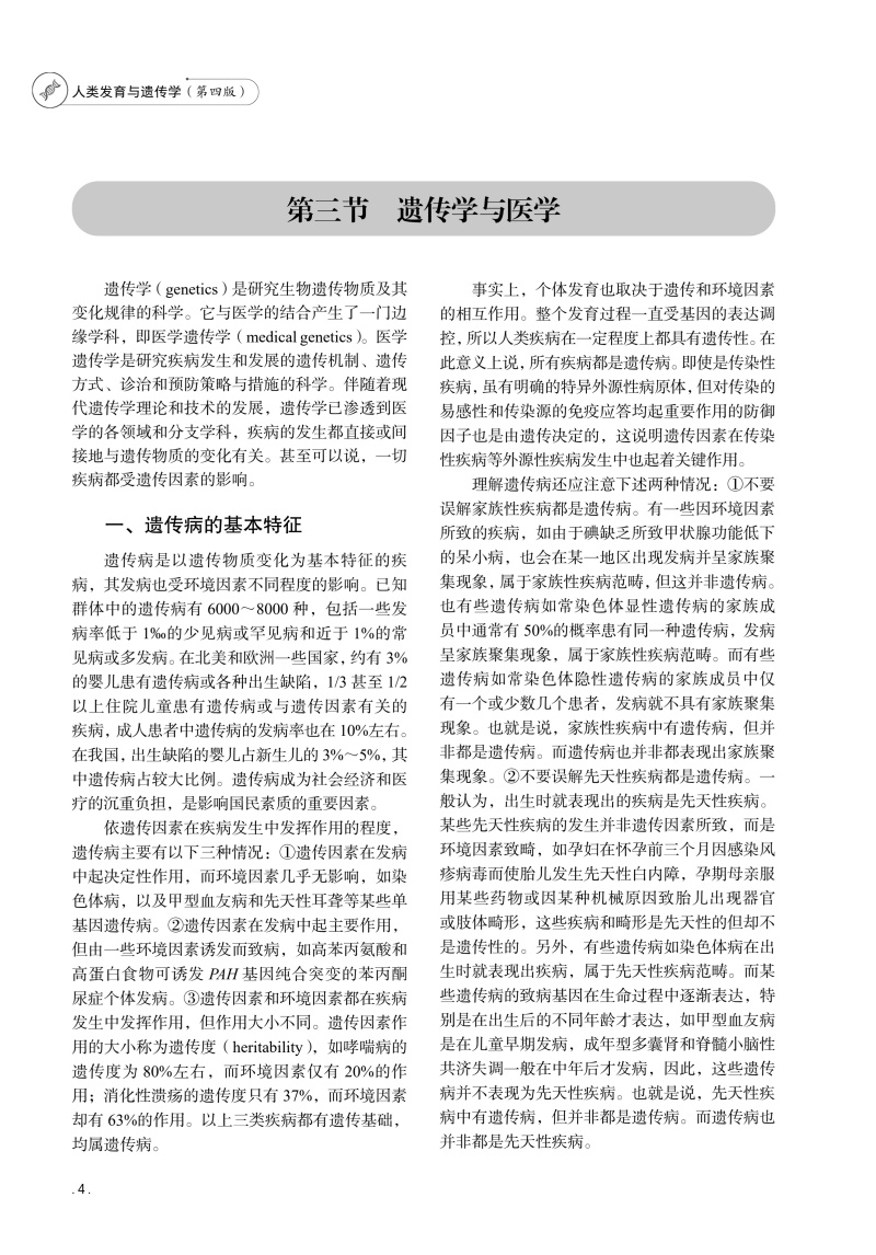 书名:人类发育与遗传学(第四版)十四五普通高等教育本科规划教材