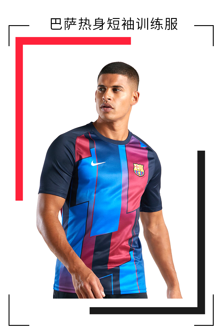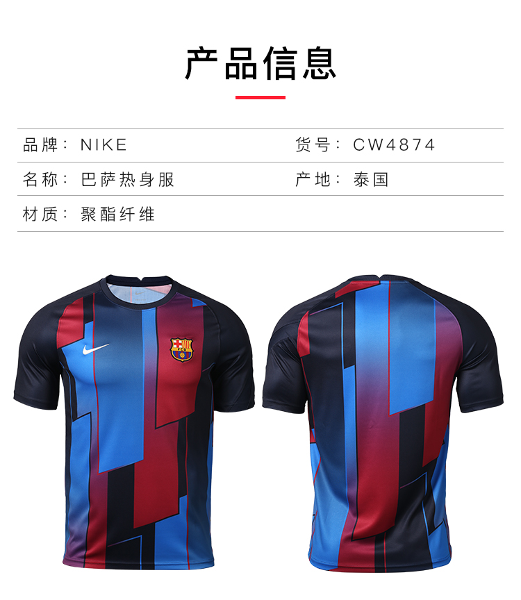 NIKE/耐克21-22赛季巴萨热身短袖训练服男CW4874-452
