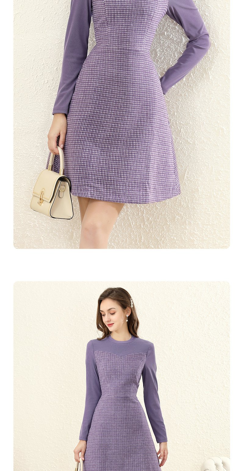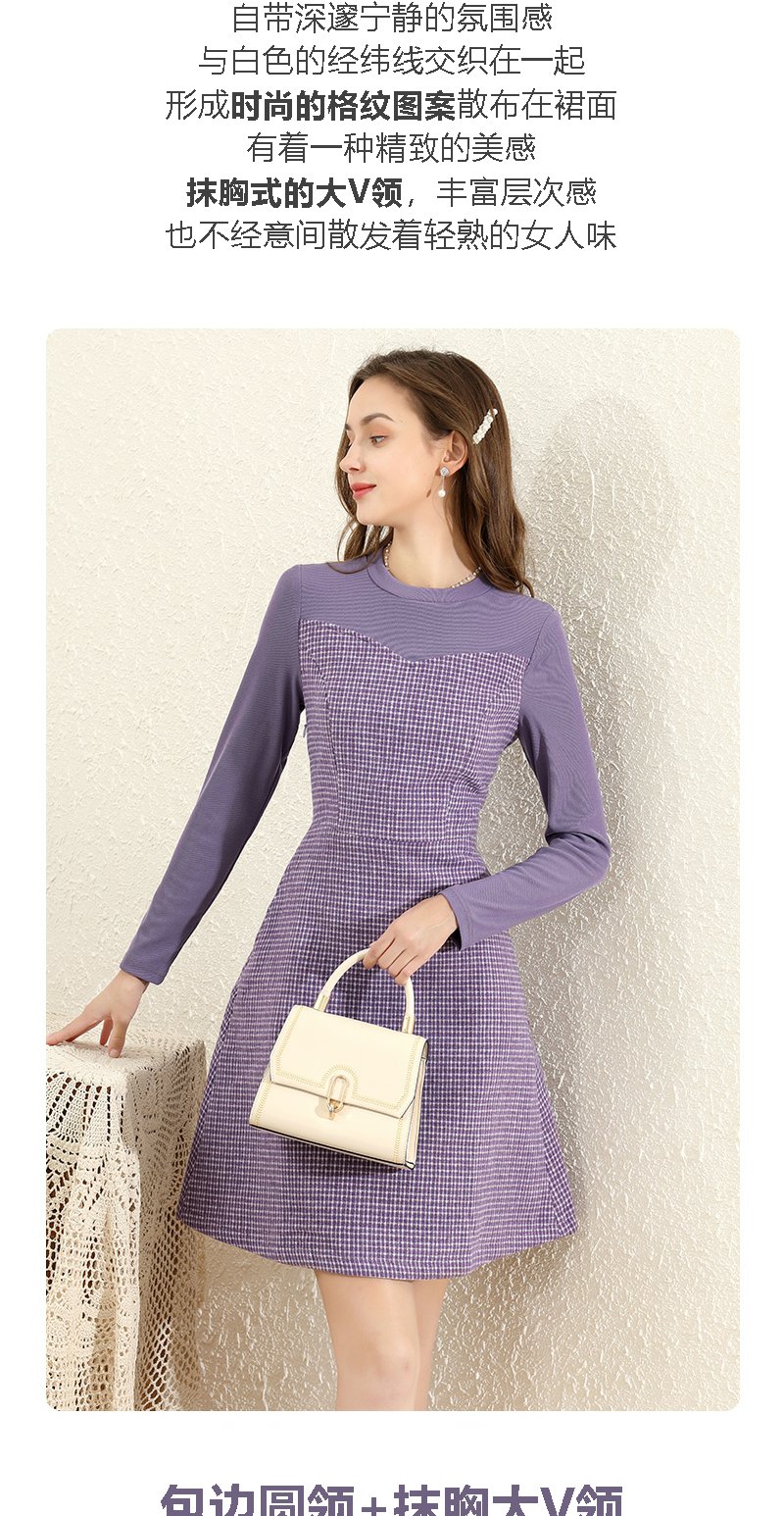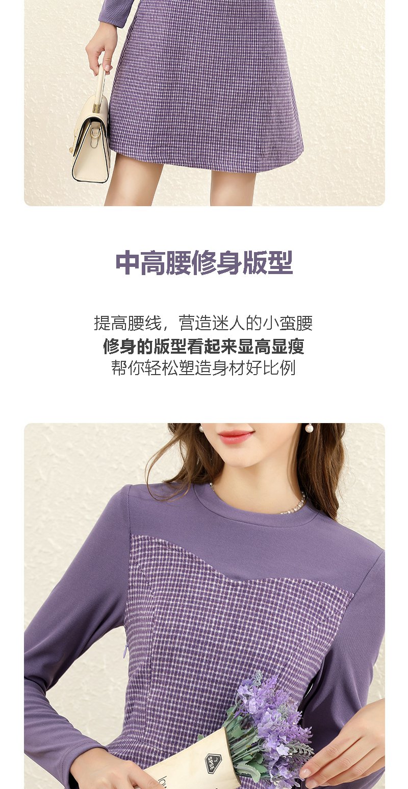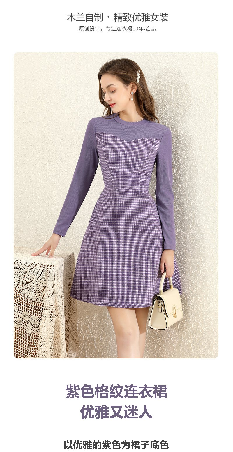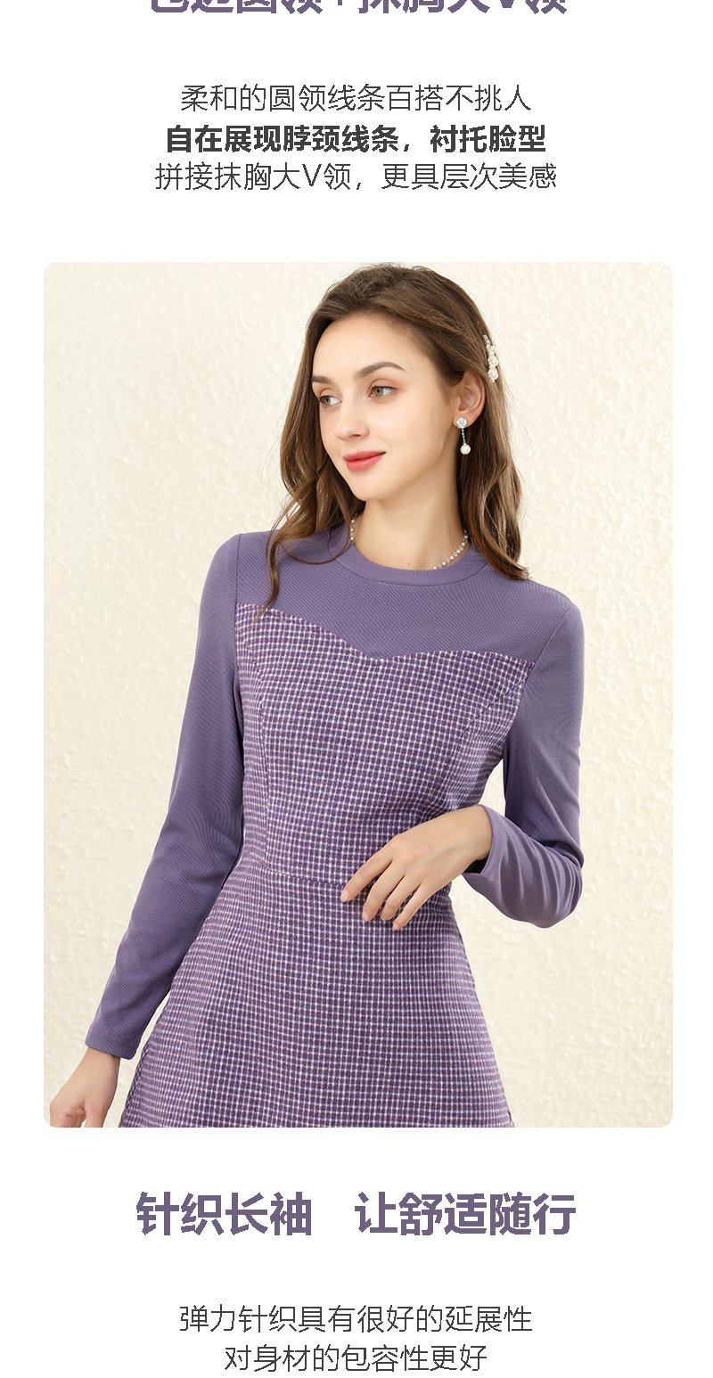 勿忘花紫色气质针织连衣裙女2023冬季新款假两件内搭打底显瘦裙子