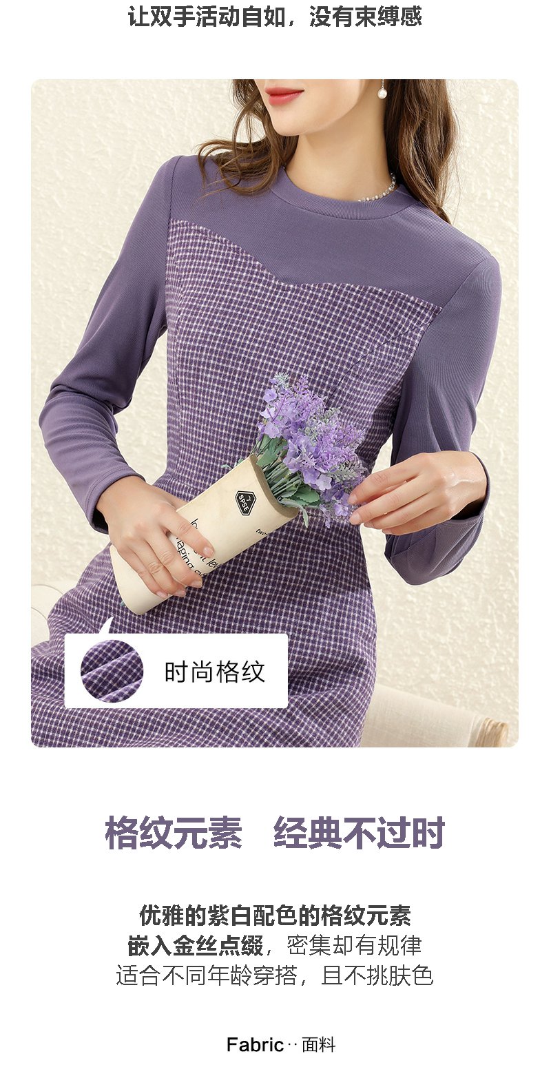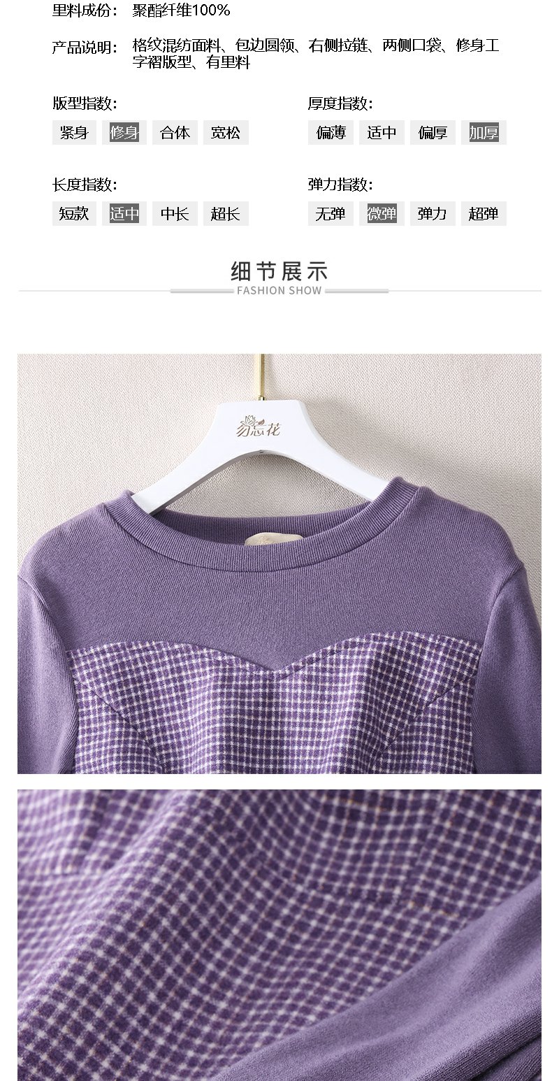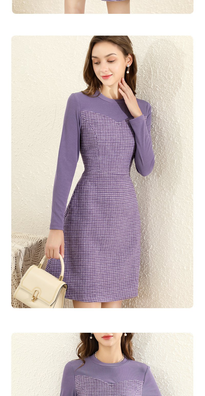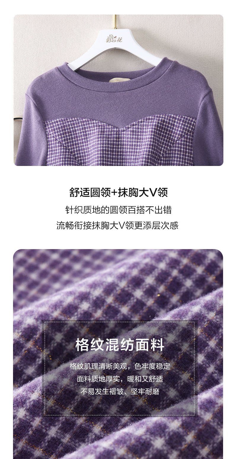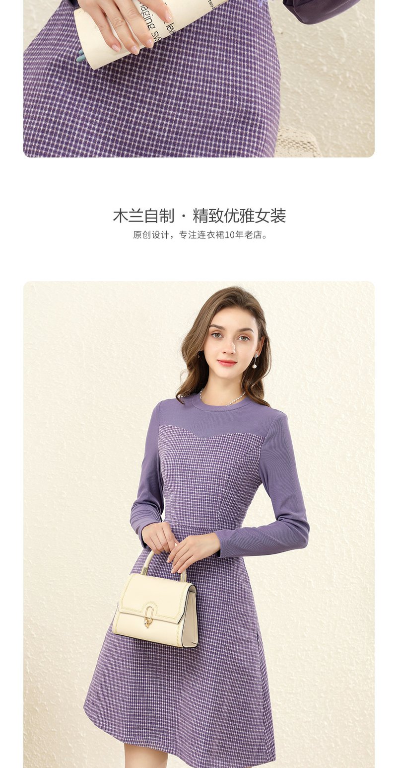 勿忘花紫色气质针织连衣裙女2023冬季新款假两件内搭打底显瘦裙子
