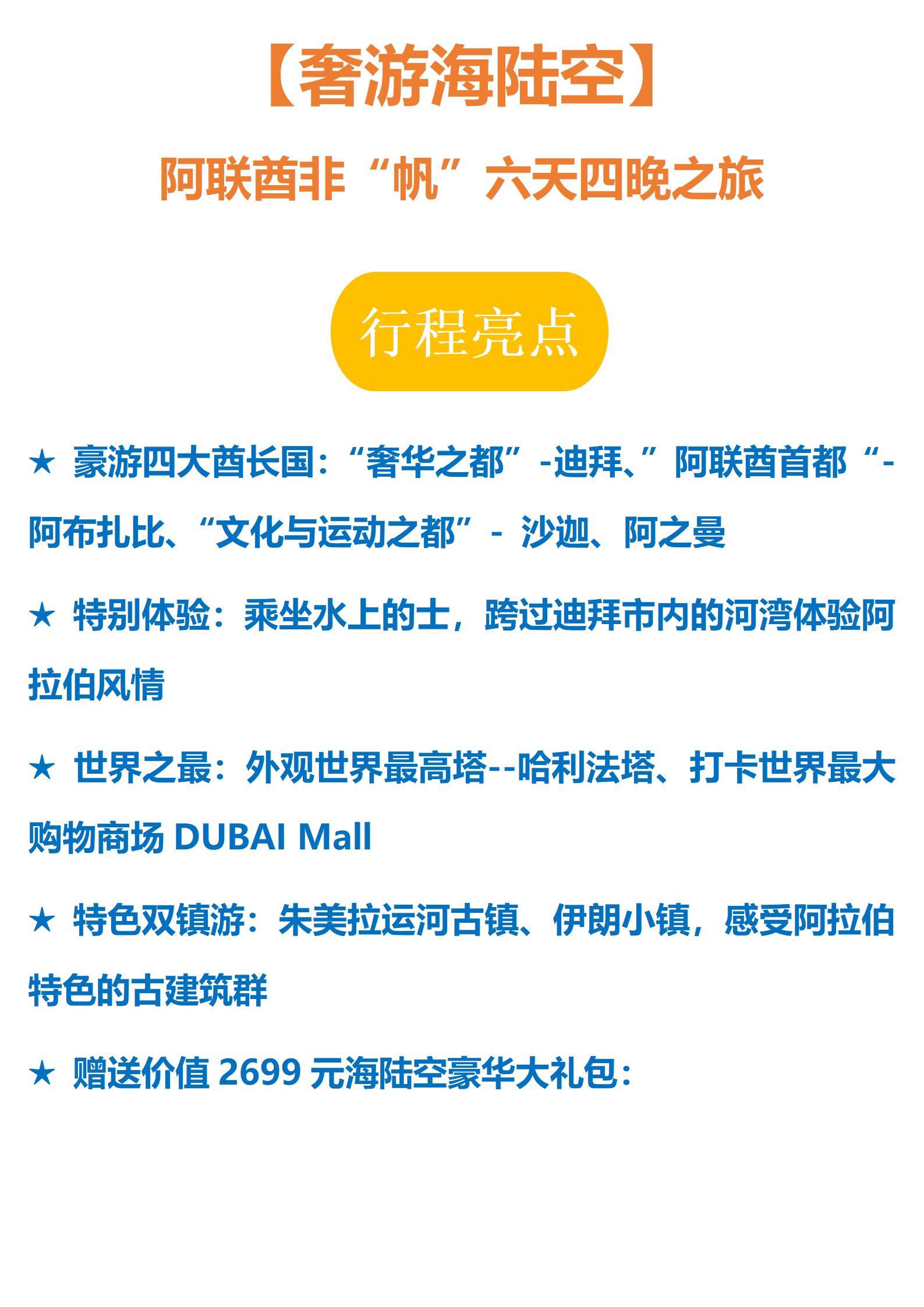 【奢游海陆空】 阿联酋非“帆”六天四晚之旅
