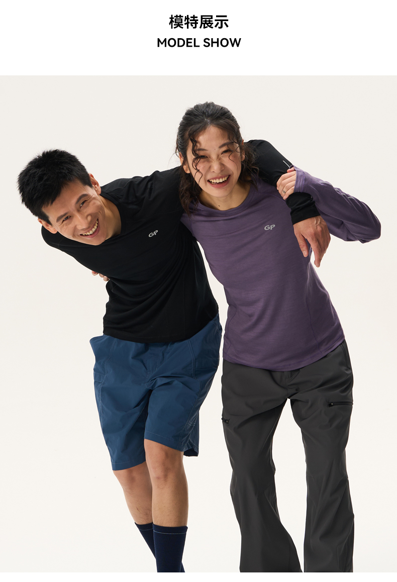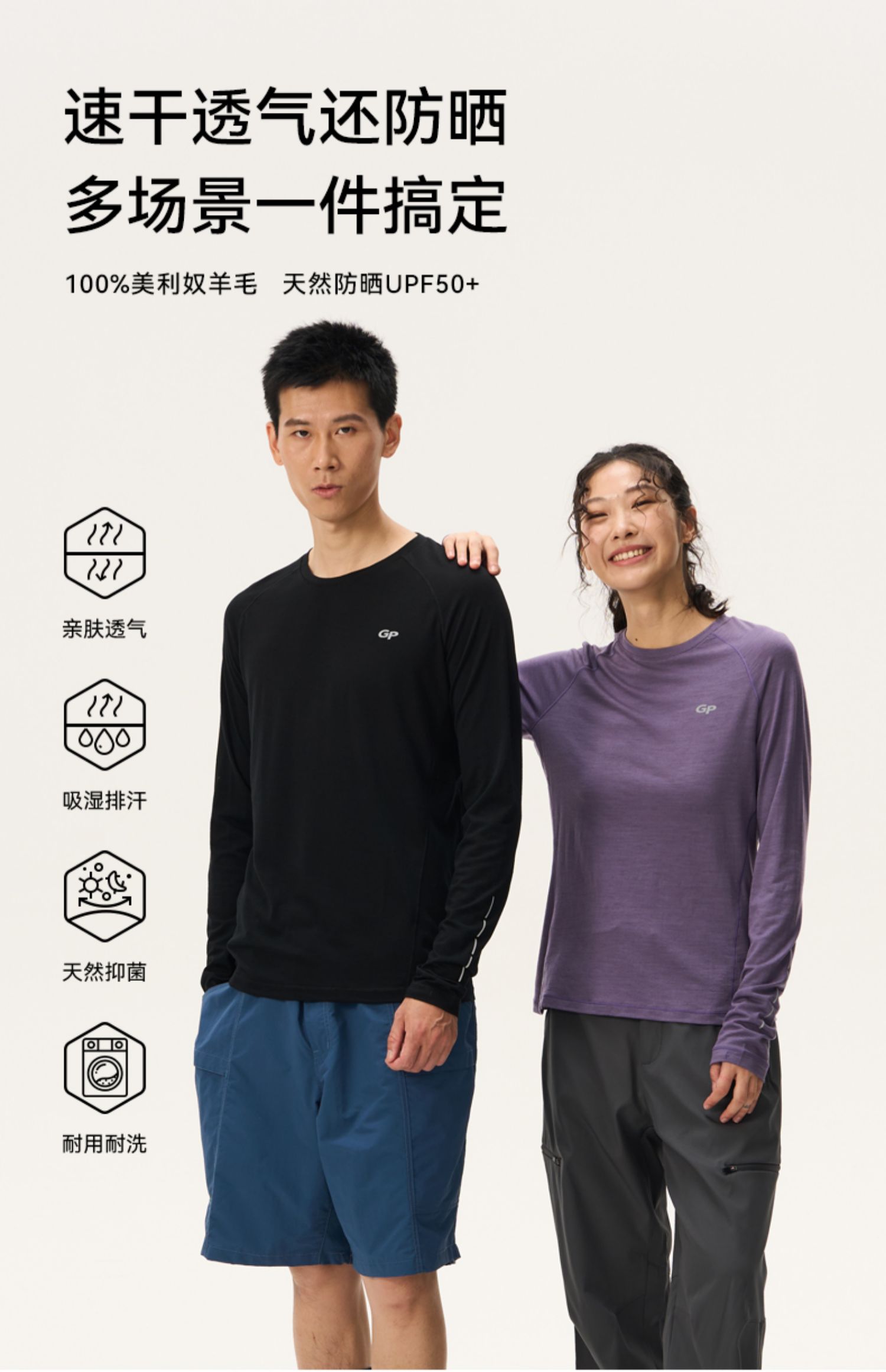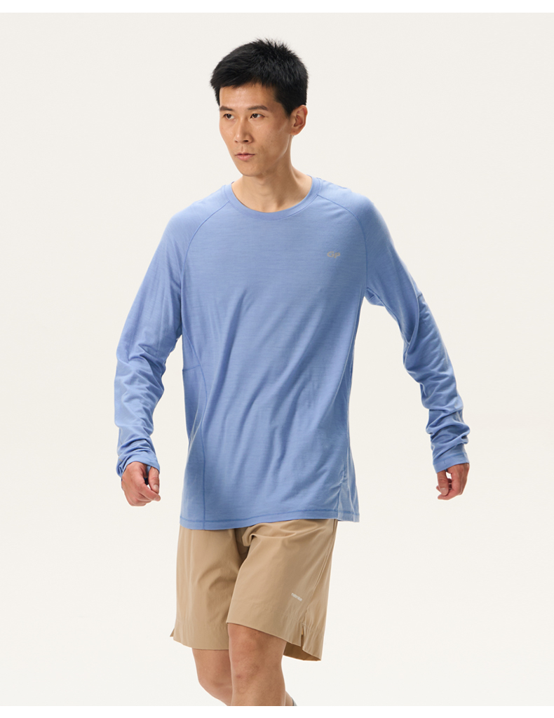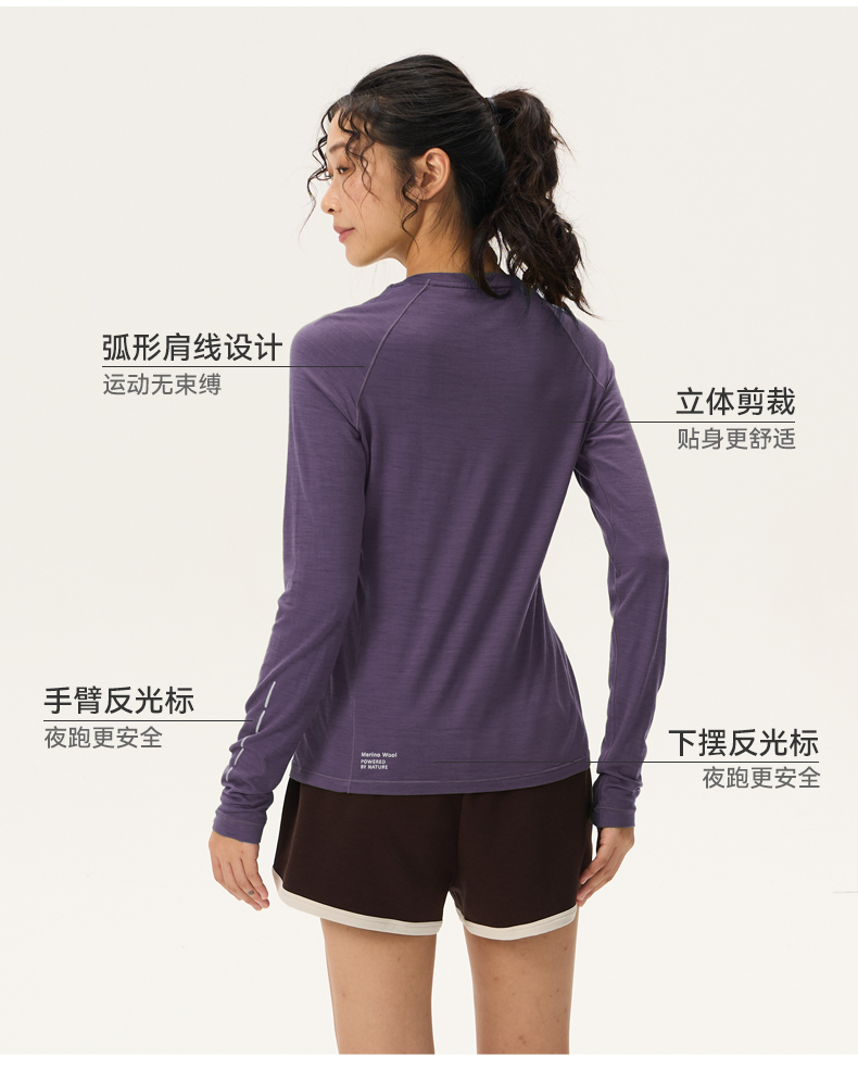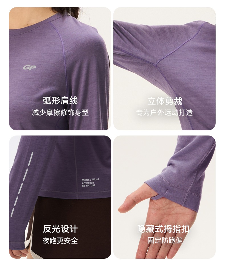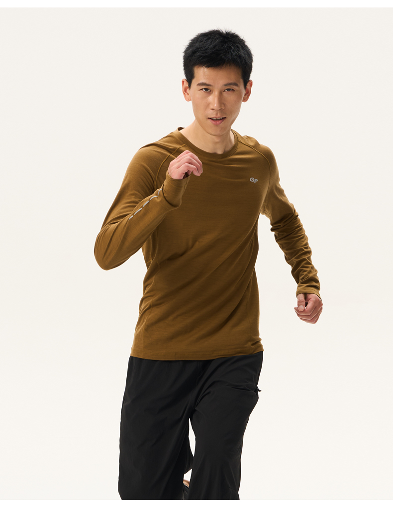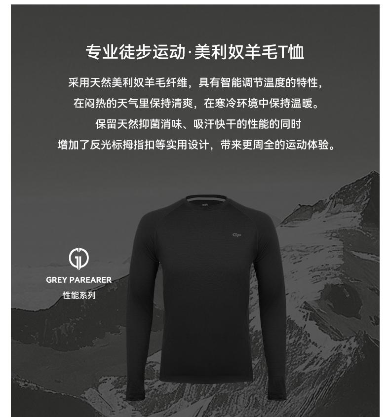 灰壳美利奴羊毛速干衣跑步夜间反光户外登山美丽诺长袖男女款