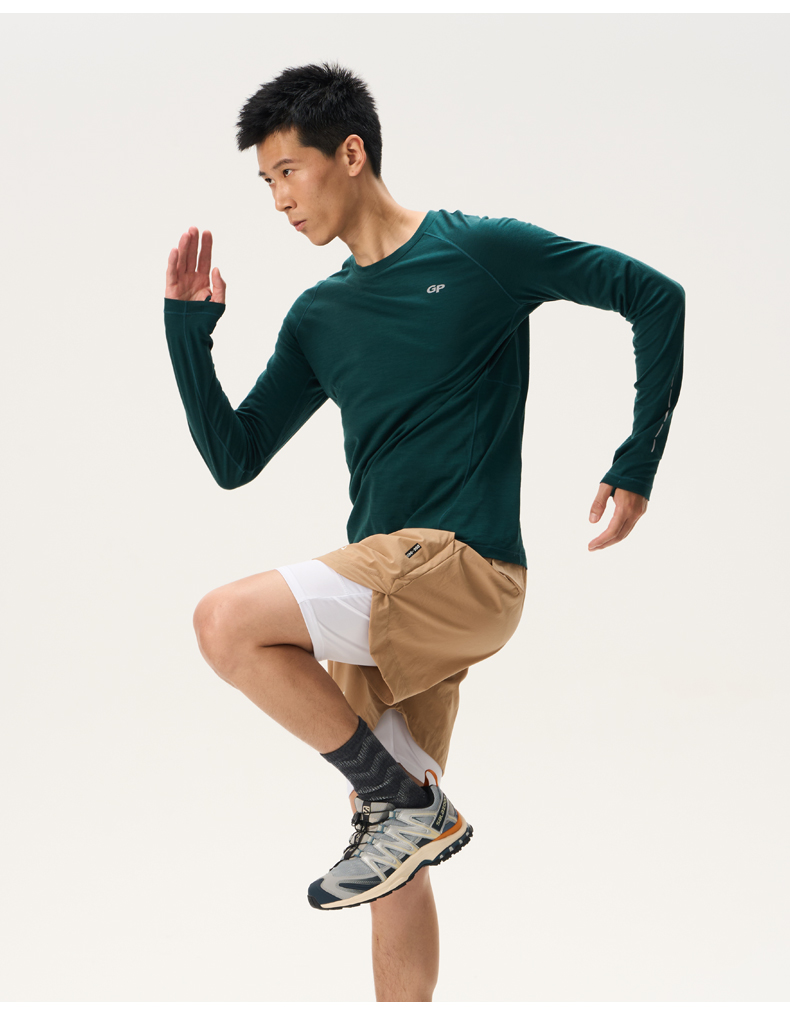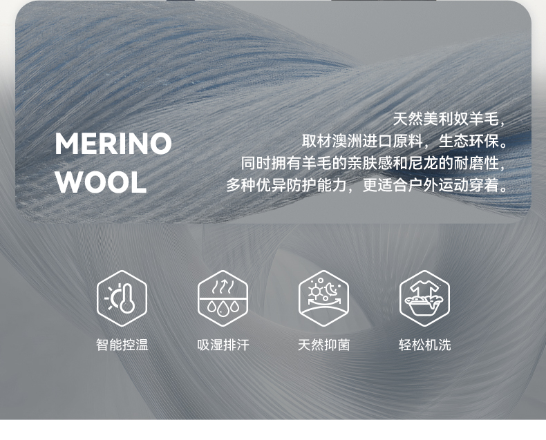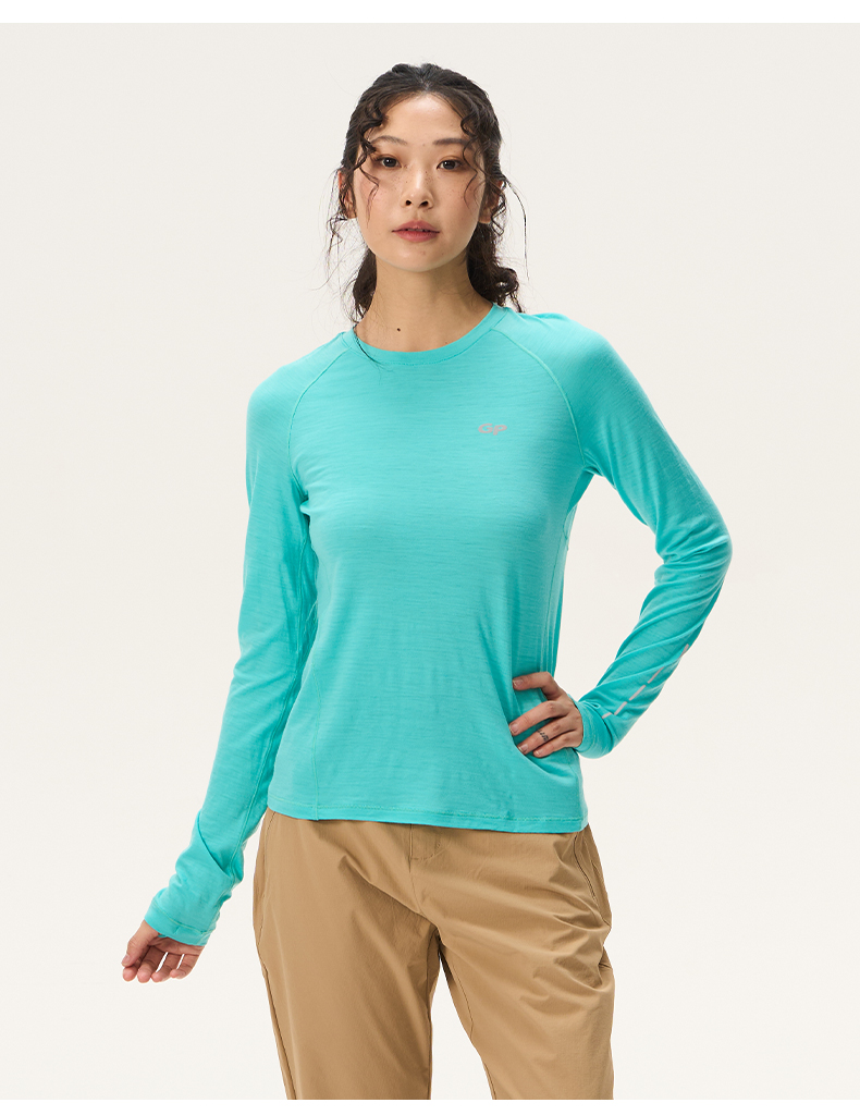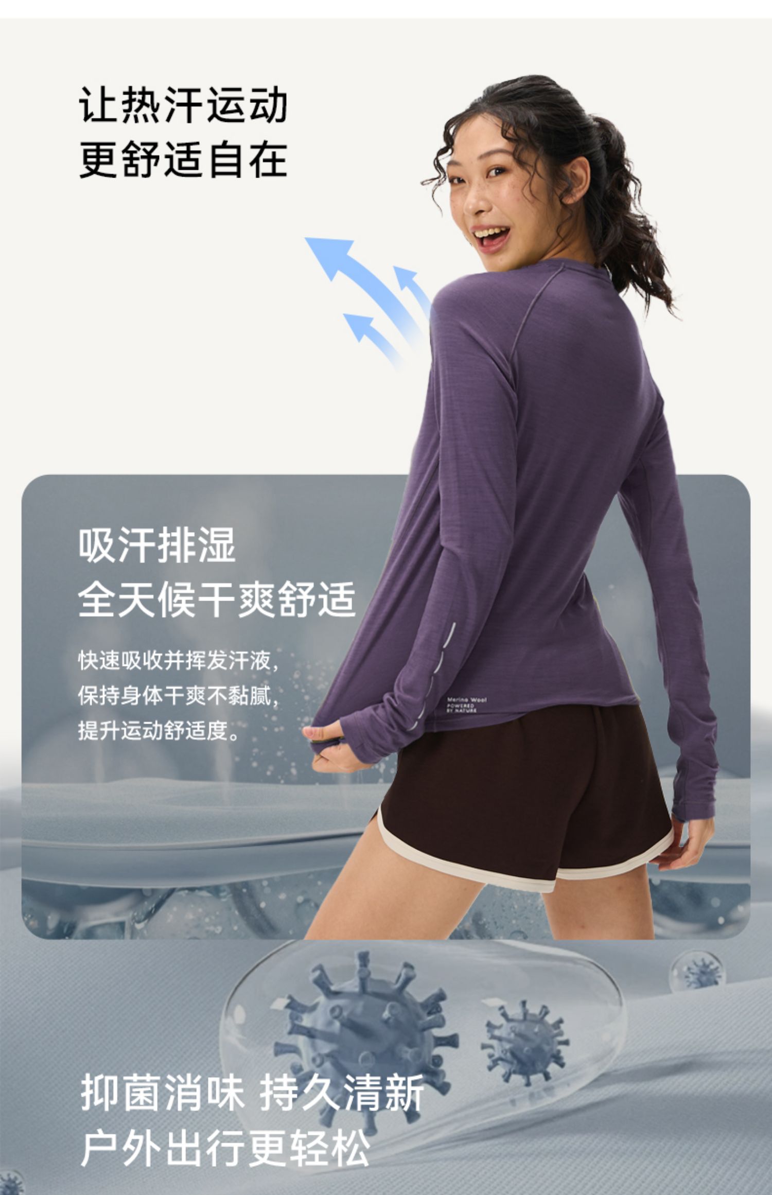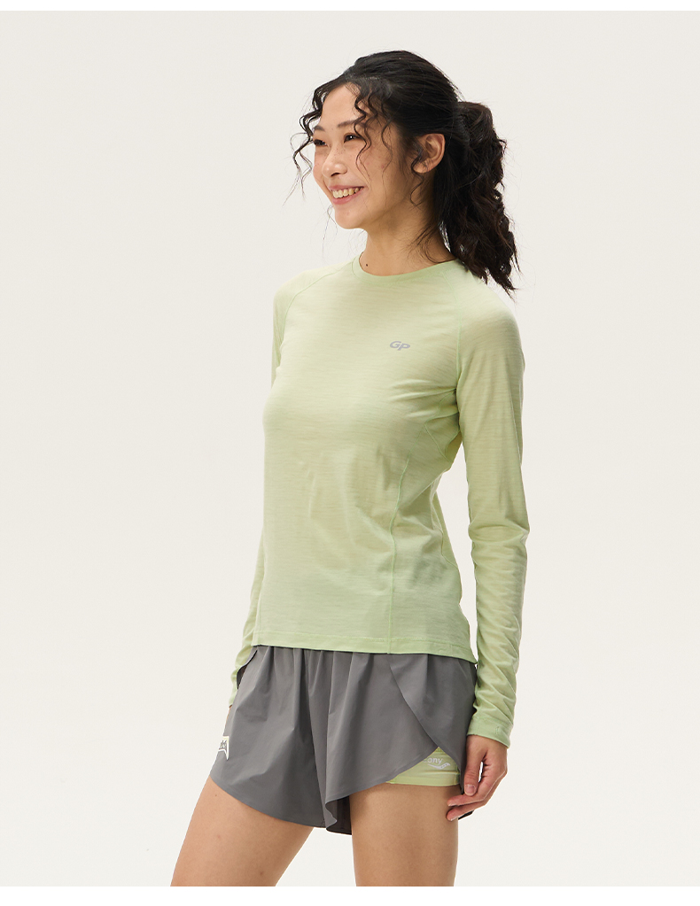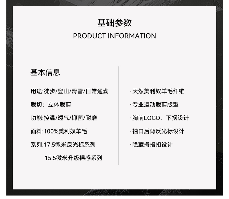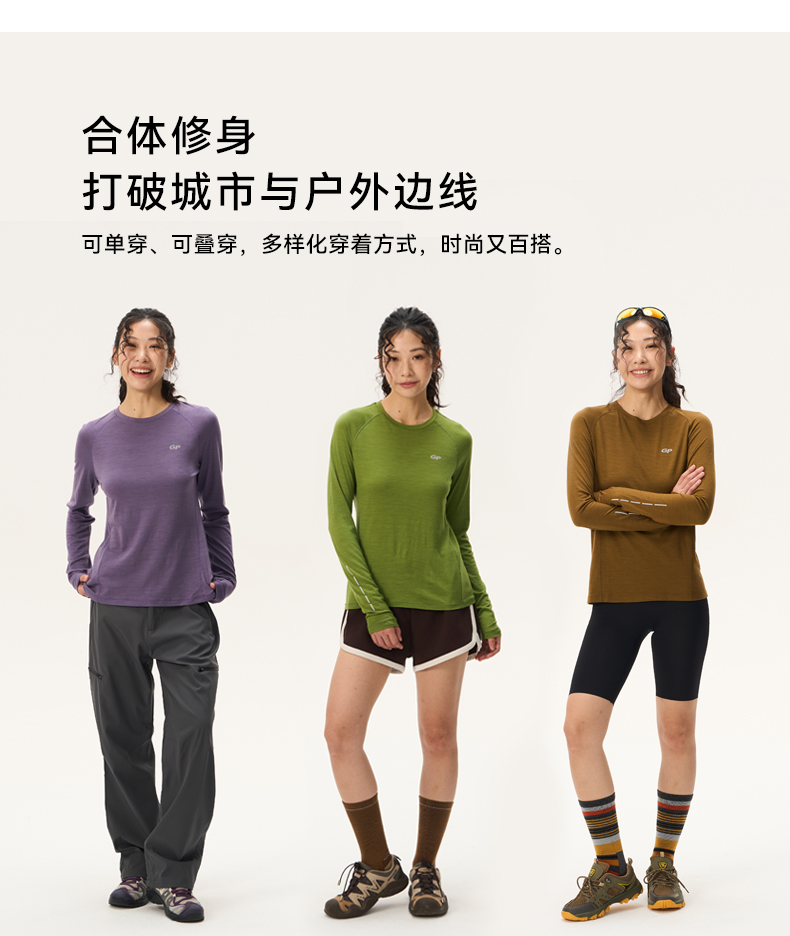 灰壳美利奴羊毛速干衣跑步夜间反光户外登山美丽诺长袖男女款