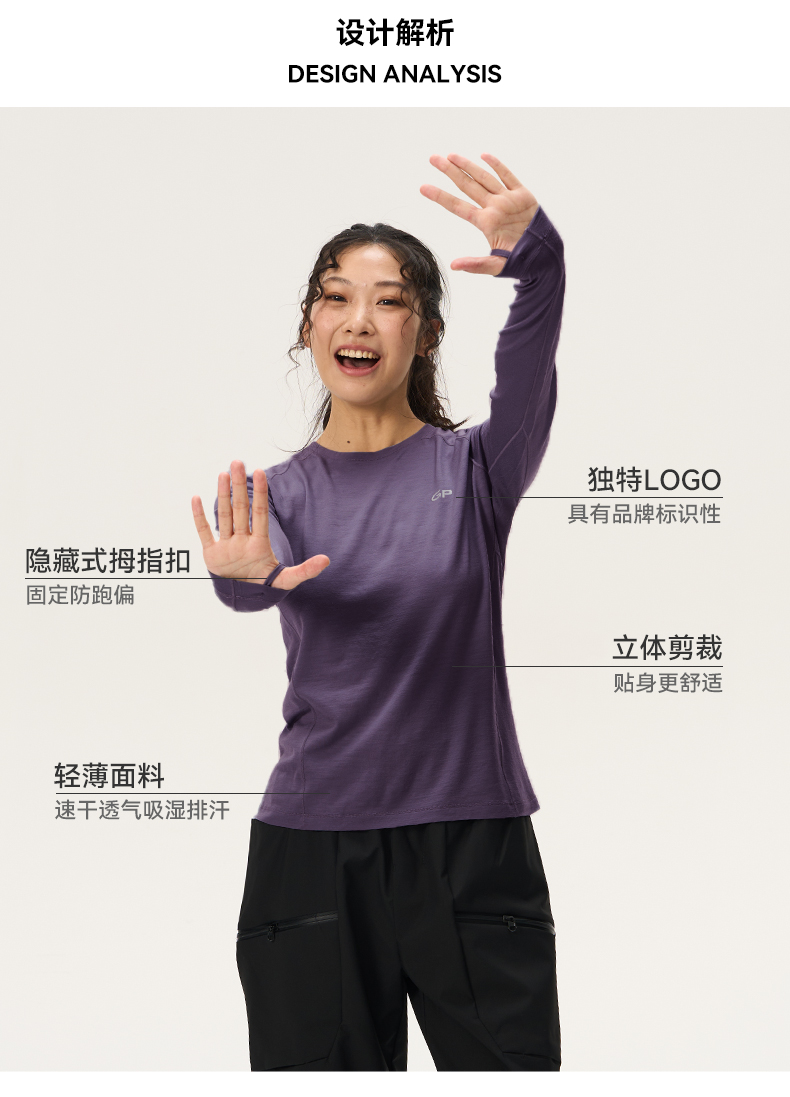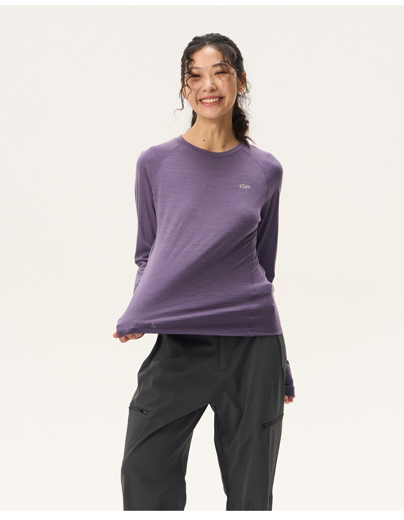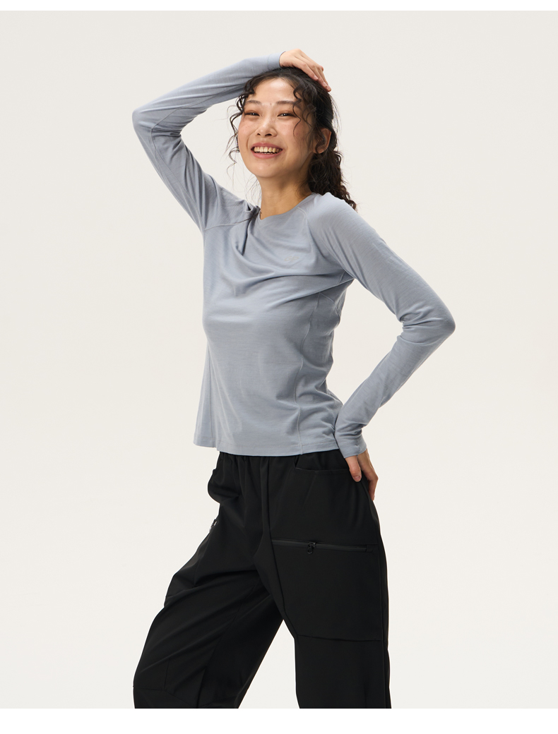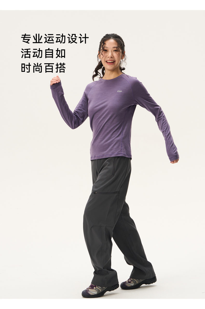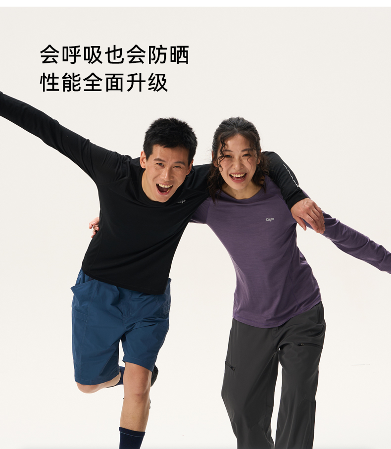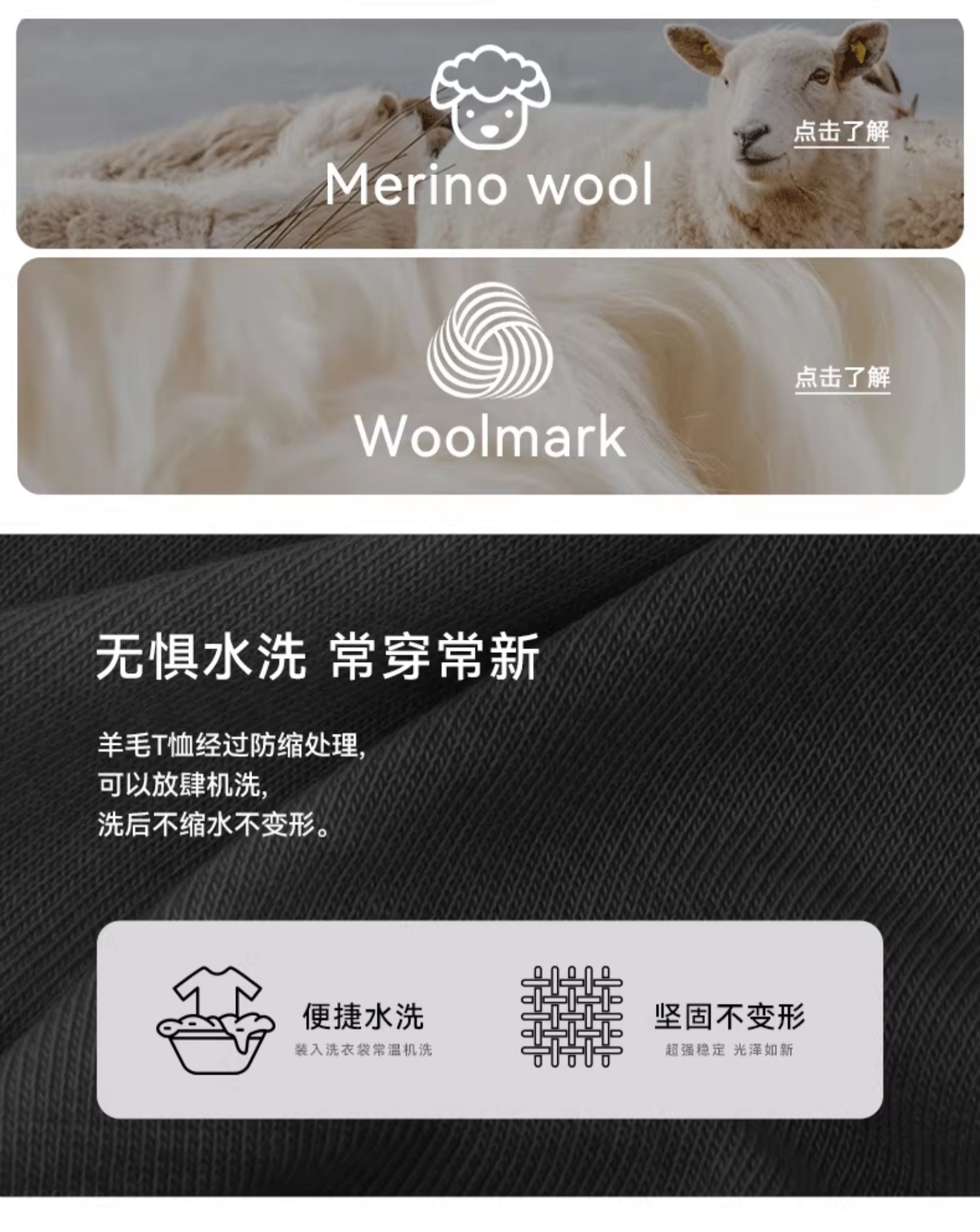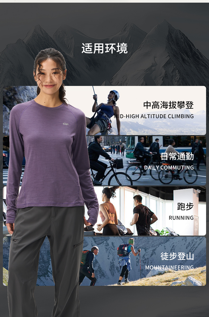 灰壳美利奴羊毛速干衣跑步夜间反光户外登山美丽诺长袖男女款