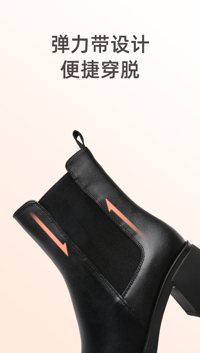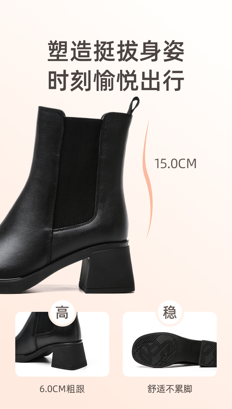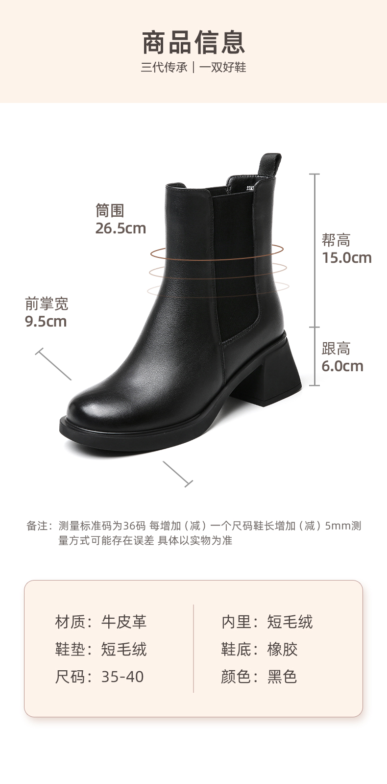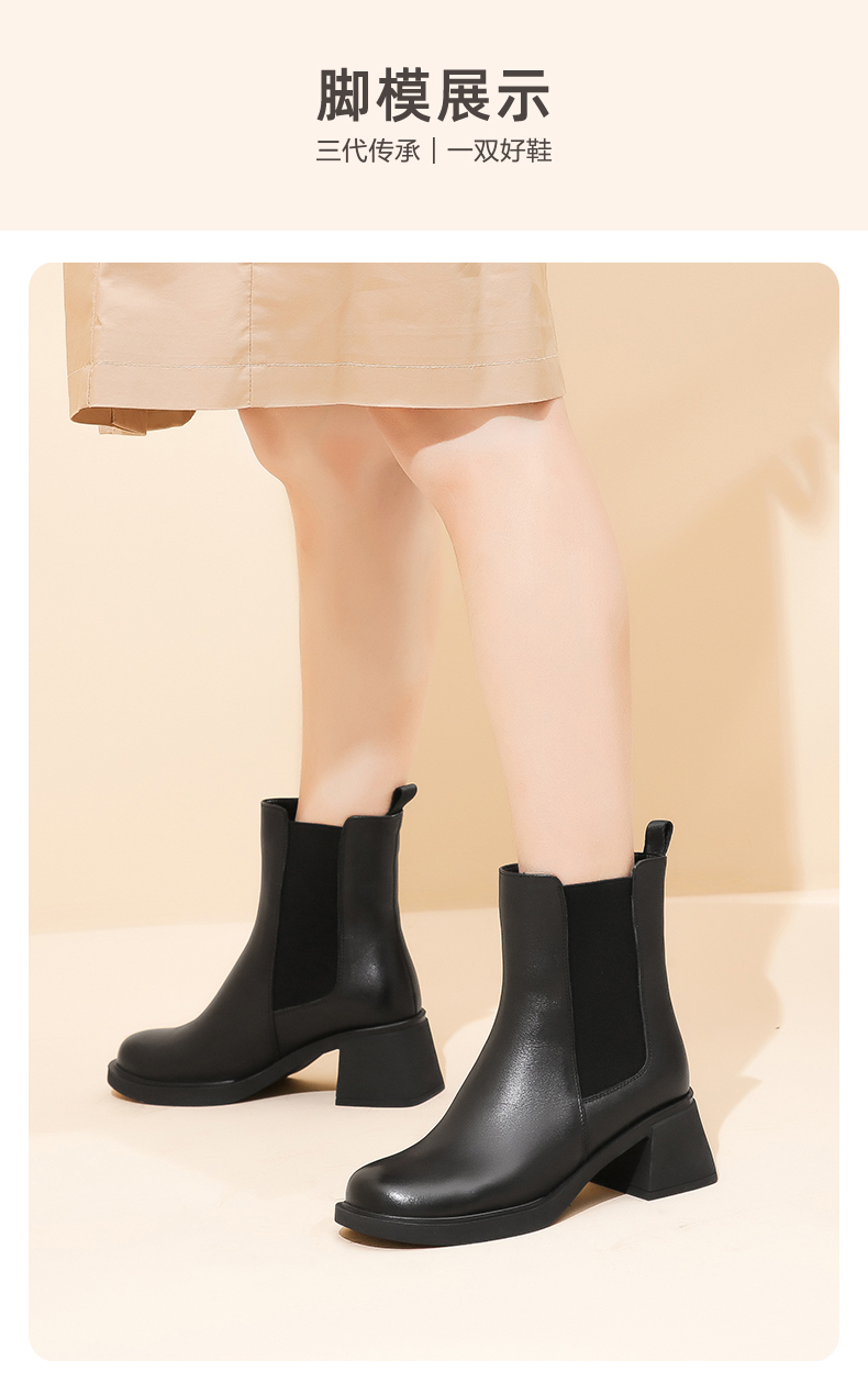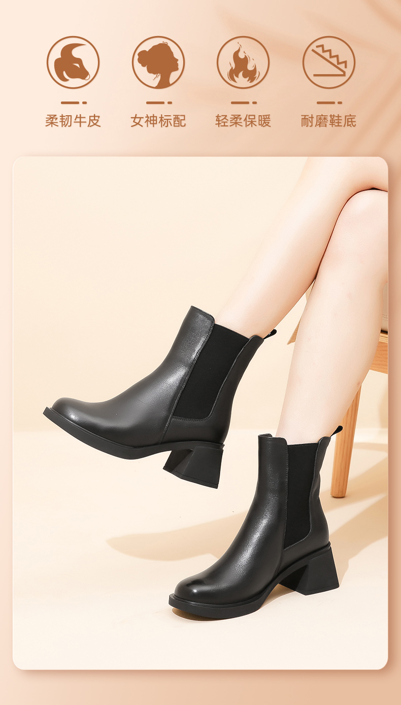 信诺真皮气质女士切尔西靴女2022年新款冬季加绒保暖粗跟休闲短靴22M229-21