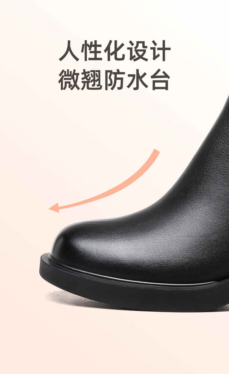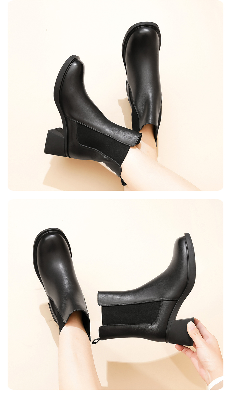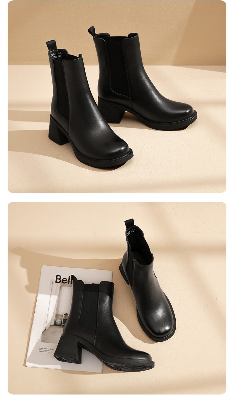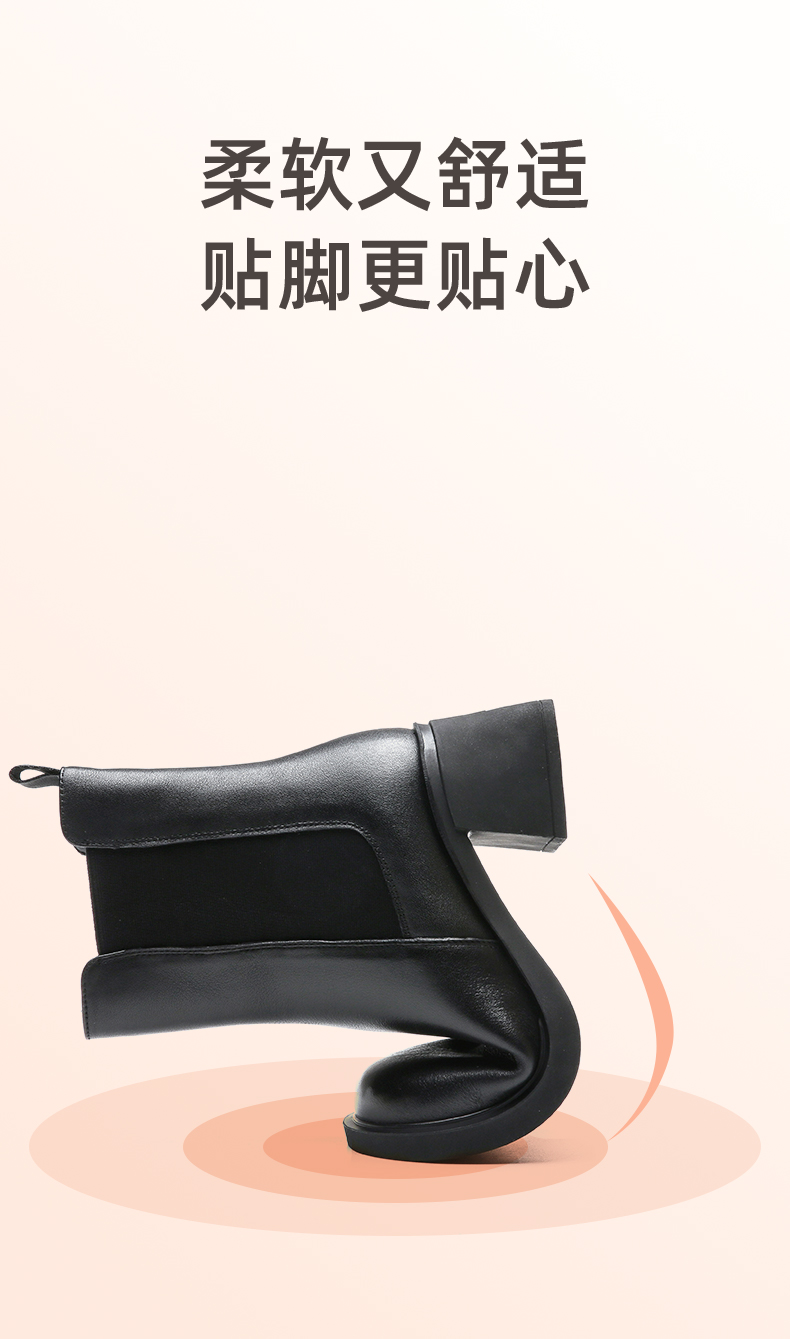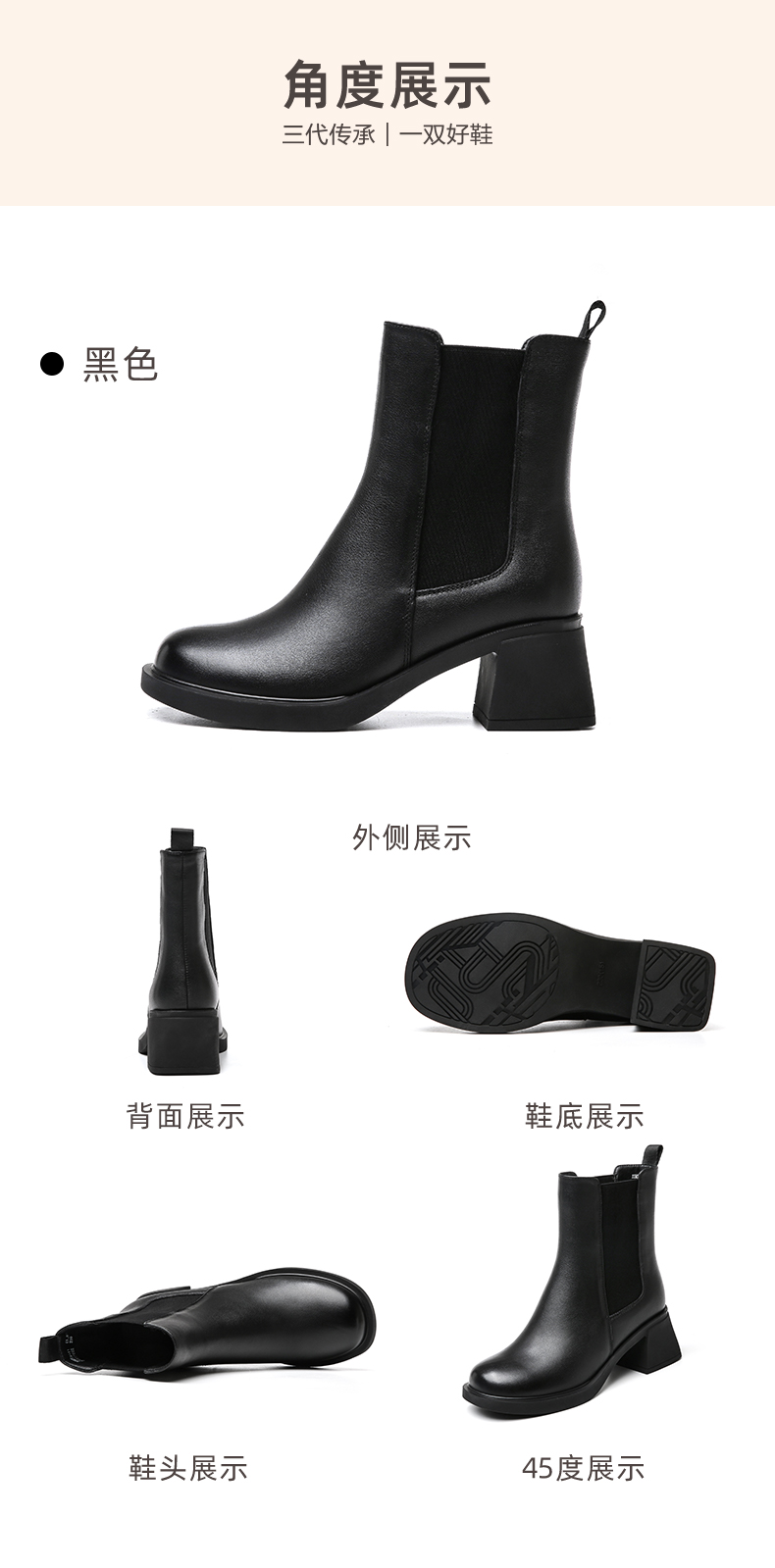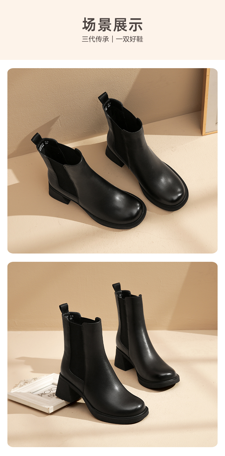 信诺真皮气质女士切尔西靴女2022年新款冬季加绒保暖粗跟休闲短靴22M229-21