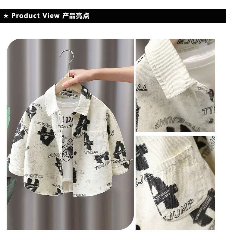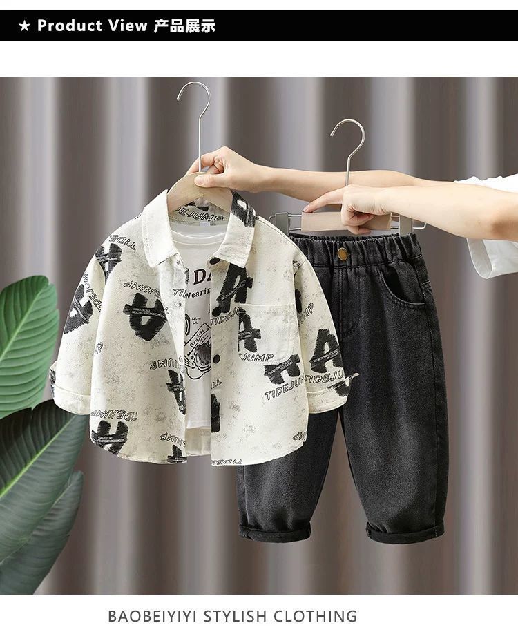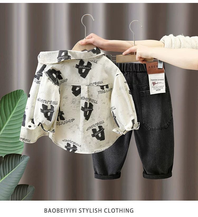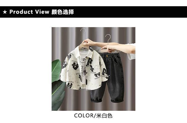 男童衬衫套装春秋款 新款时尚中小童春秋洋气时髦两件套潮
