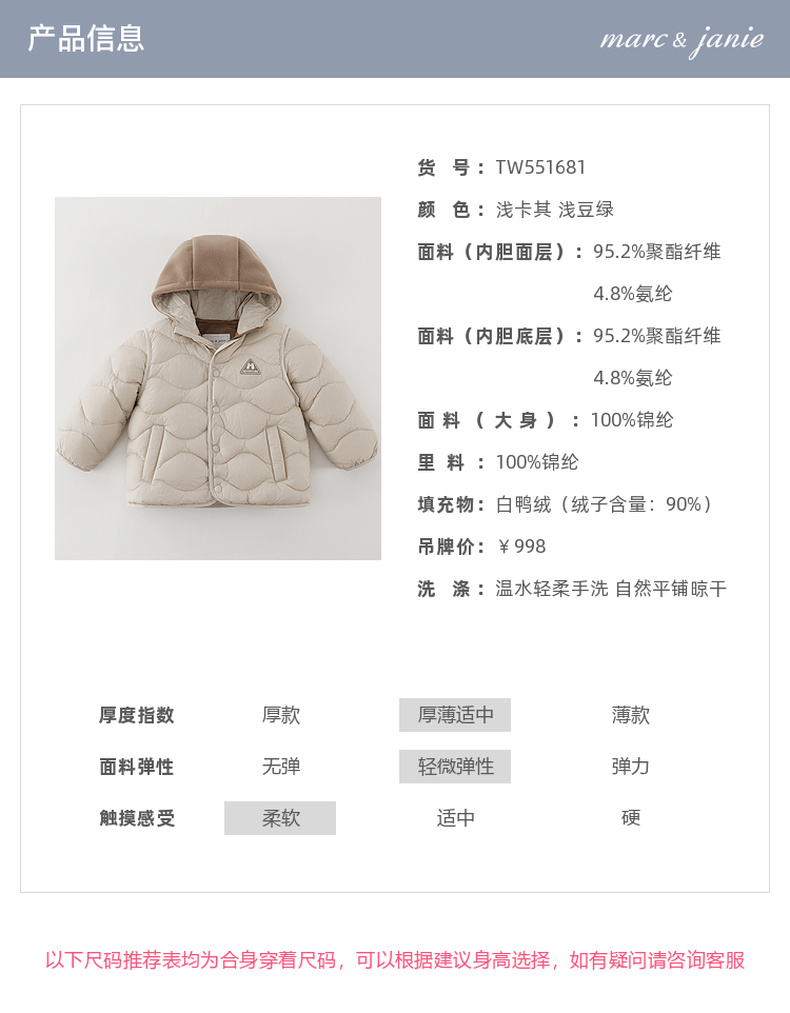 【叠穿两件套】马克珍妮男童轻暖羽绒服奥利绒外套2025年冬装新款551681