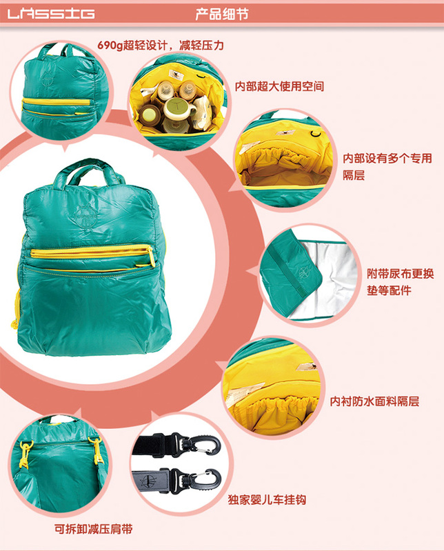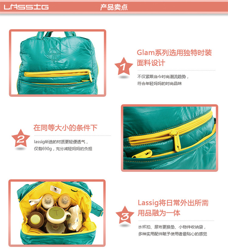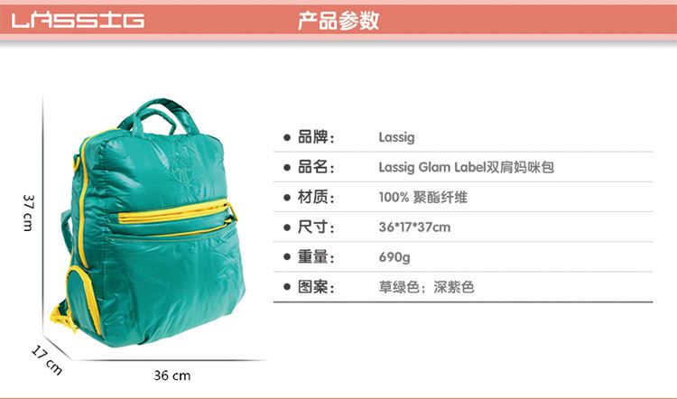 LASSIGGlamGlobal系列妈咪双肩背包-POP绿LASCLBP173111