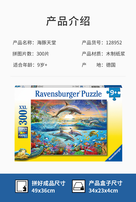 Ravensburger拼图 平面拼图300片海豚天堂RAVC128952