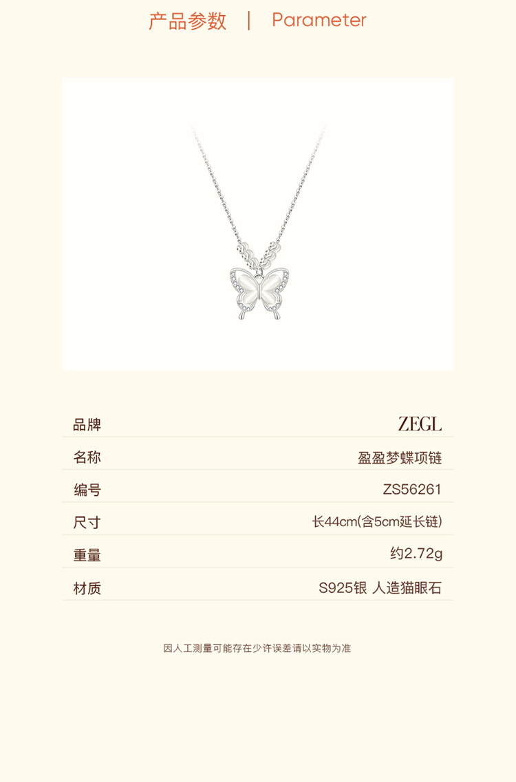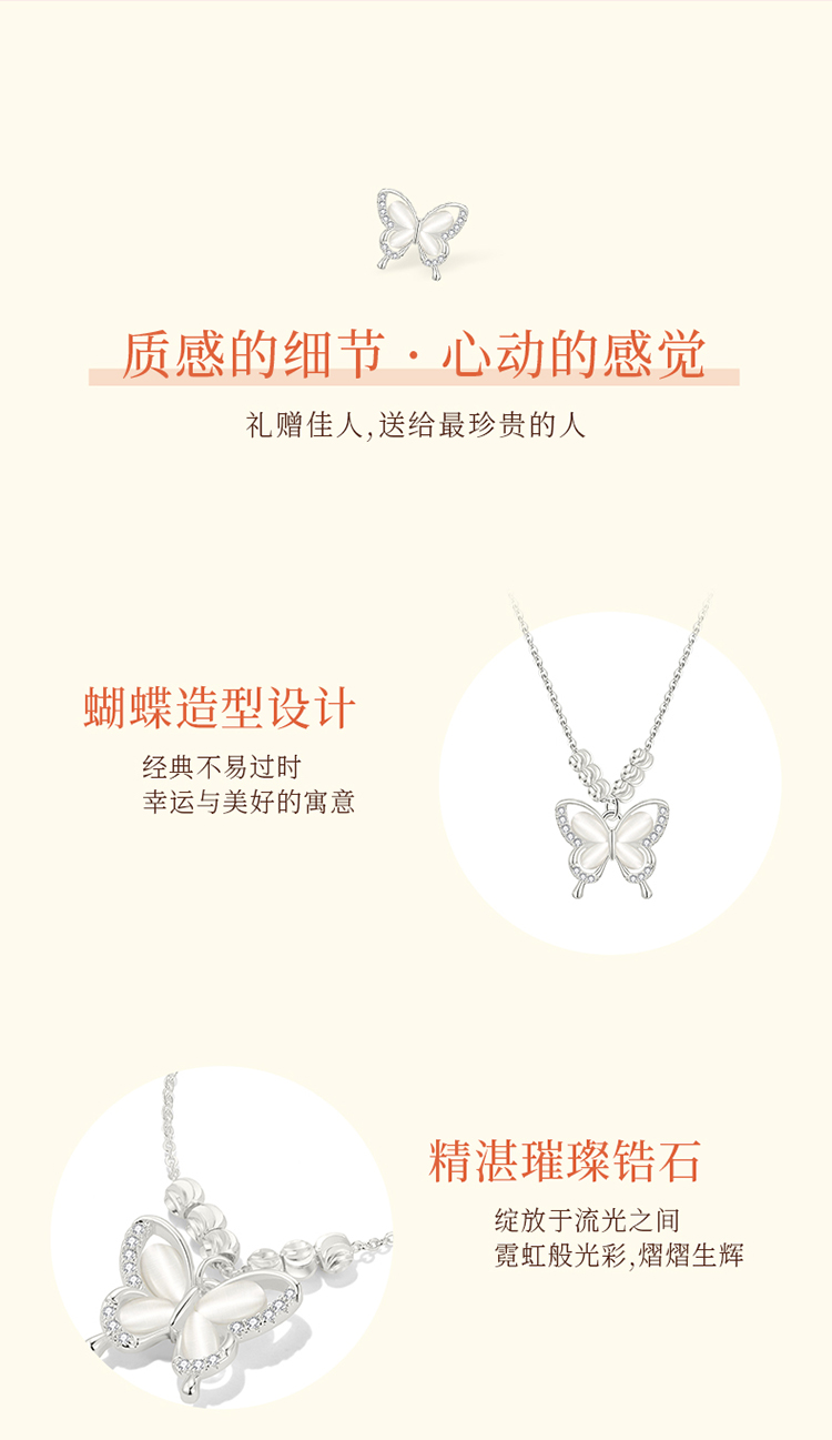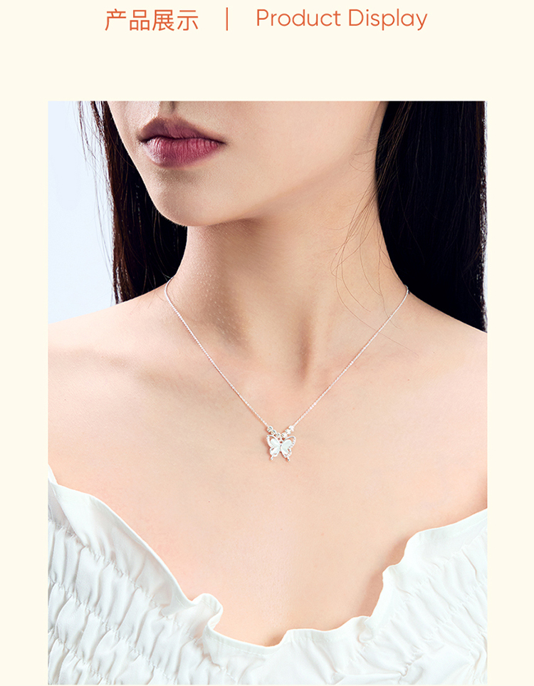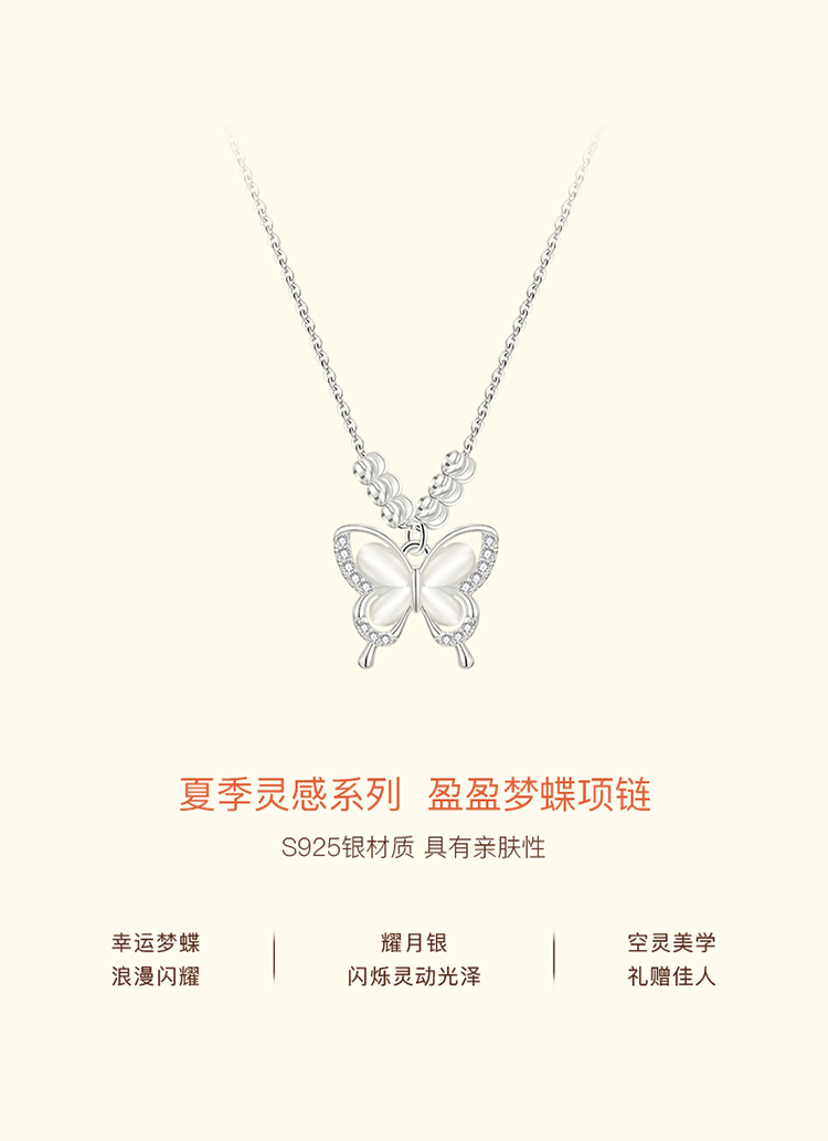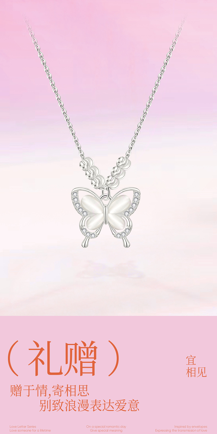 ZEGL925银925银人造猫眼石蝴蝶项链女款2024新款轻奢小众锁骨配饰