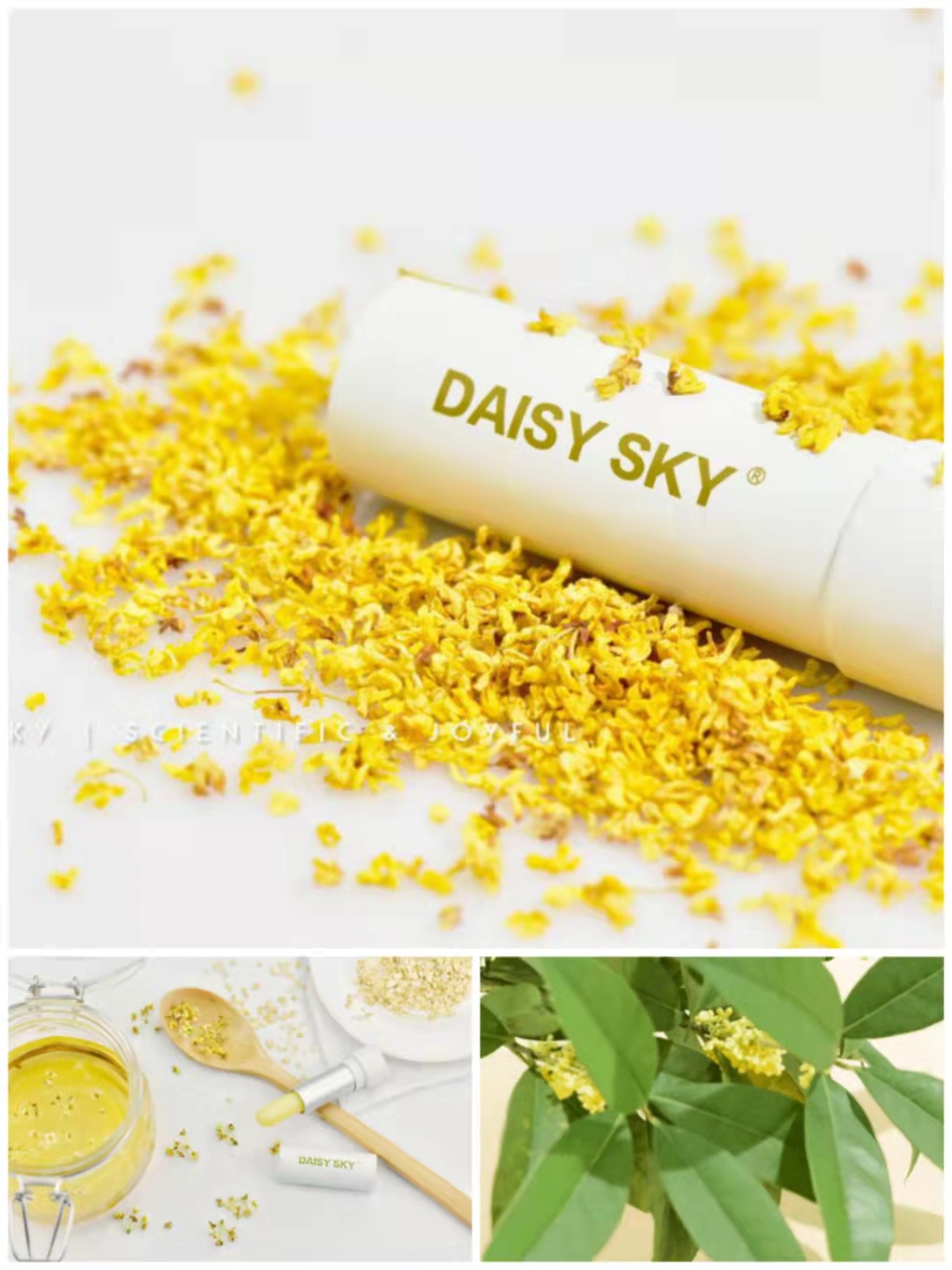首先介绍的一款唇膏是桂影恒润修护唇膏 用植物精油点亮唇间光彩,闻一秒就会爱上的唇间香脂。它的前调是桂花的清雅香甜,后调是玉兰的馥郁感受,真的是让人一下子就回到了记忆里的桂花树下。 (采用十几万一公斤的桂影精油调配的纯天然的桂花香)