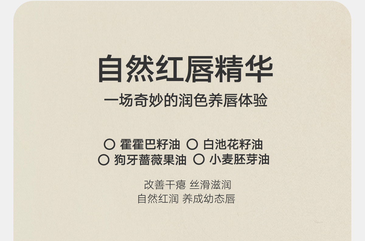 除了角鲨烷,这款唇膏特别添加生育酚类,修护抗氧。结合天然桂花精油,在恒润和淡化唇纹这方面能力有了更大的提升,让你嘴唇分分钟变得柔软饱满,唇纹看起来不那么明显。