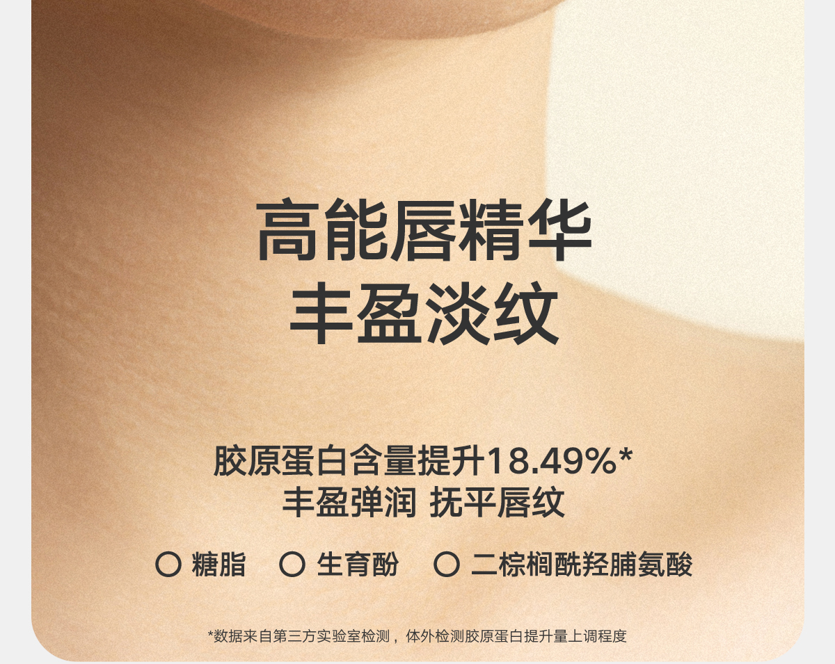而大家都知道,对于脸部来说,嘴巴是最脆弱的地方。它是全身唯一的长期暴露在外的无角质层黏膜,抵御外界环境变化的能力很弱,一点点的风吹草动,都会让它受到伤害! 再加上常常化妆,更容易老化、变薄、出现唇纹、唇色黯淡,因此唇部抗老也是这支精华想要做到的。 植物甾醇酯,是很好的缓解唇部的不适。硬脂醇甘草亭酸酯,能够增加皮肤的防御能力。