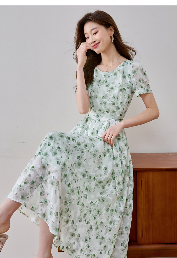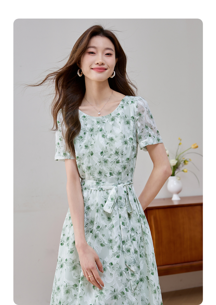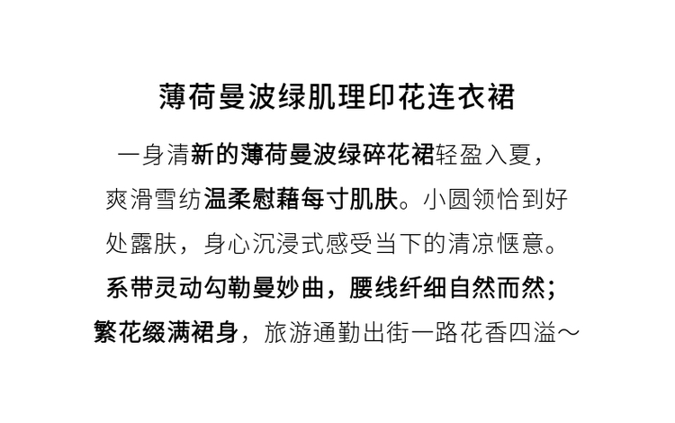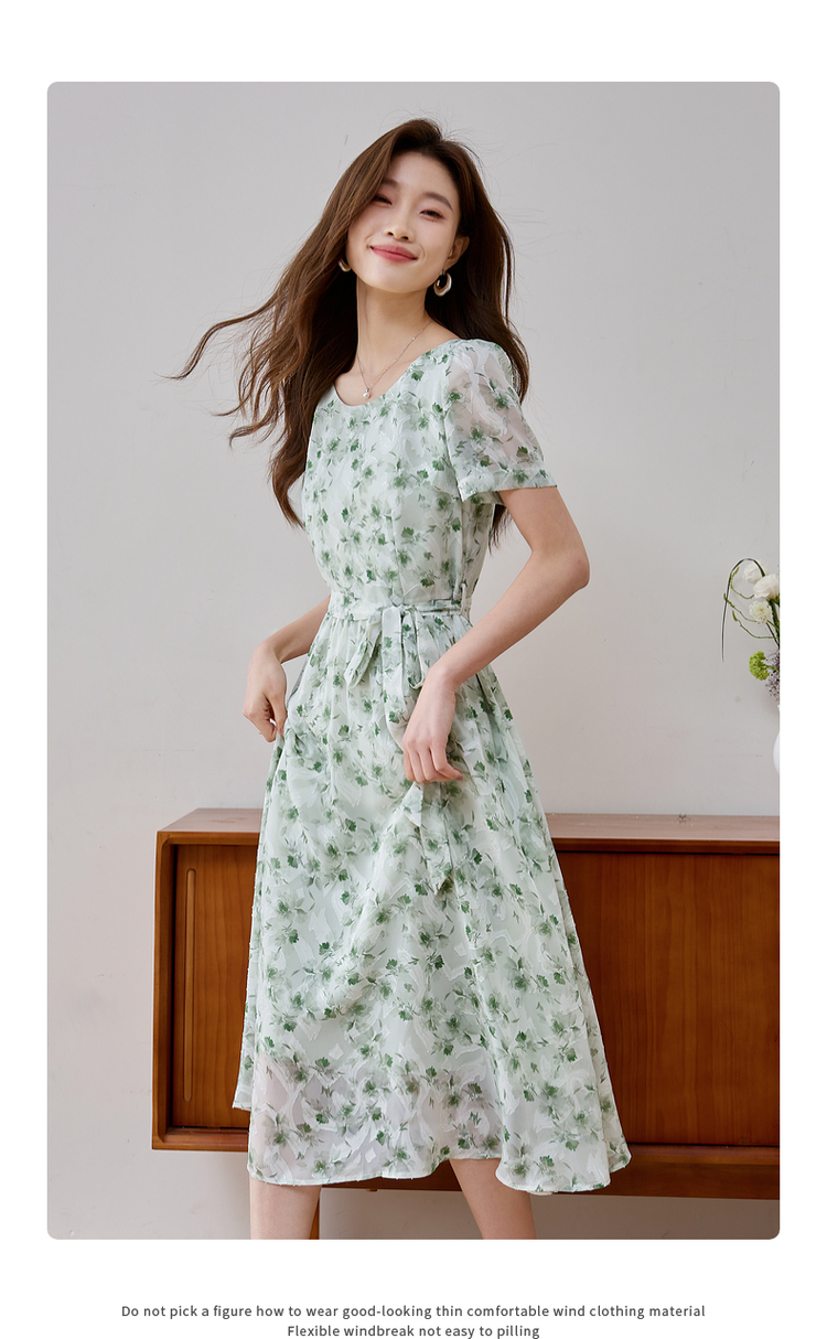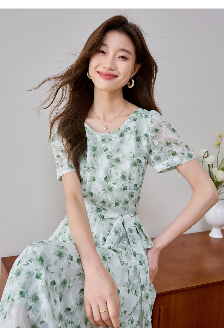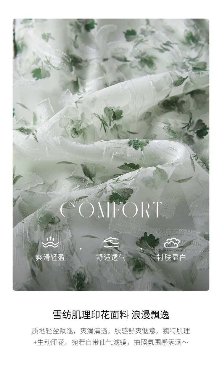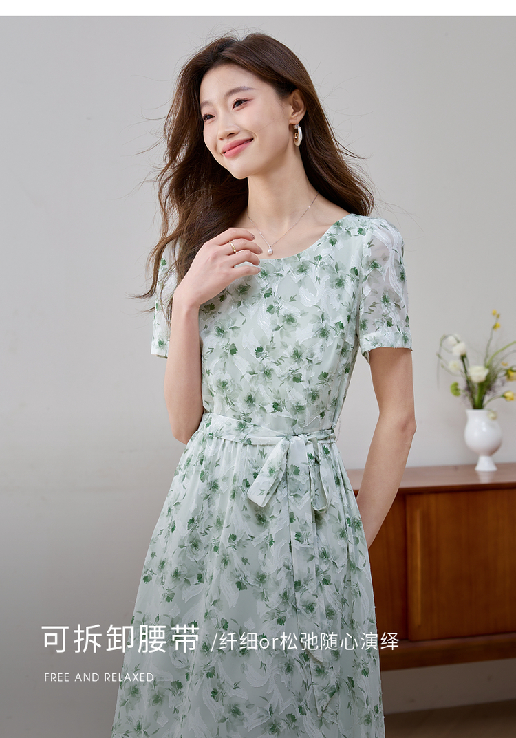【专属特价】熙世界薄荷曼波绿色碎花连衣裙夏新款海边度假气质收腰雪纺裙子