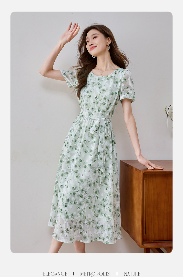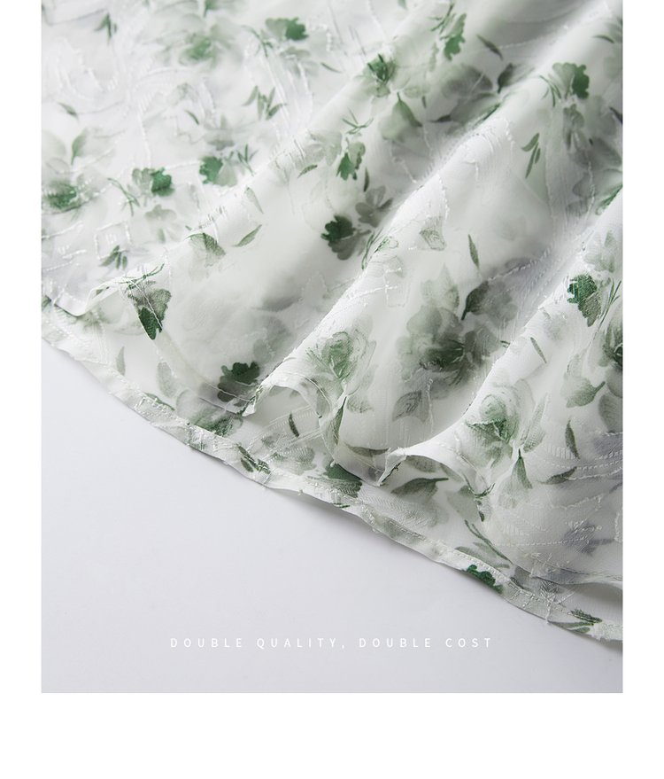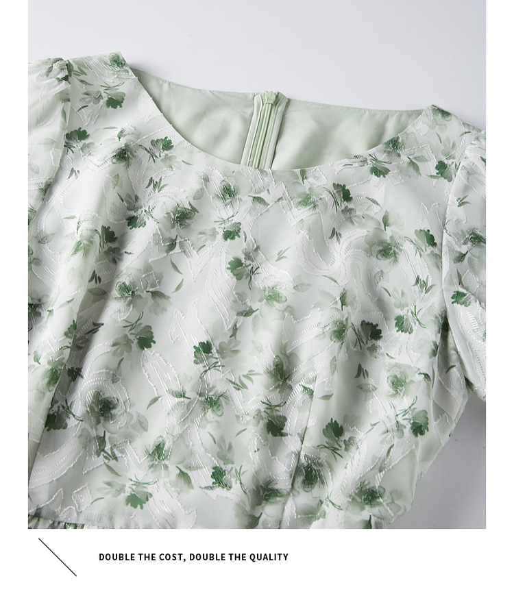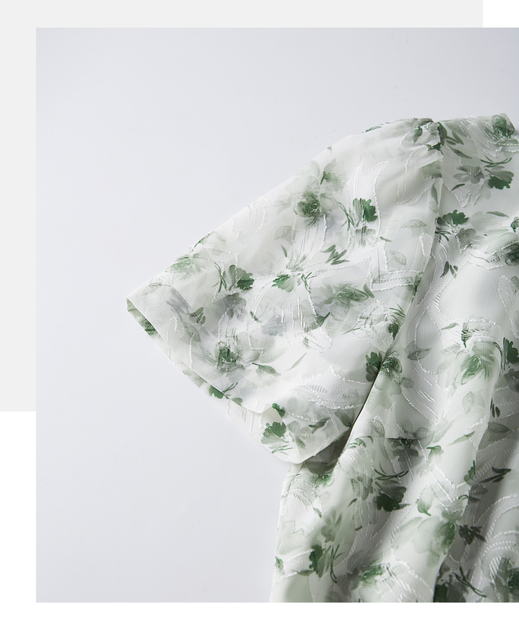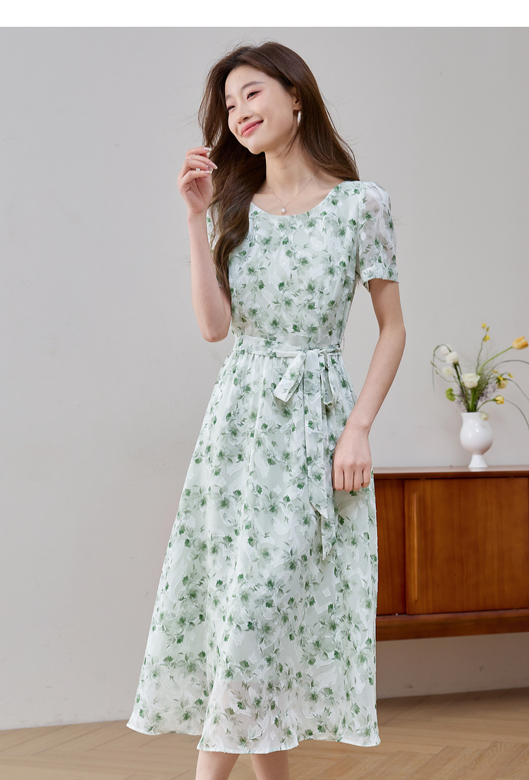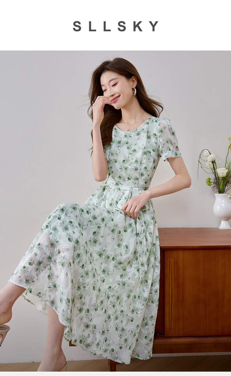 【专属特价】熙世界薄荷曼波绿色碎花连衣裙夏新款海边度假气质收腰雪纺裙子