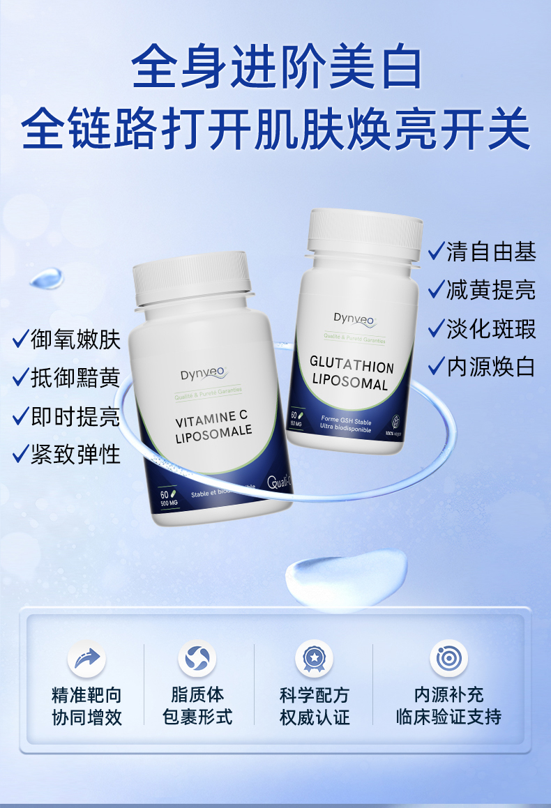 保税直发 Dynveo 白月光套组(脂质体VC 60粒/瓶x1瓶+倍递脂质体谷胱甘肽 60粒/瓶x1瓶)